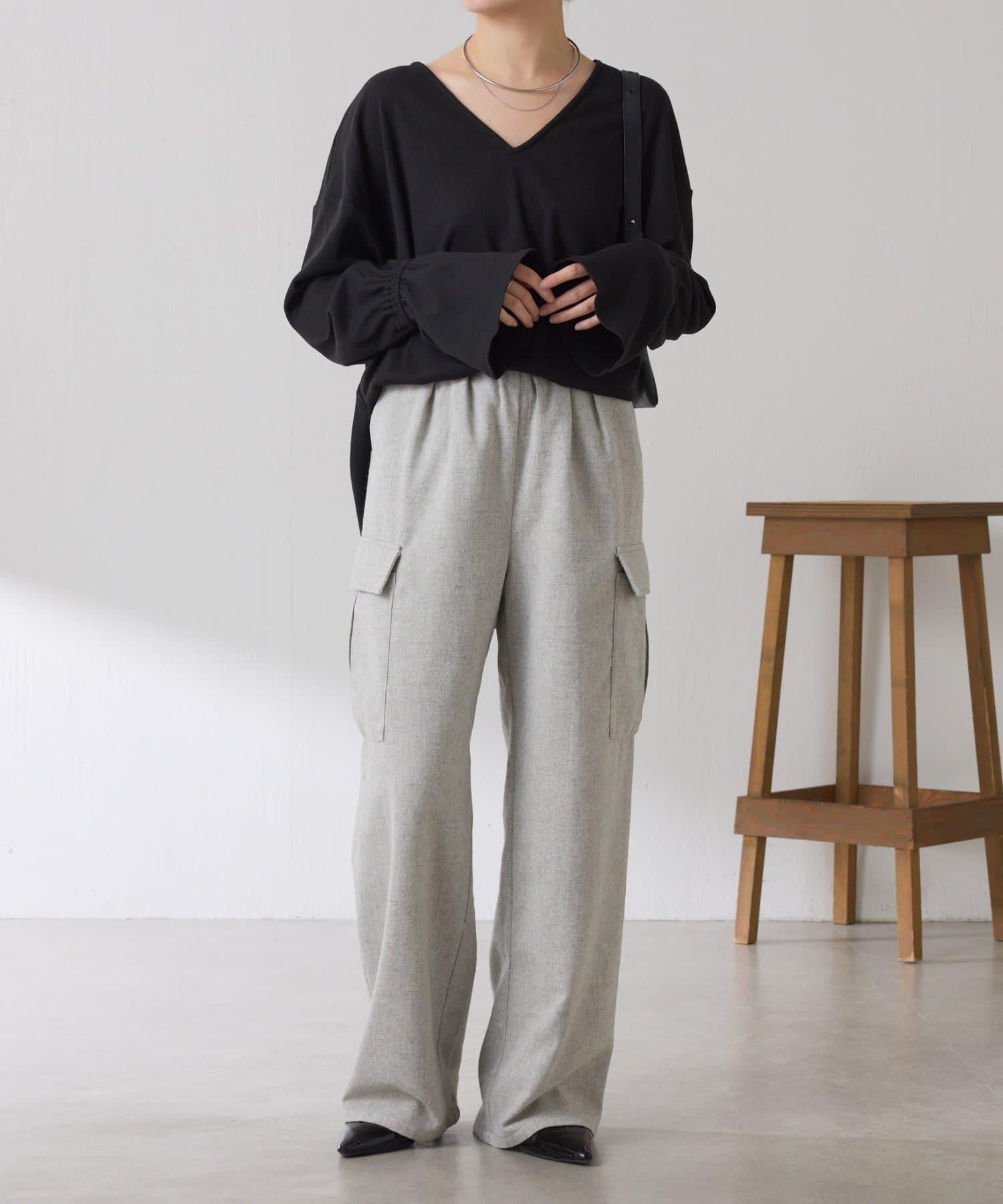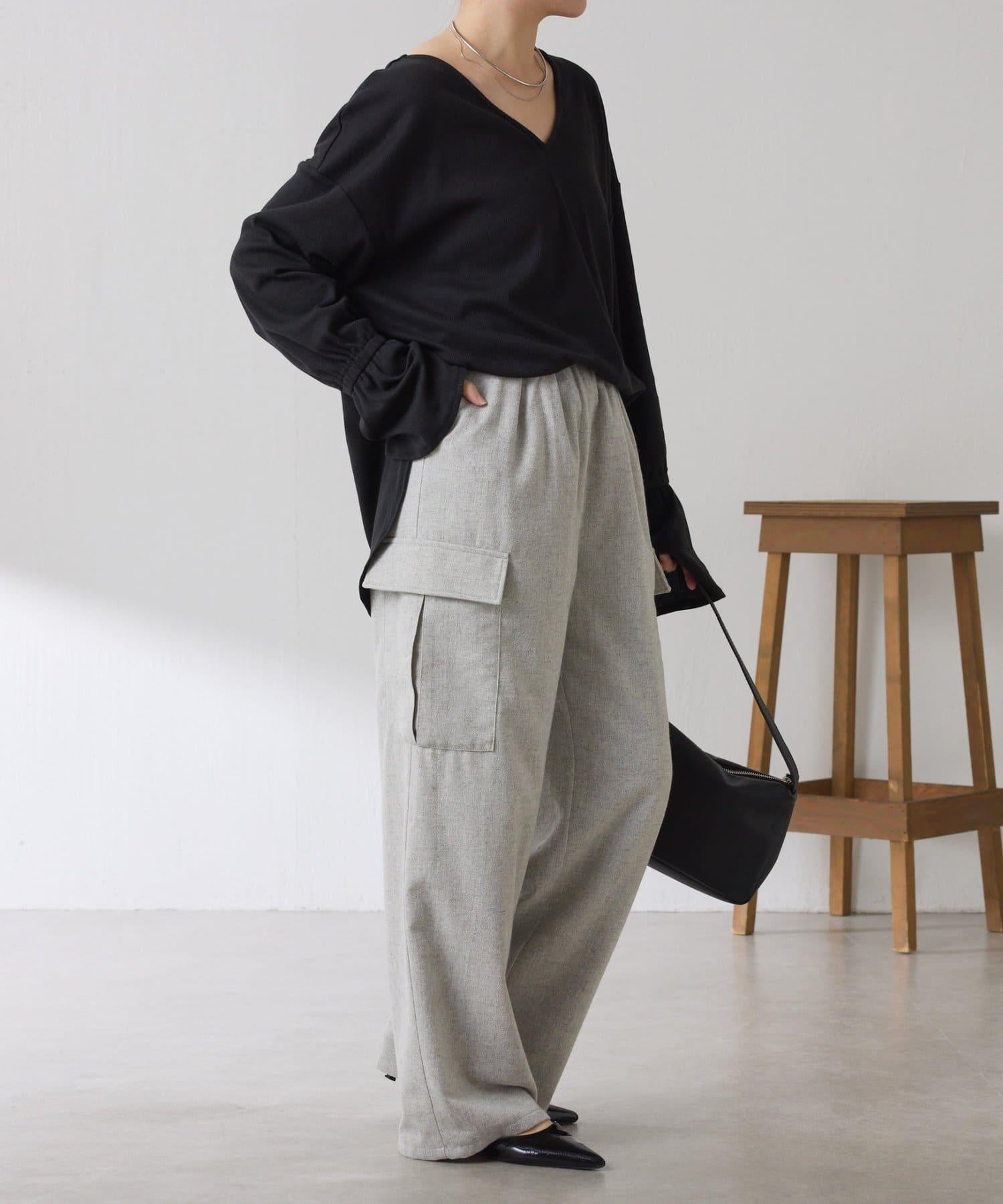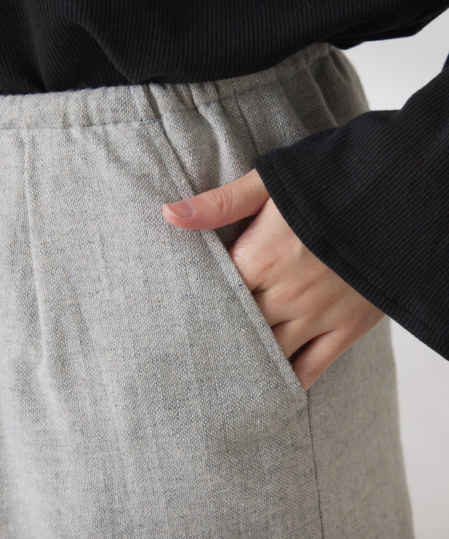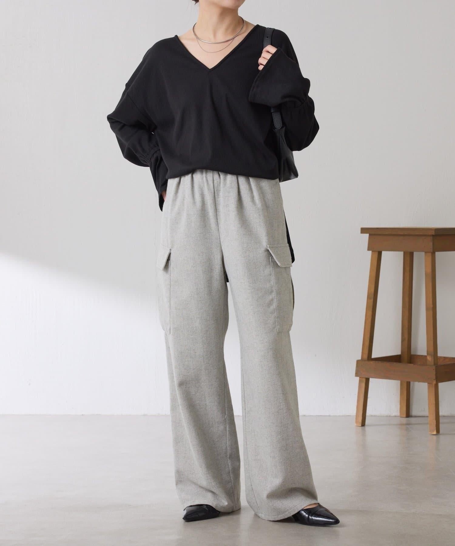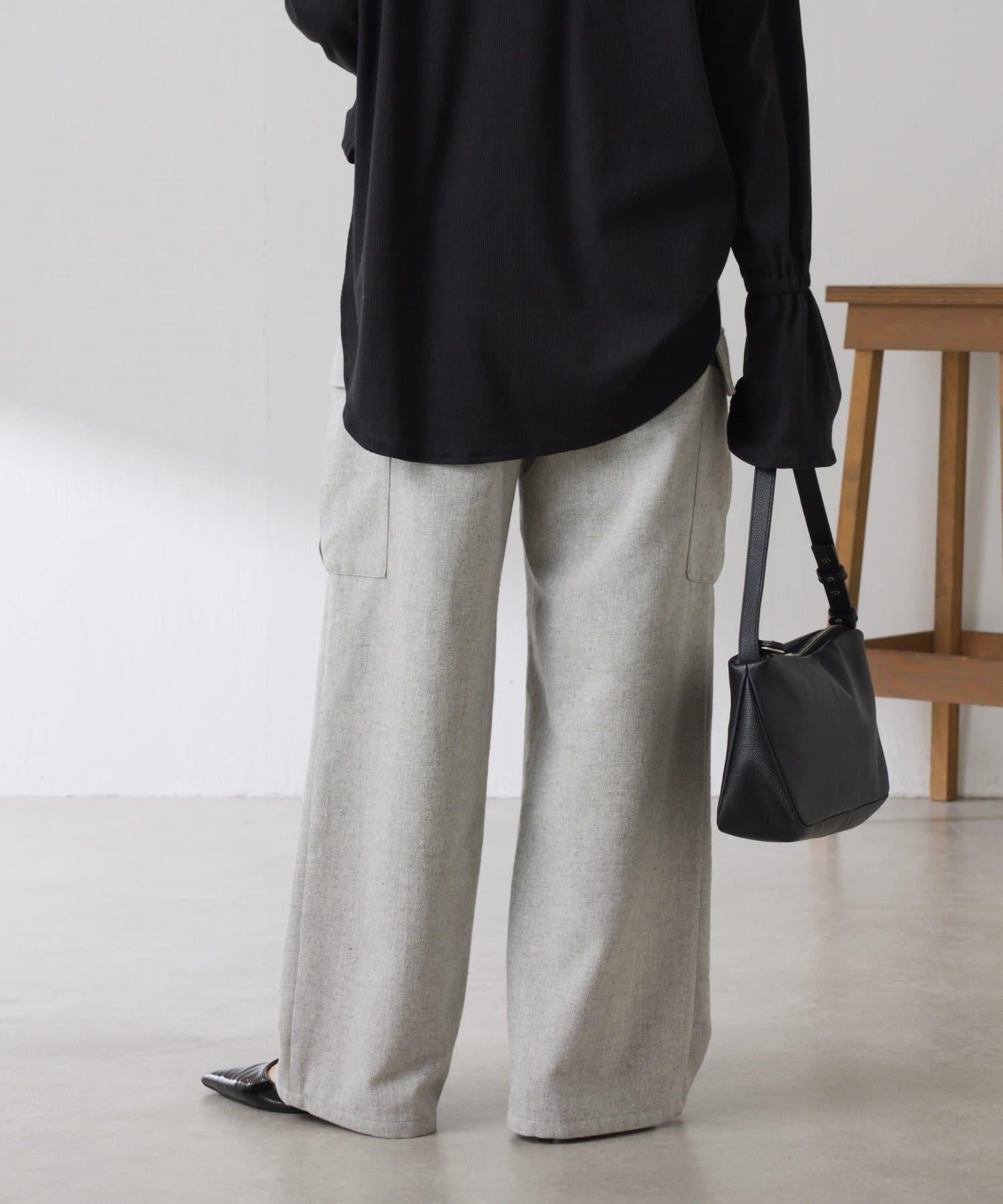 這款簡便褲子採用暖霓綸面料,帶有紗結。