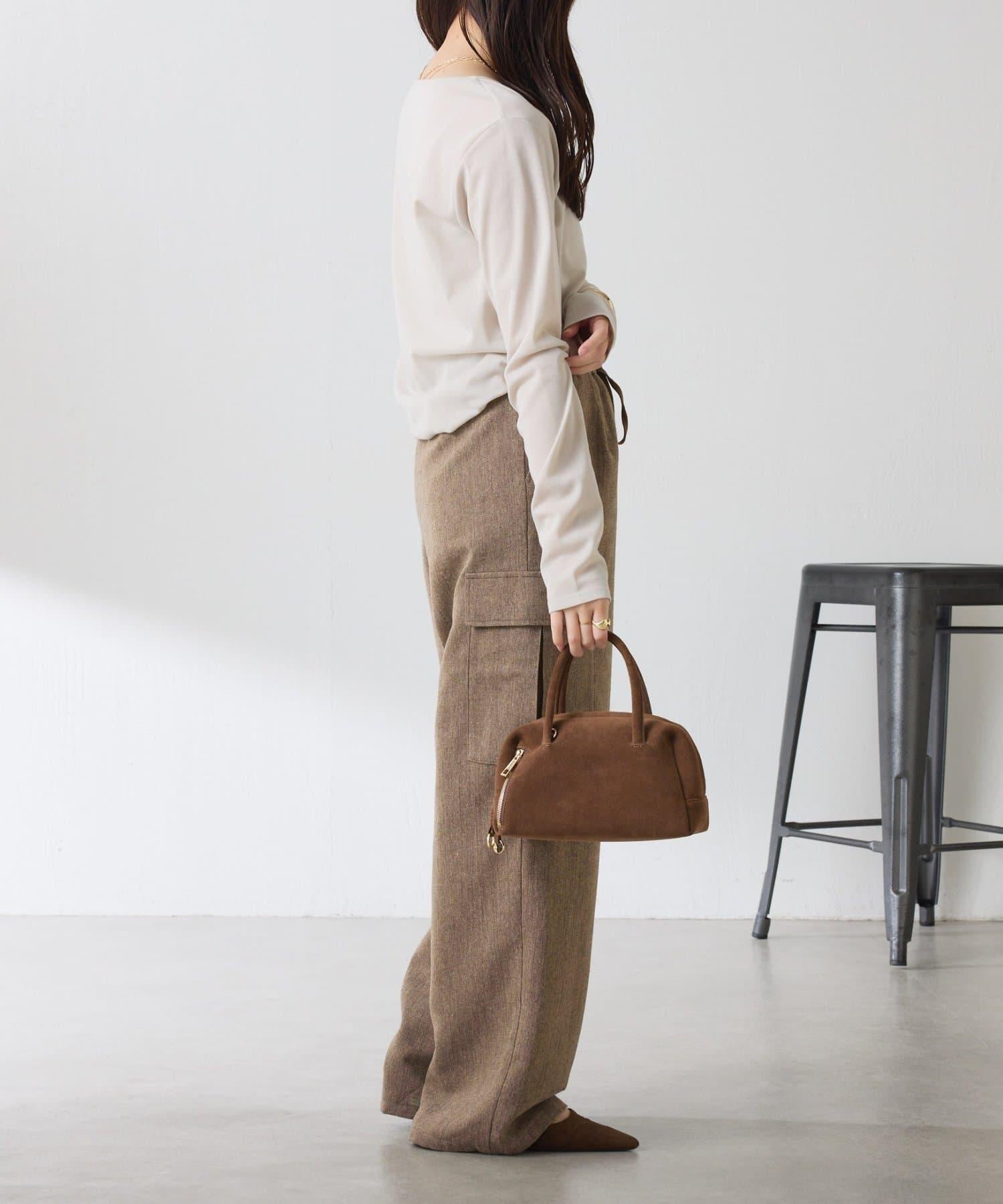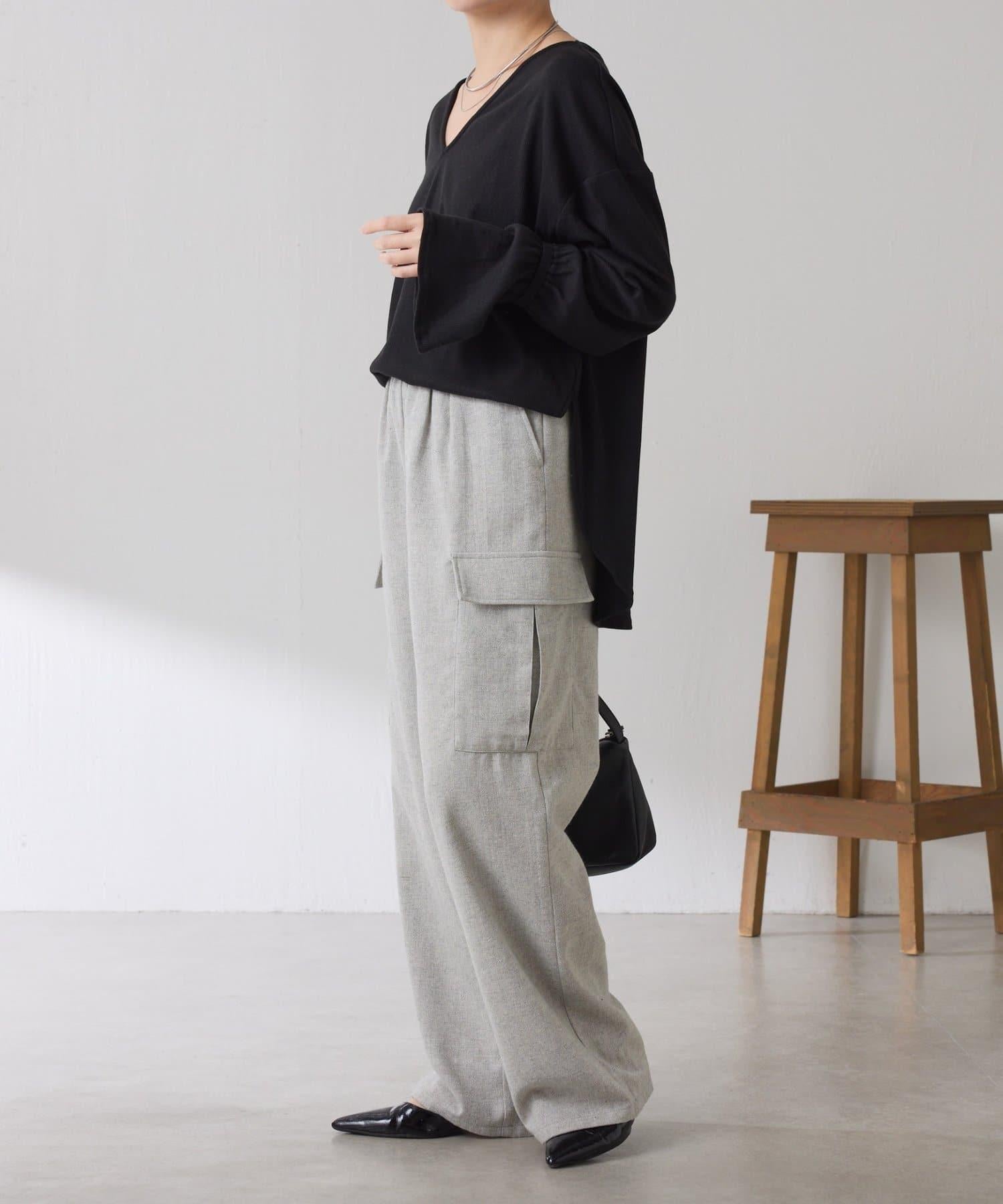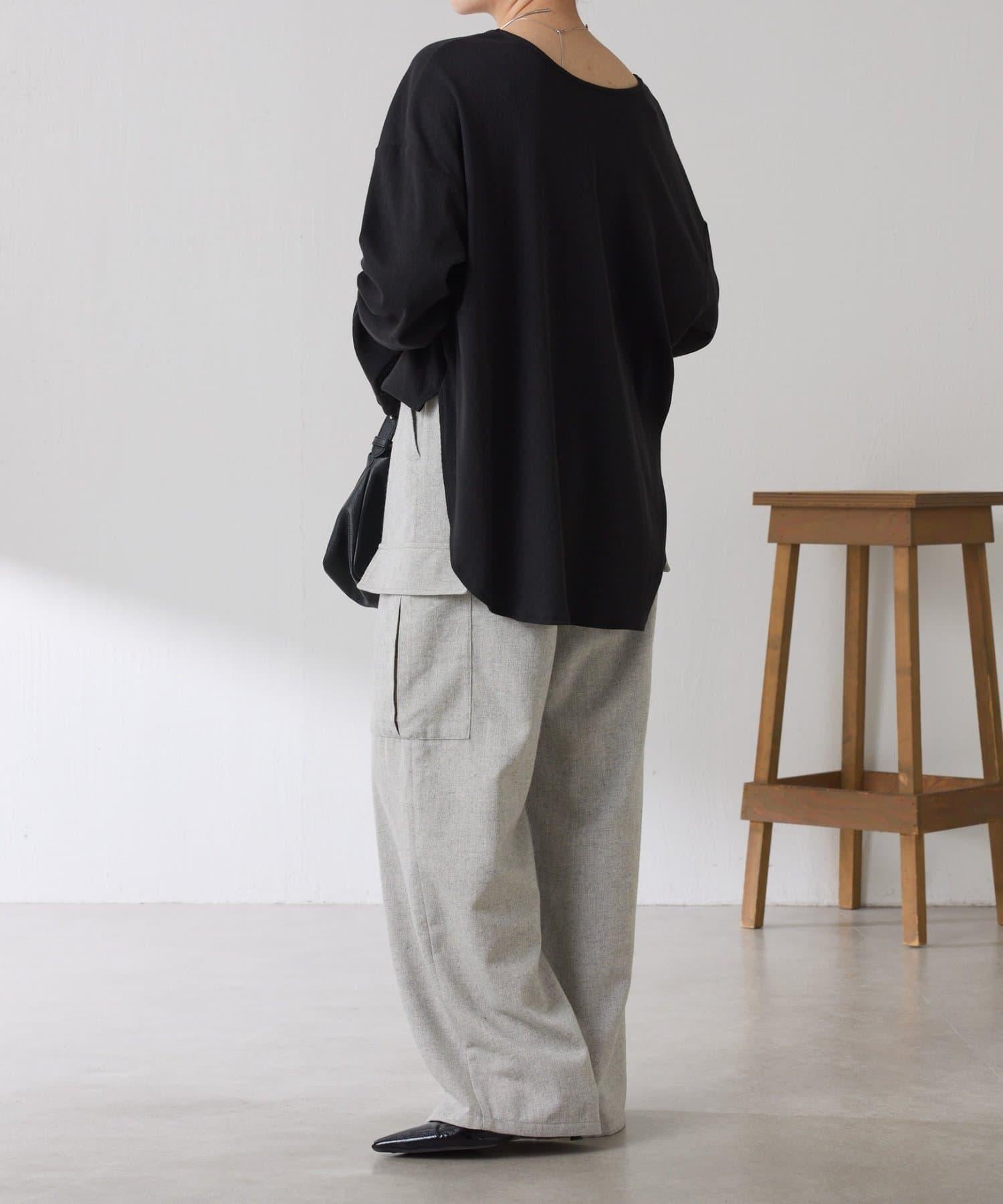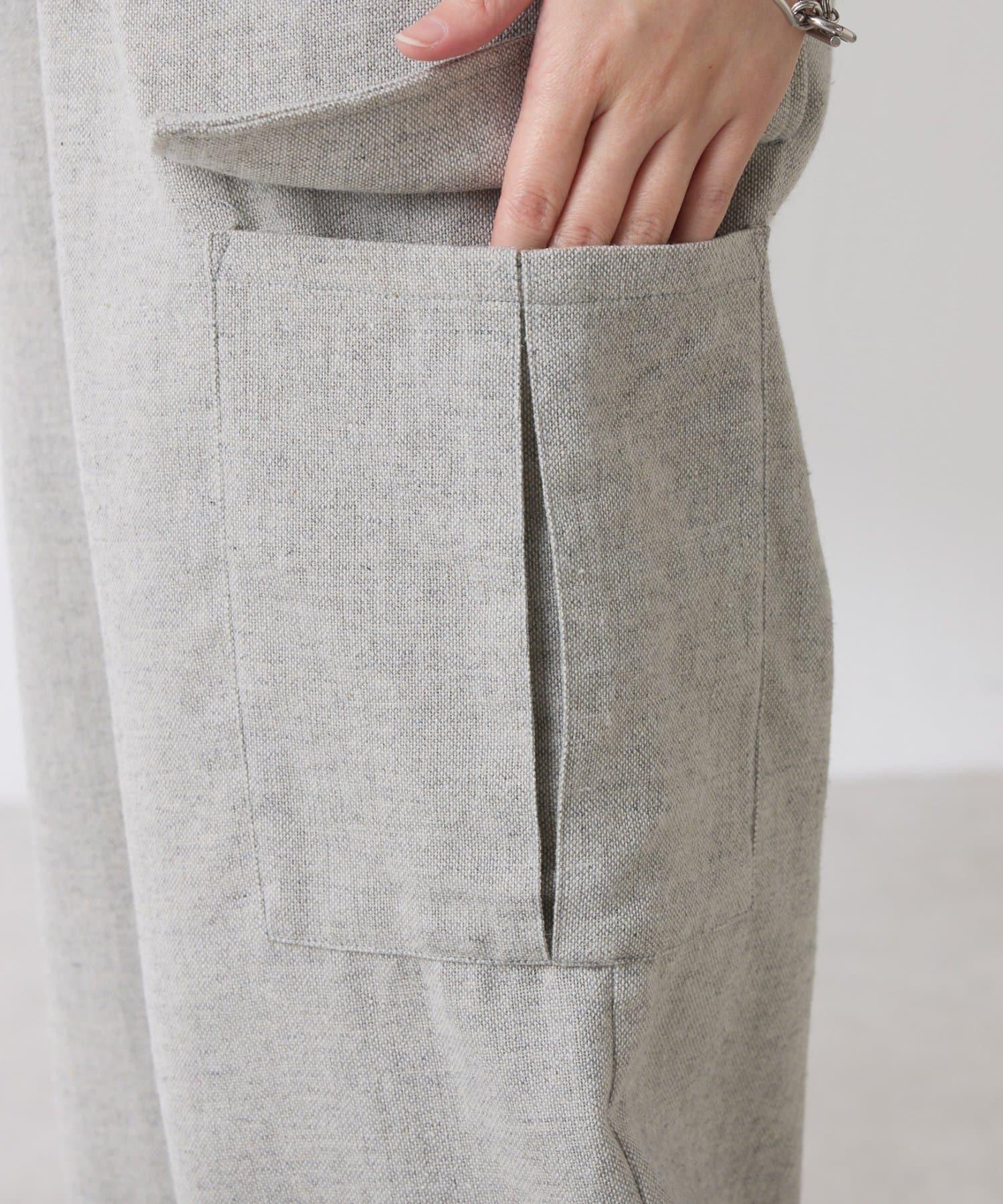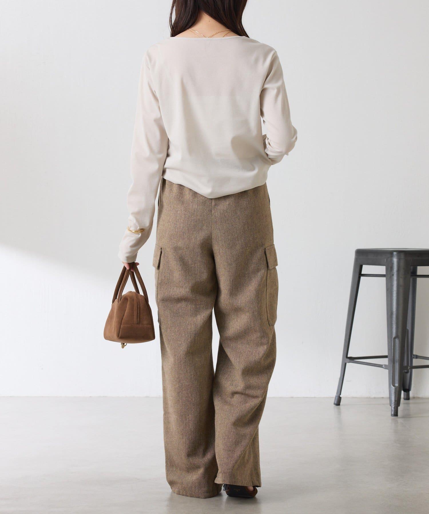 這款簡便褲子採用暖霓綸面料,帶有紗結。