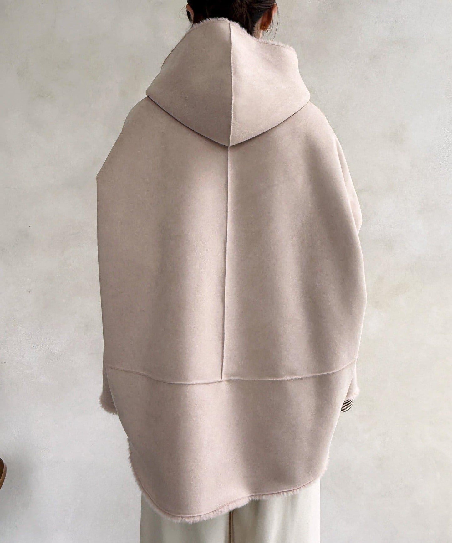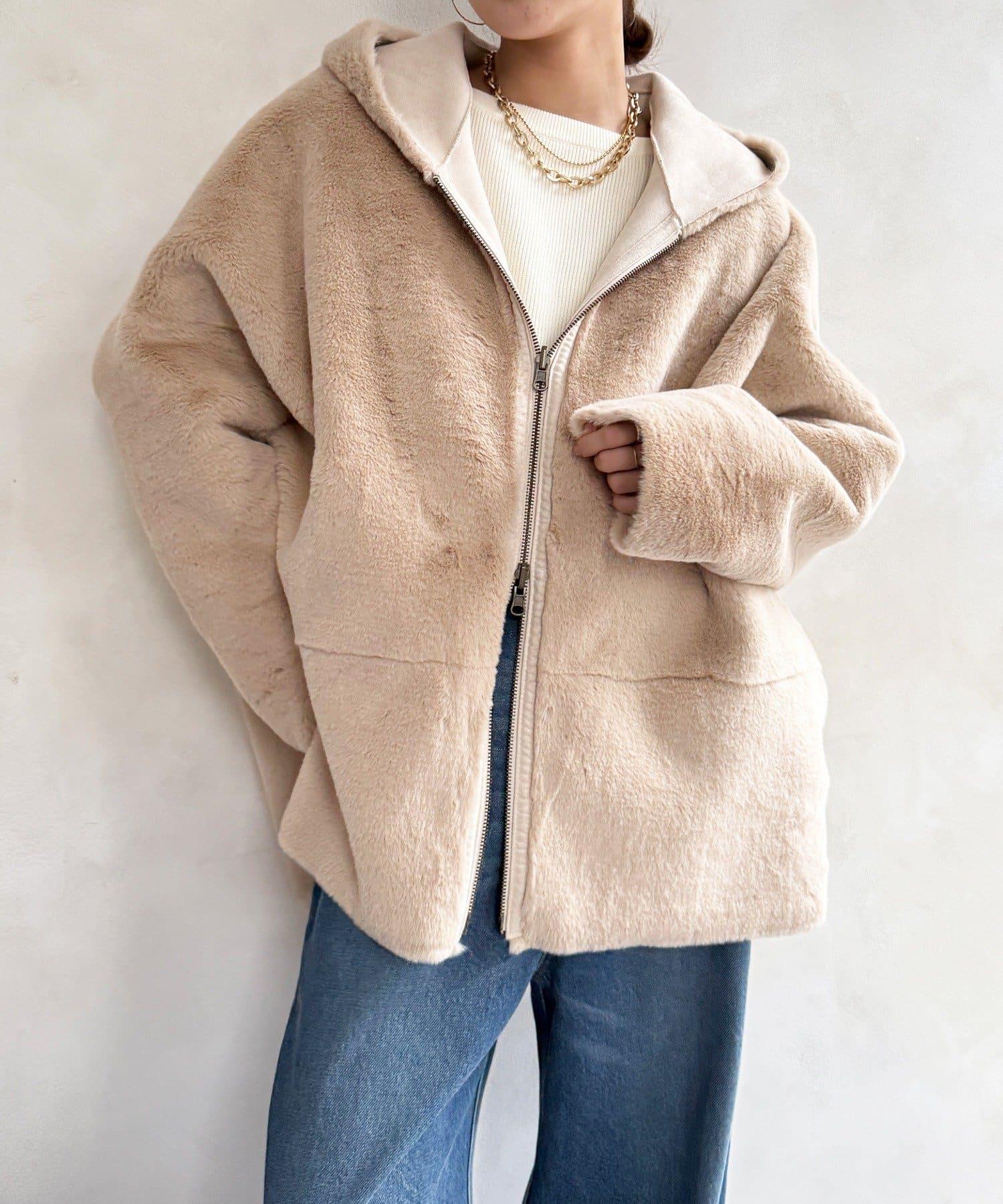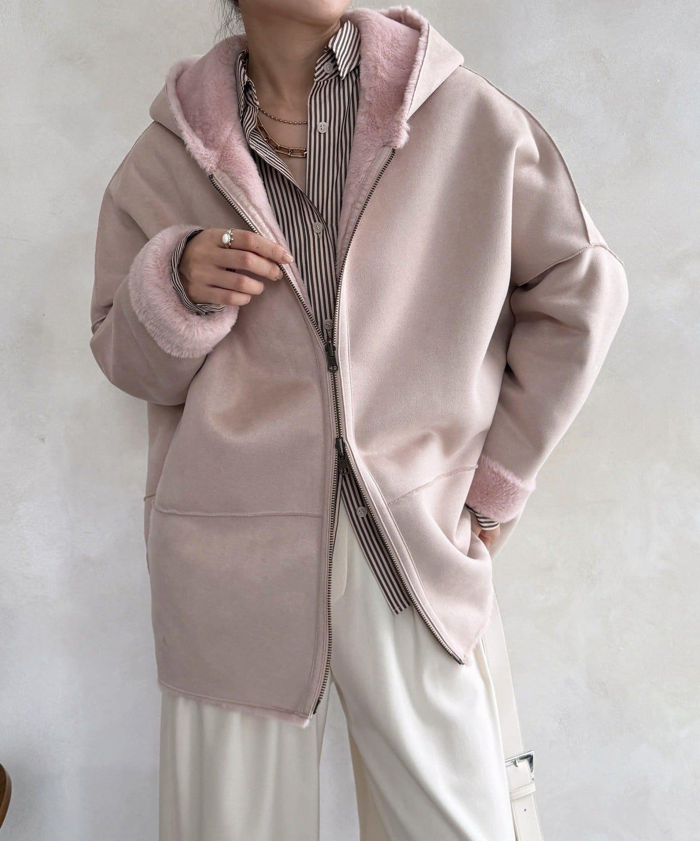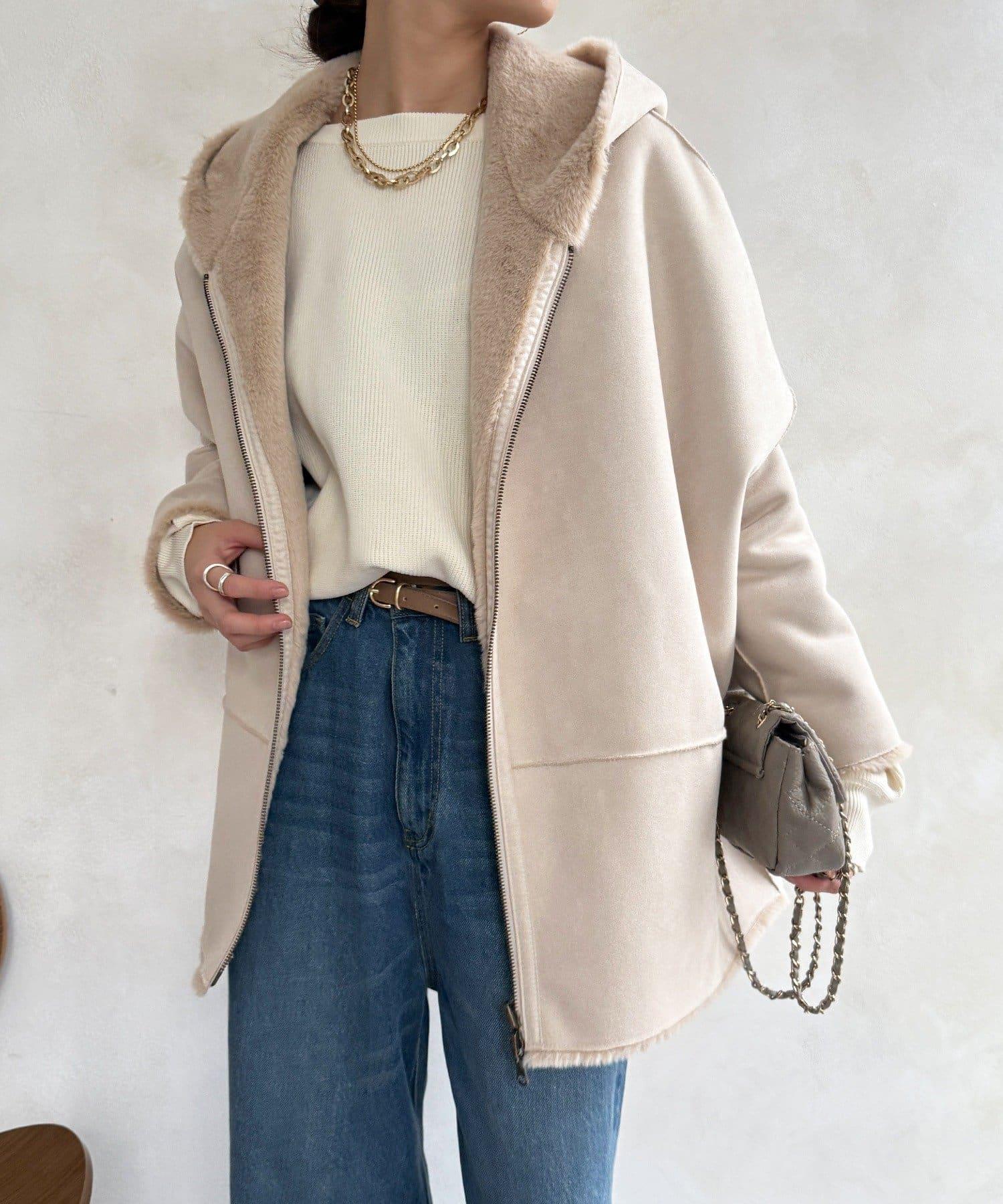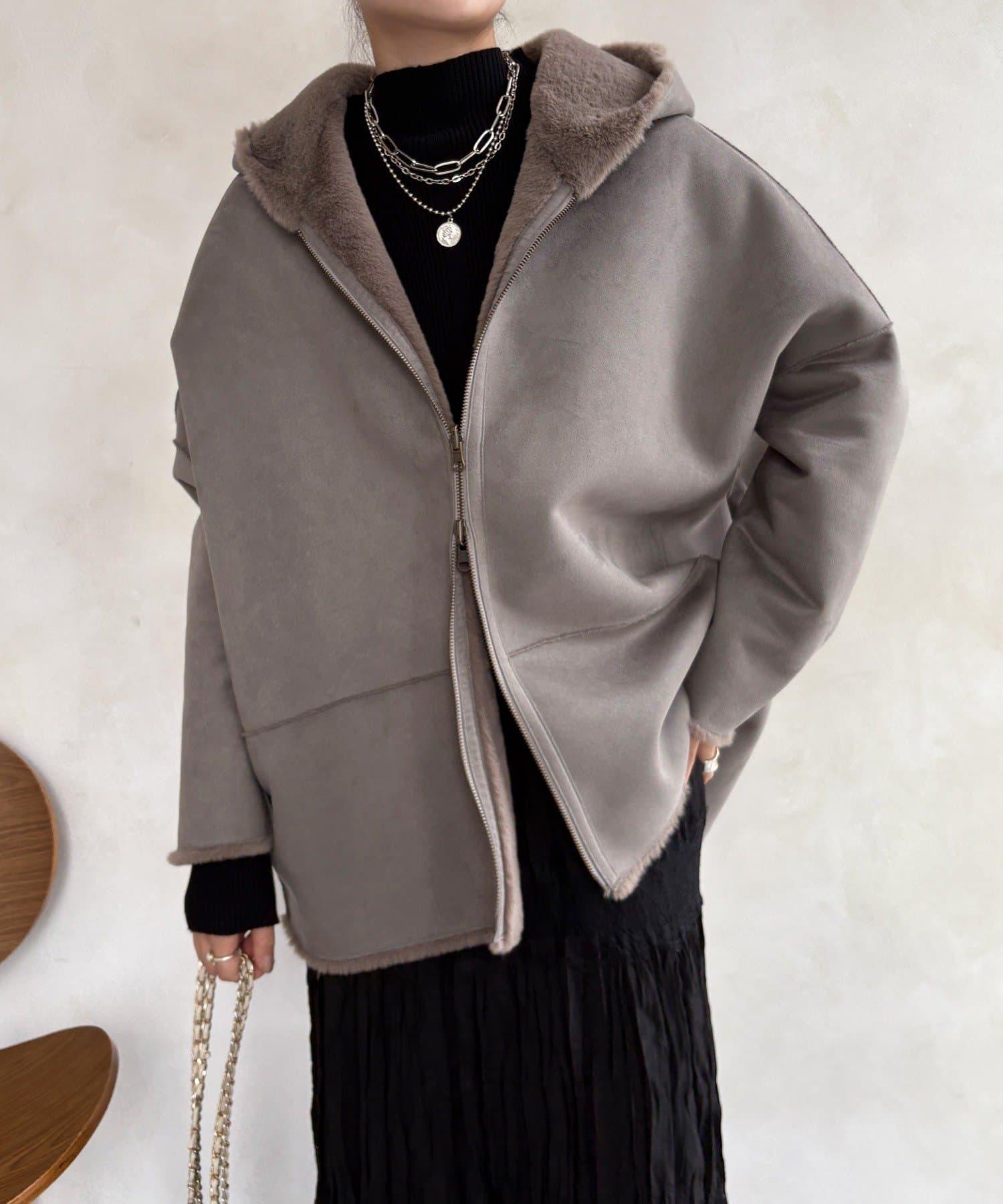 雙面外衣由觸感柔軟的毛皮材料和麂皮製成。