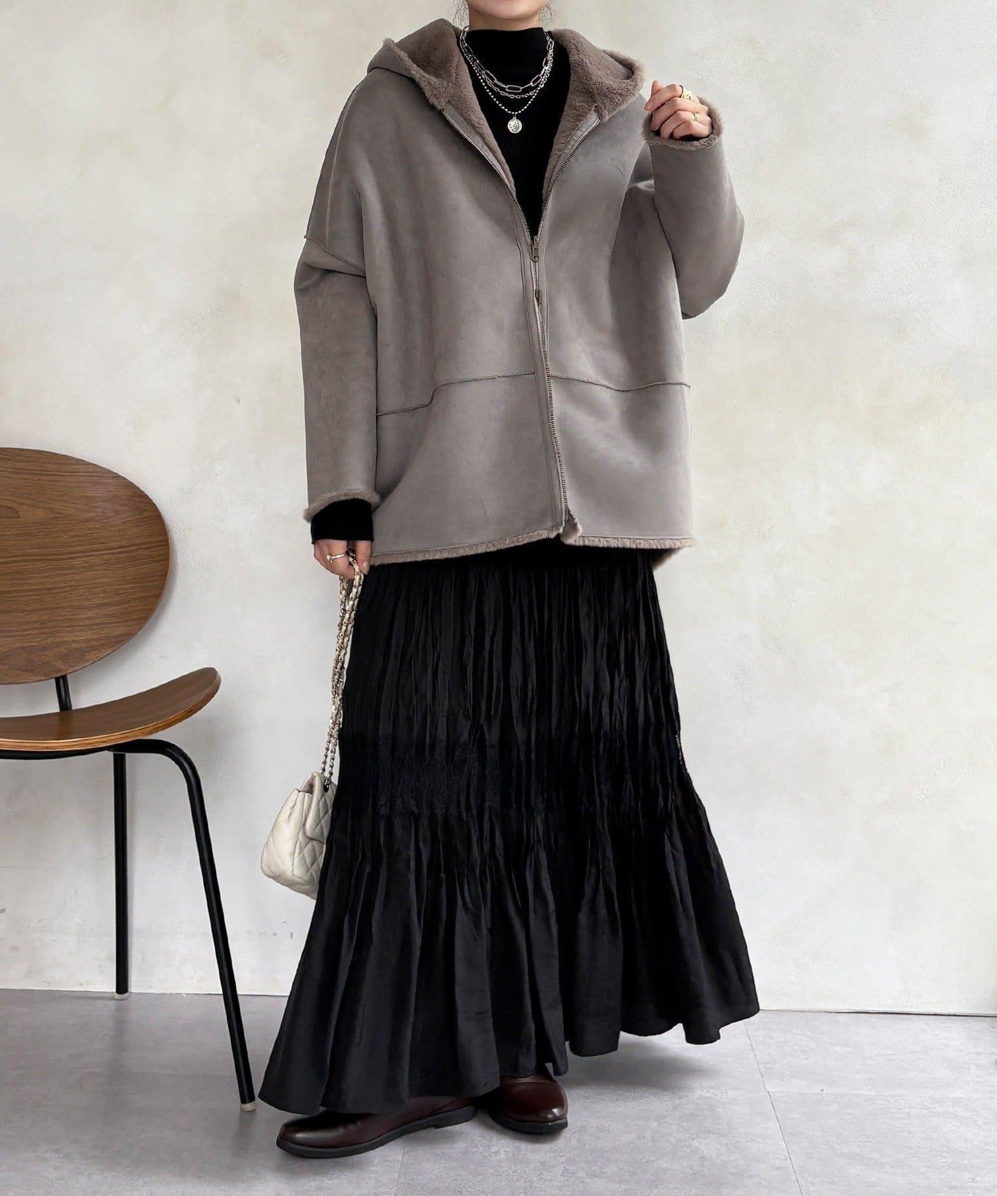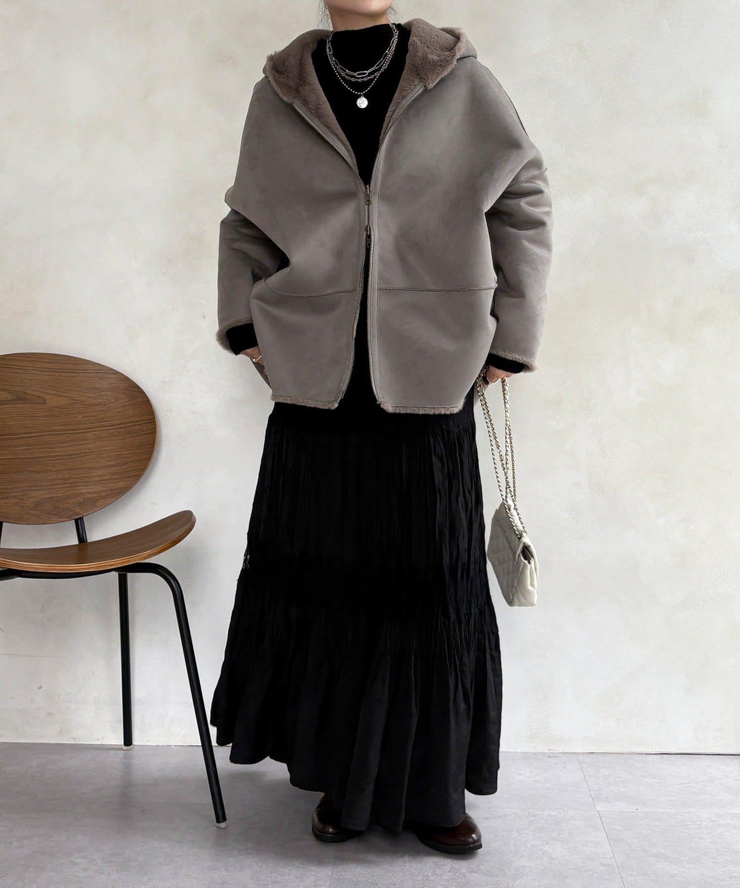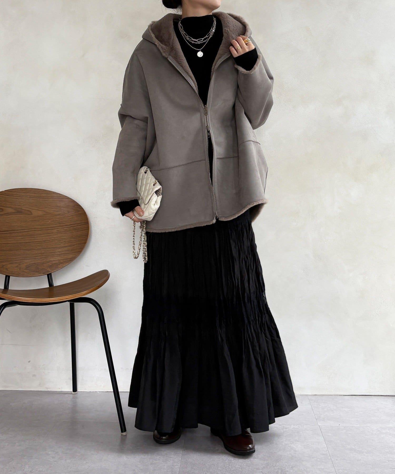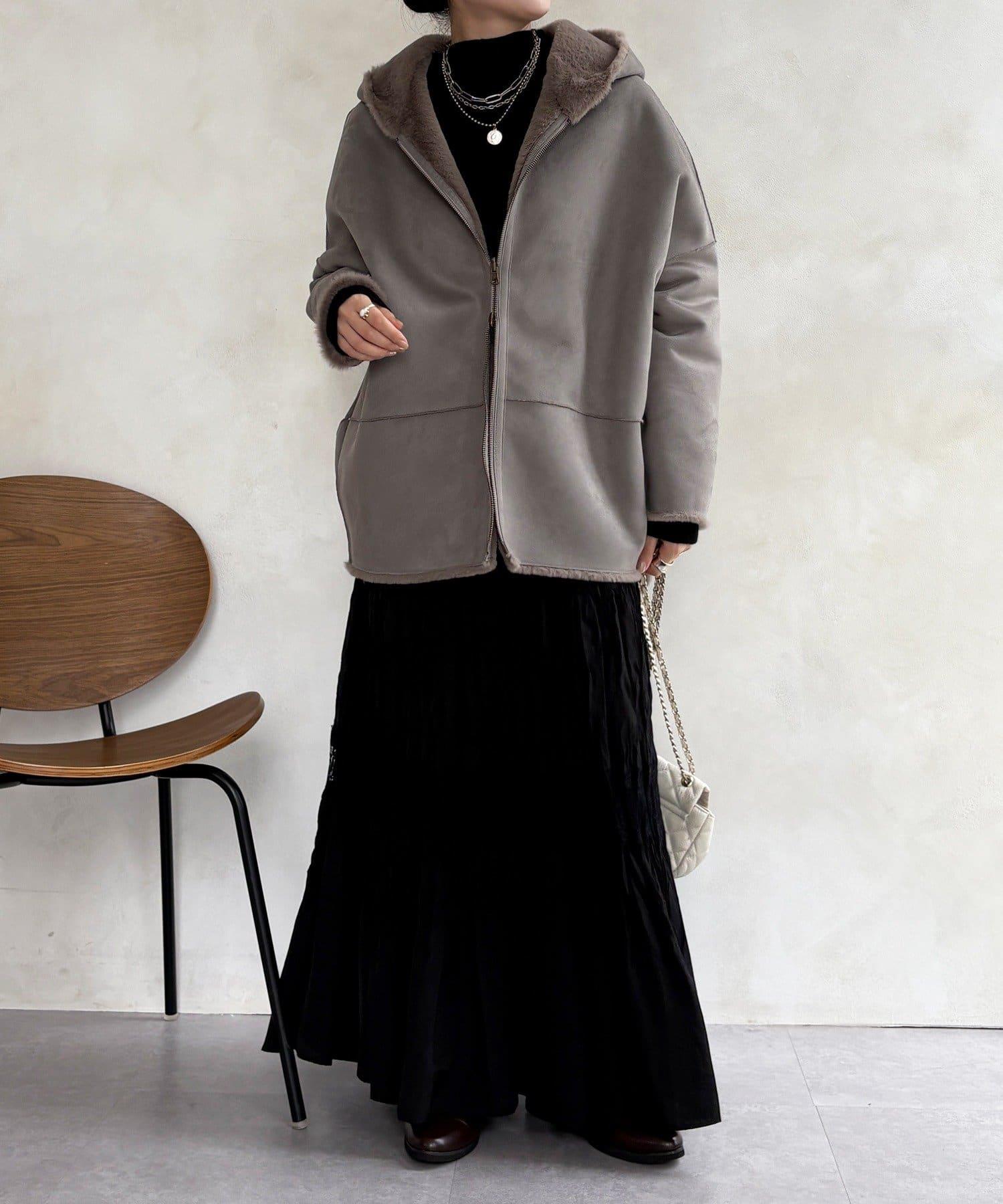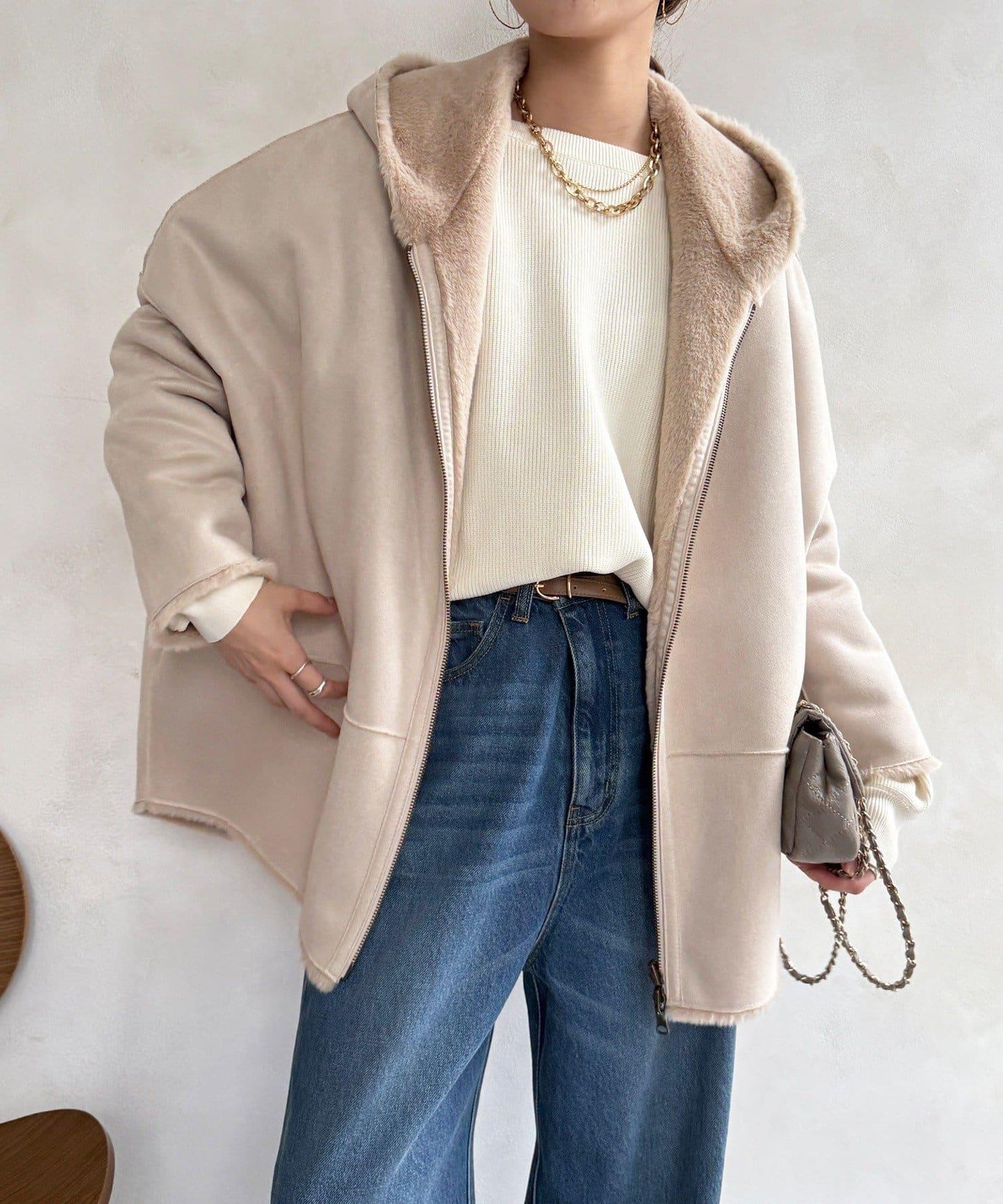 雙面外衣由觸感柔軟的毛皮材料和麂皮製成。