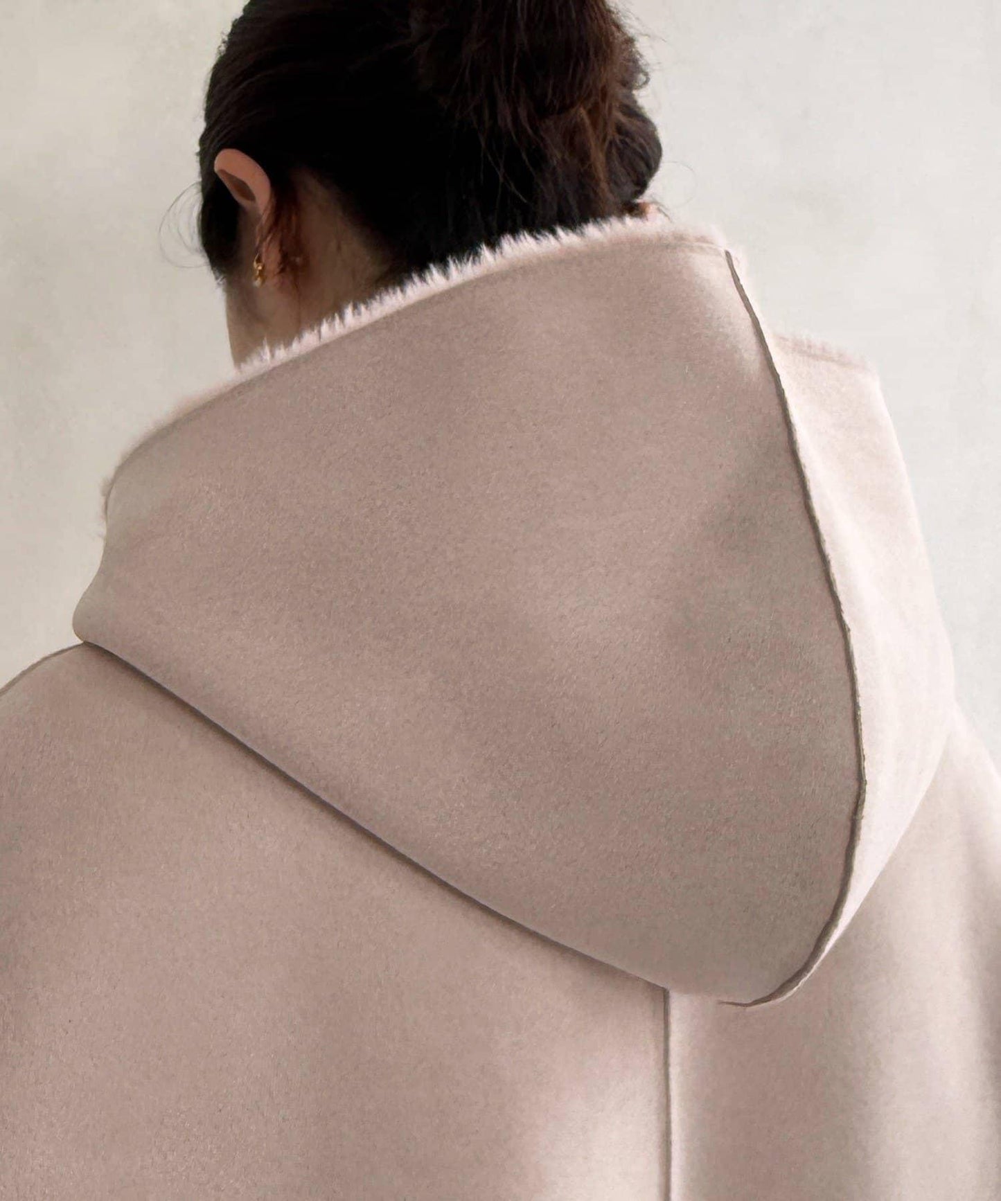 寬敞的廓形和穿上後在背後收起的方式是非常可愛的一點。