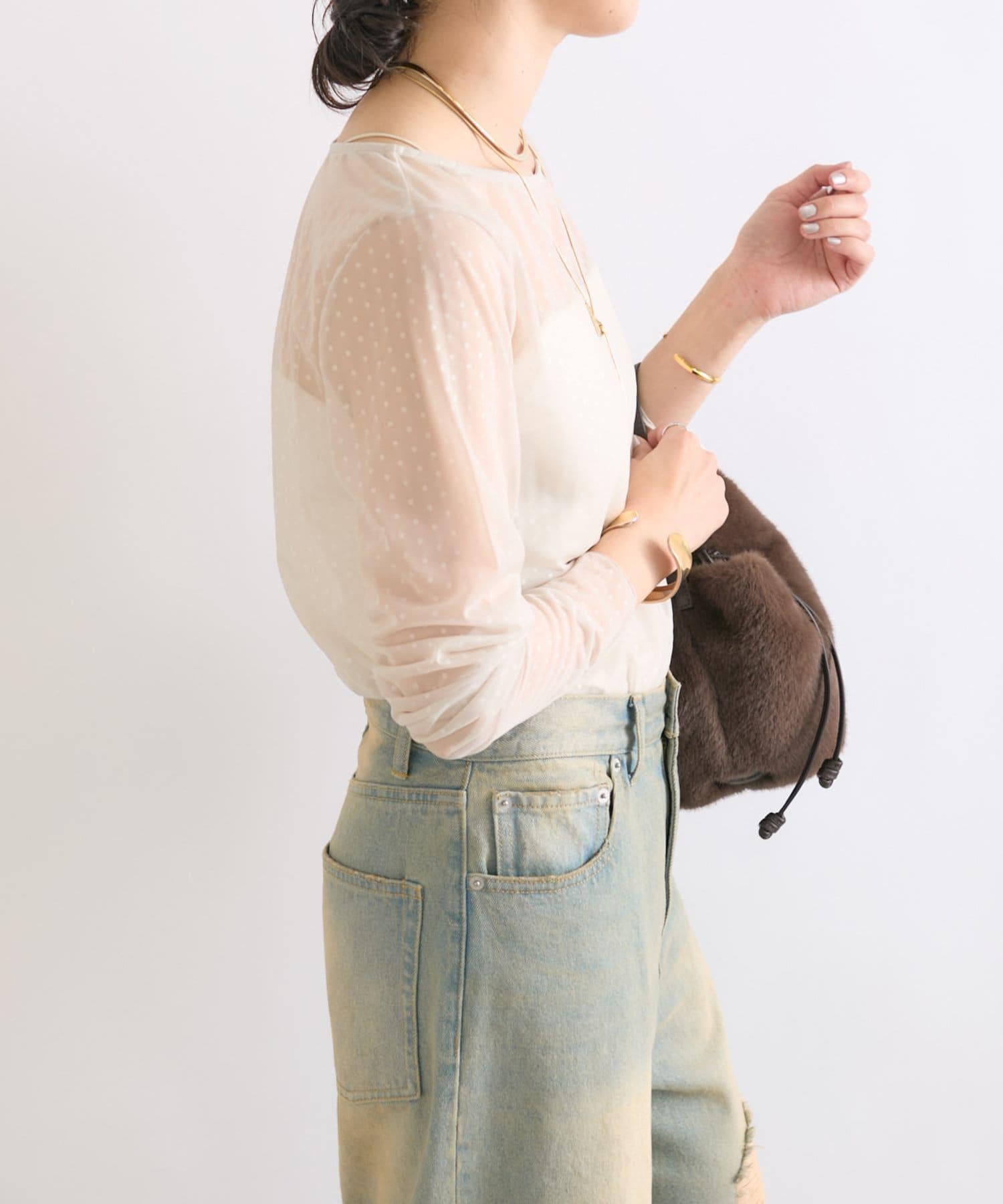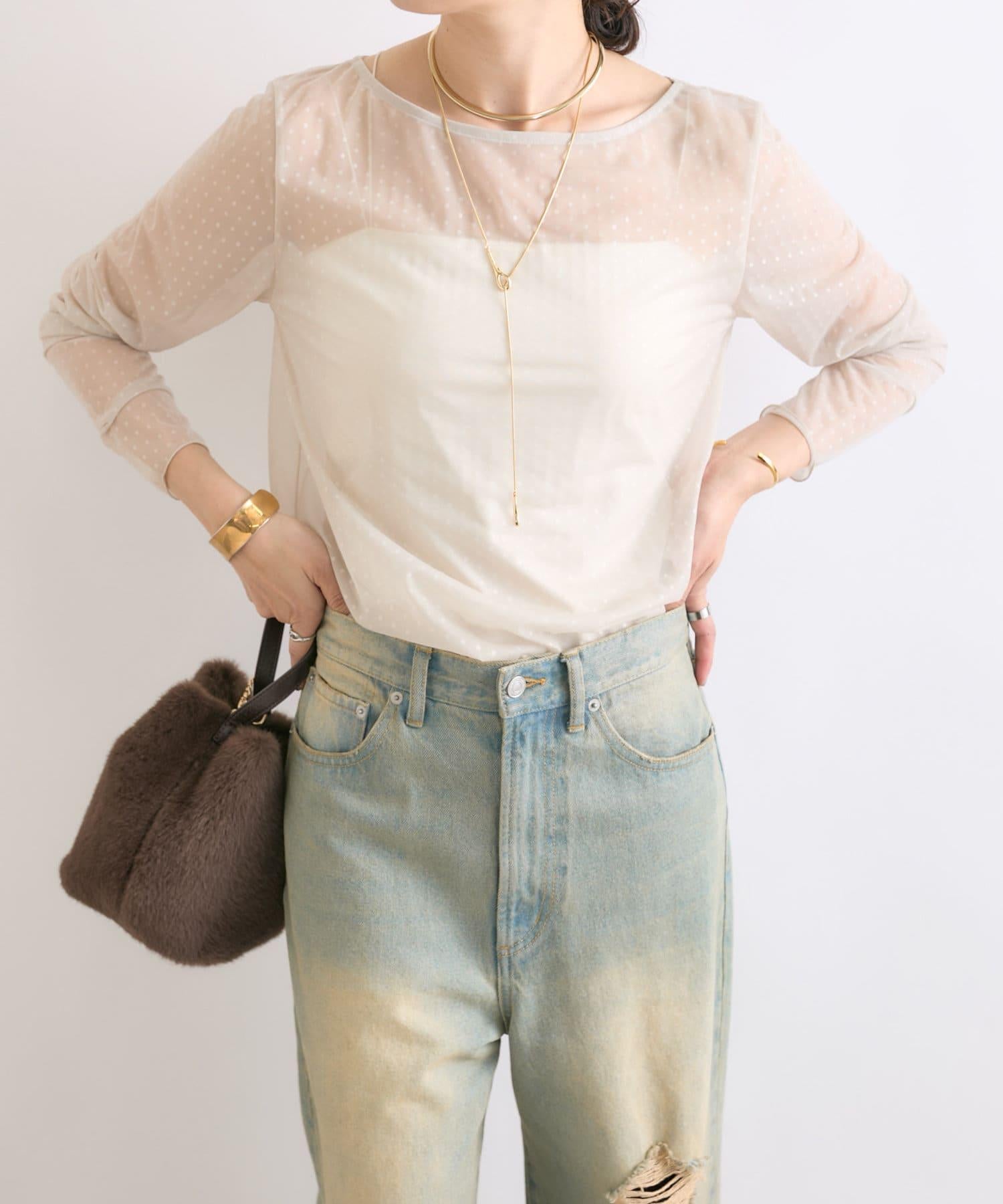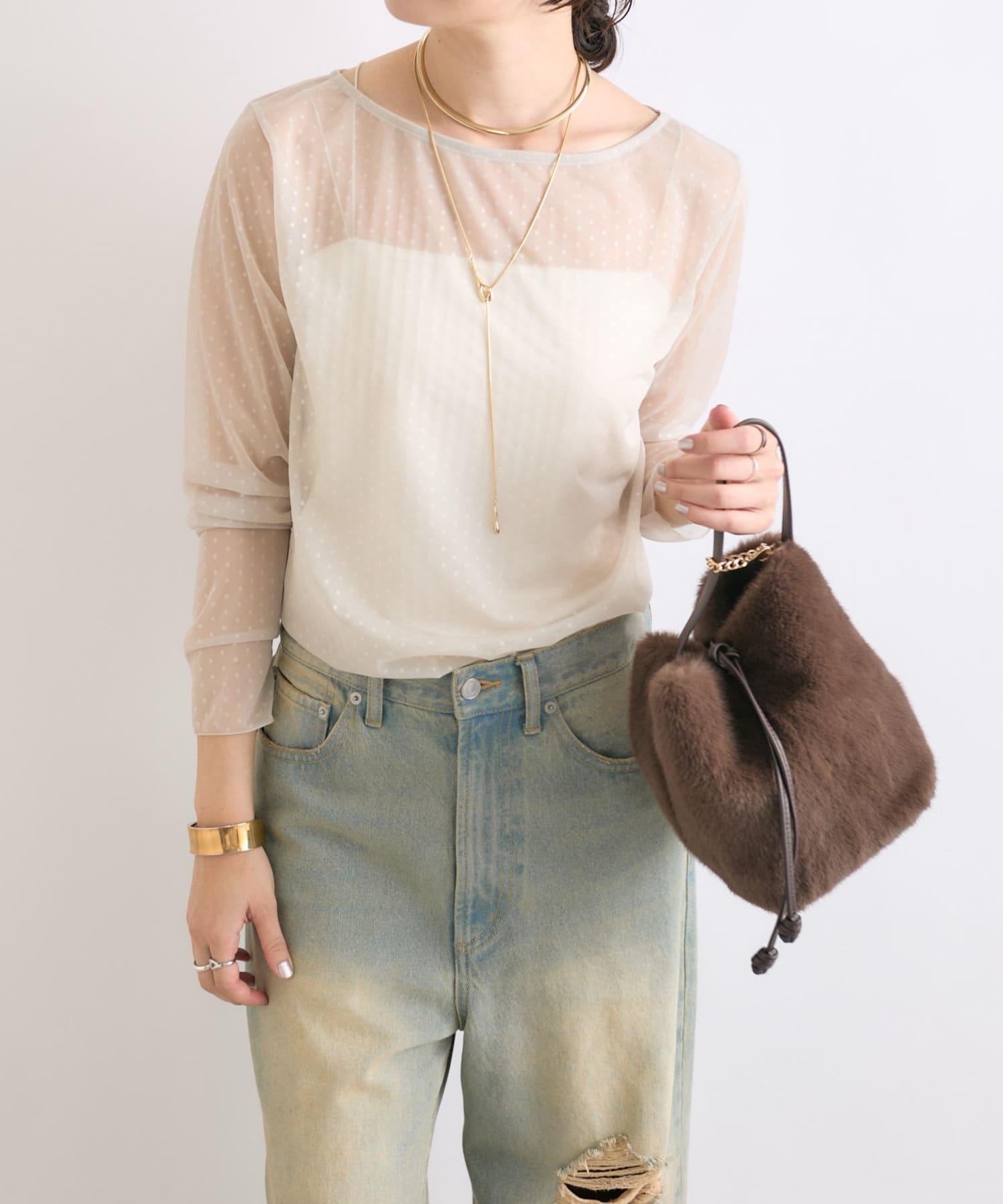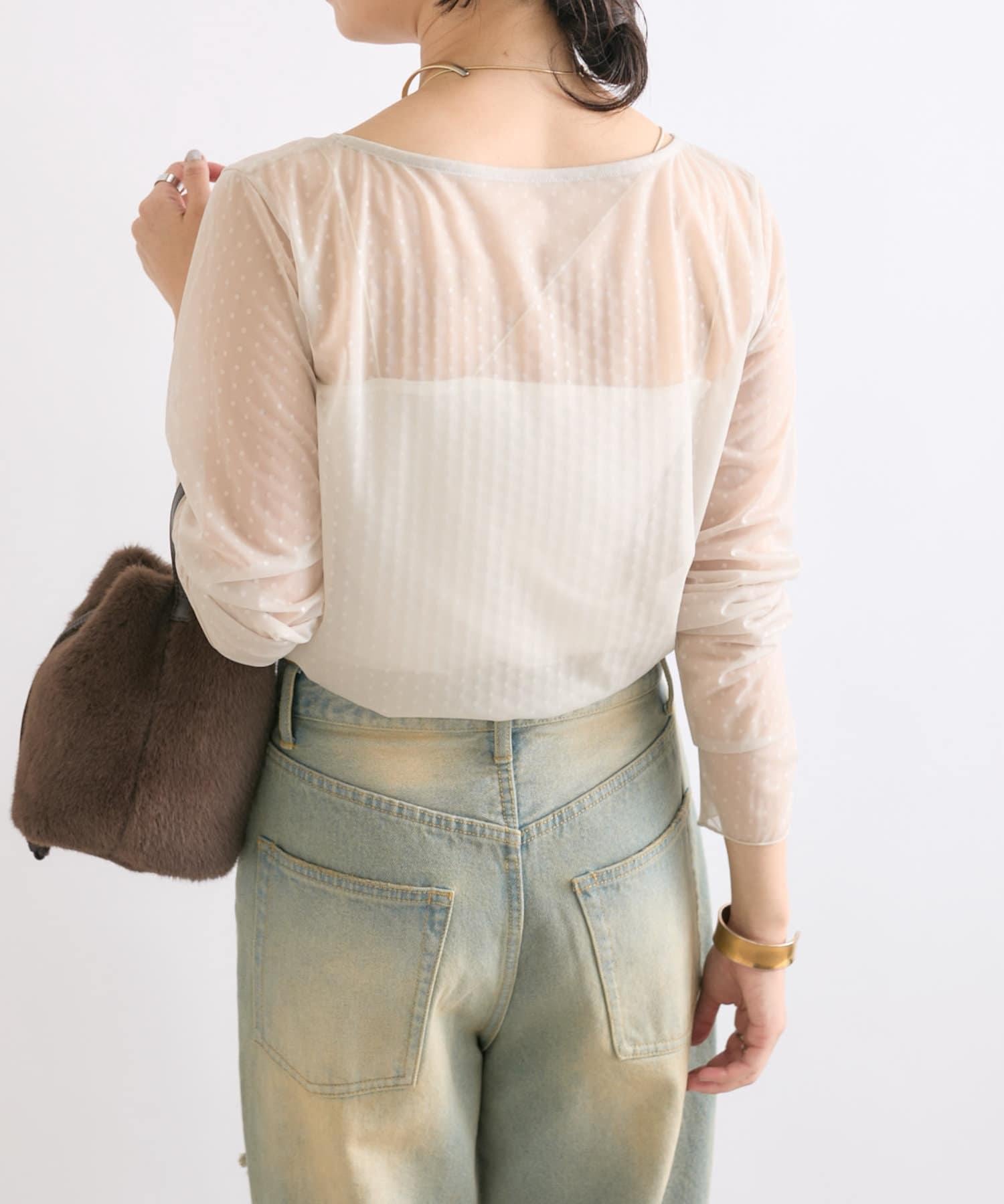 點狀薄紗製成的簡約上衣,柔順美觀。