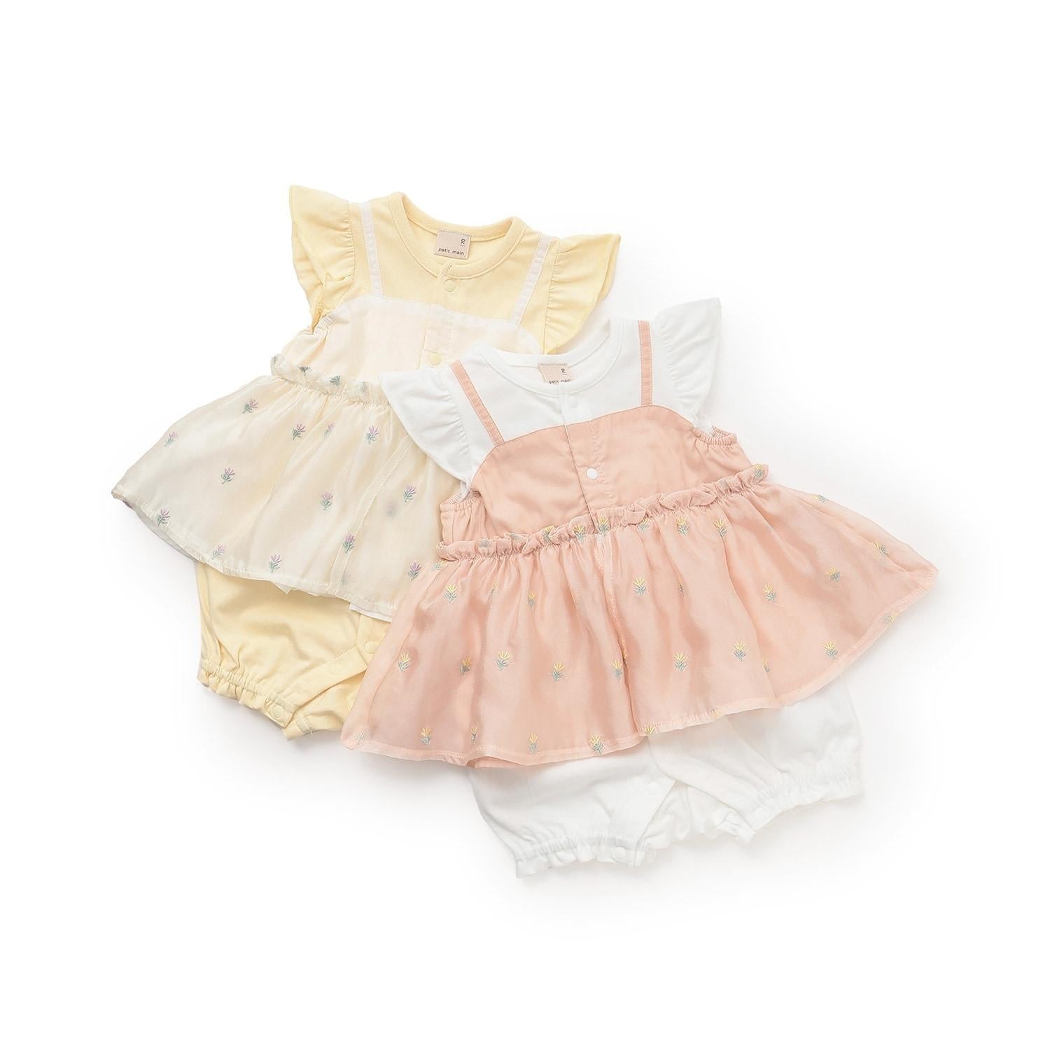 前襟和襠部有按扣,方便換尿布和穿衣。