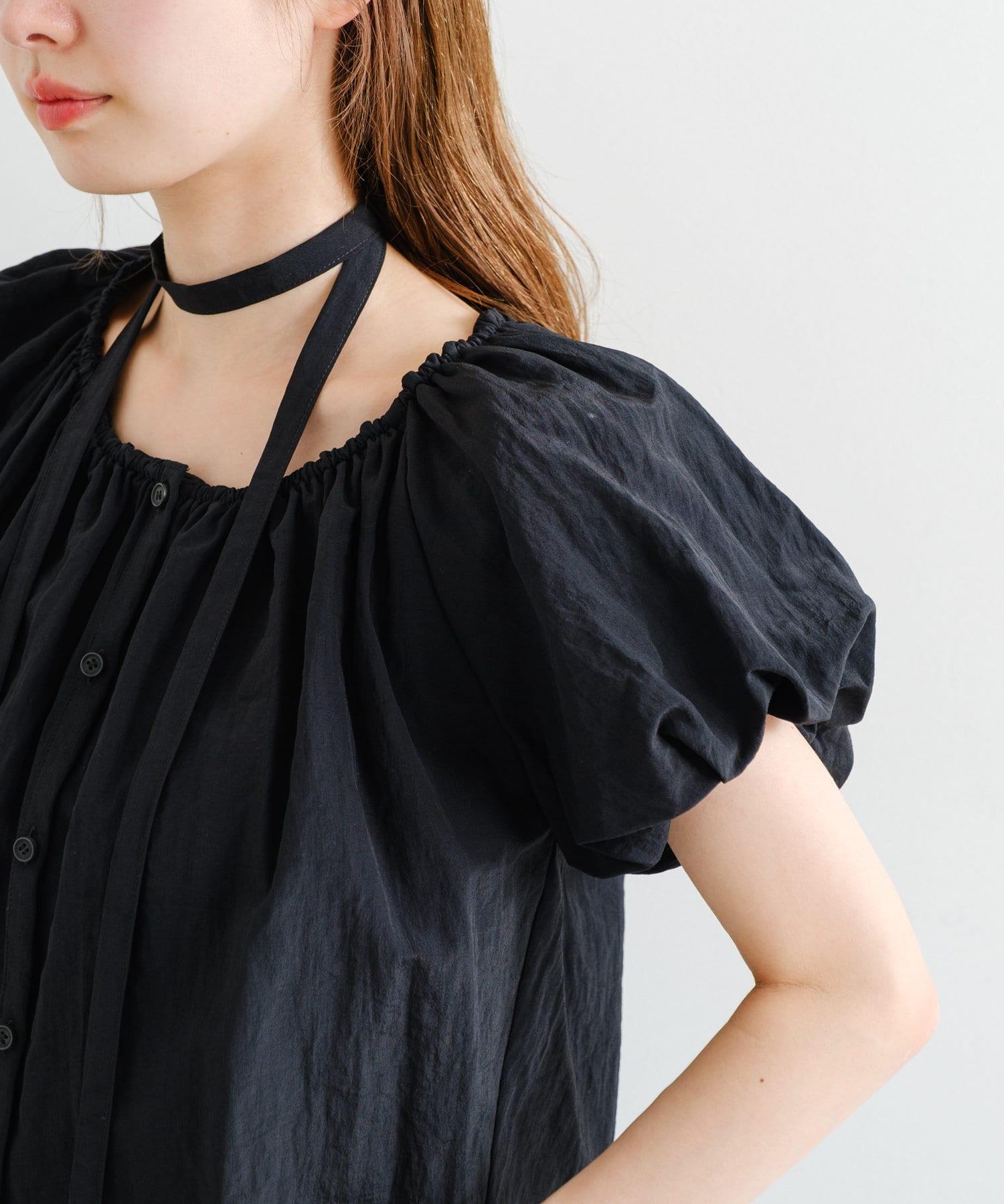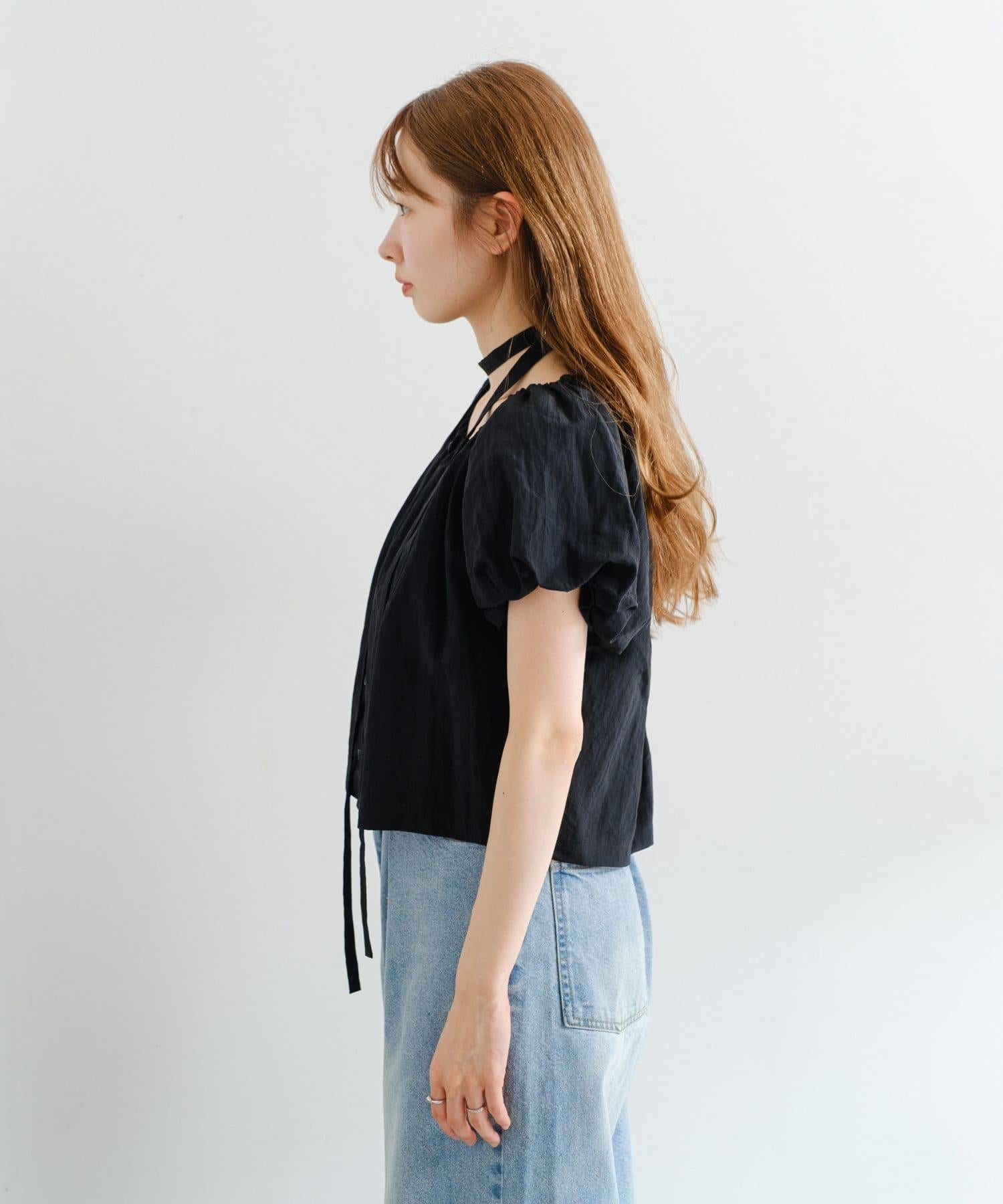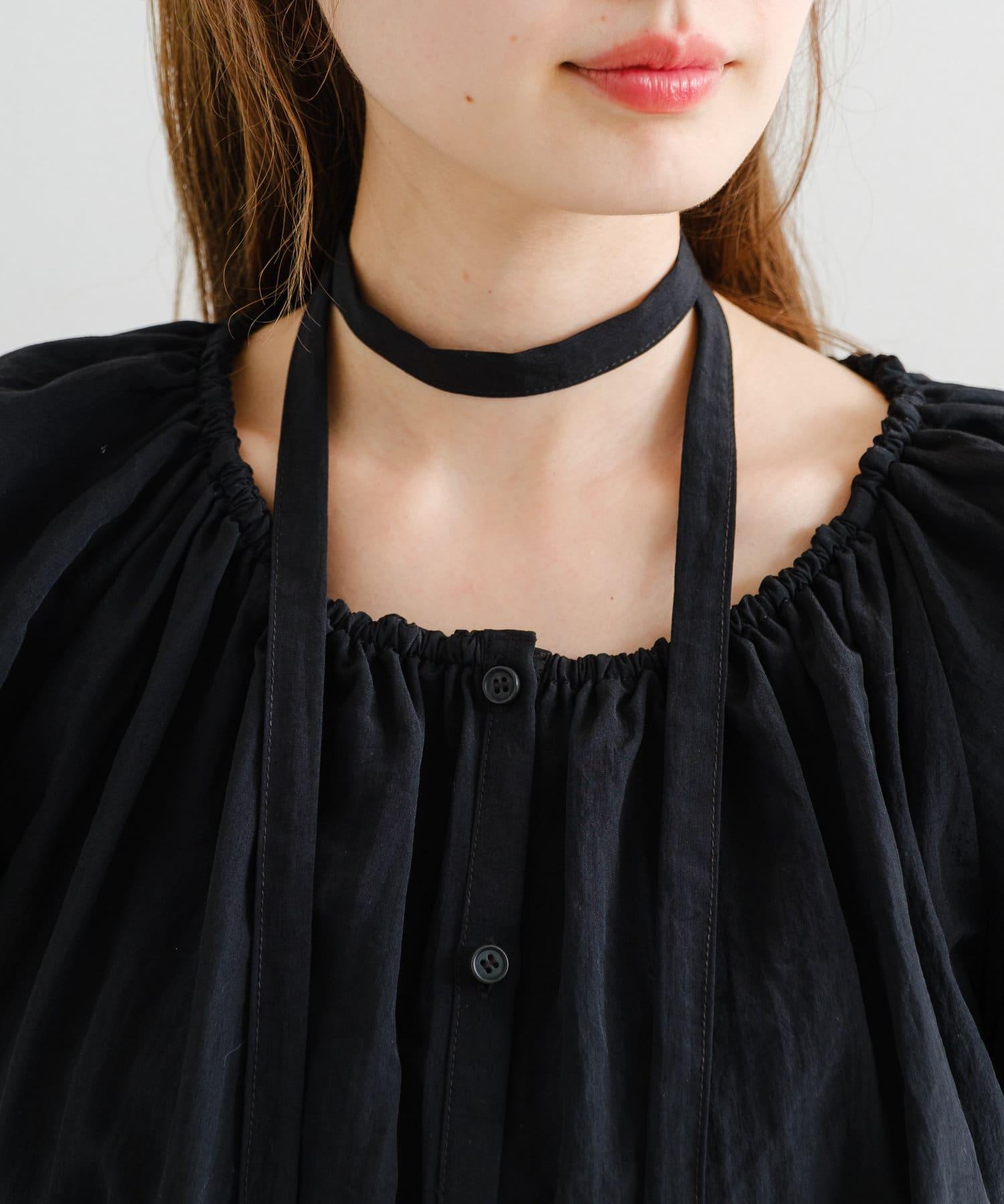 這是一款小巧的上衣,頸部的choker設計非常搶眼,很有季節感。