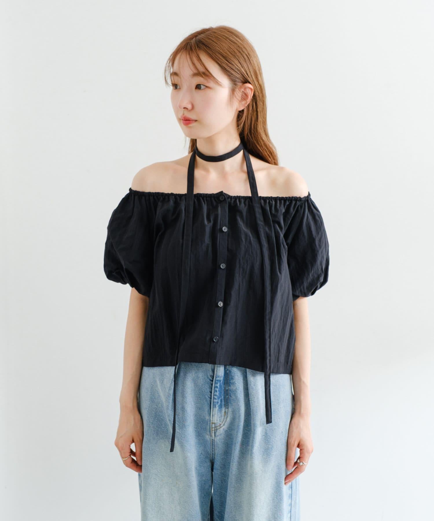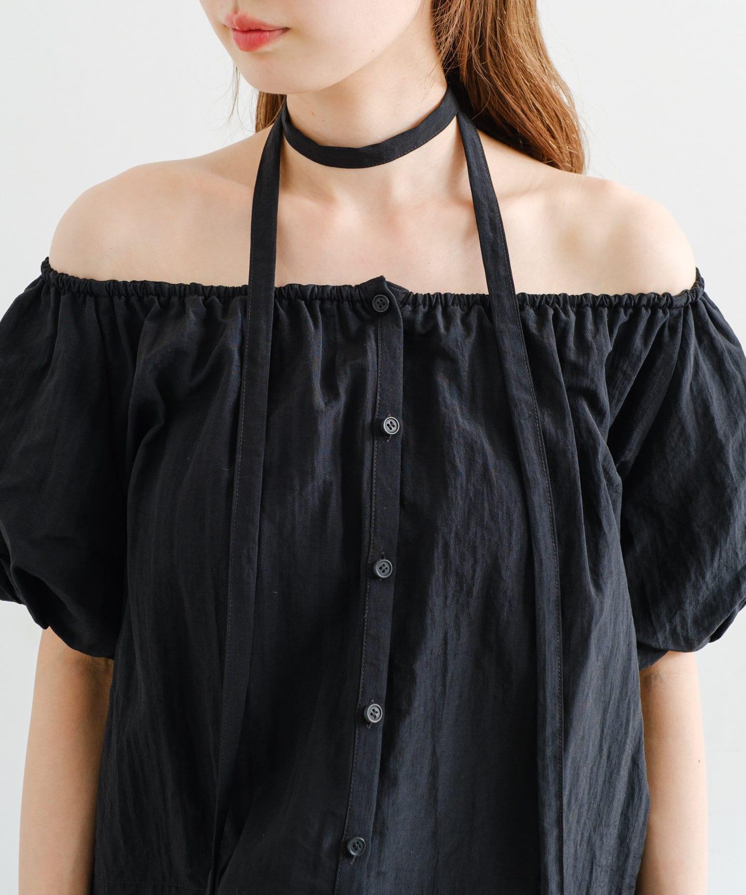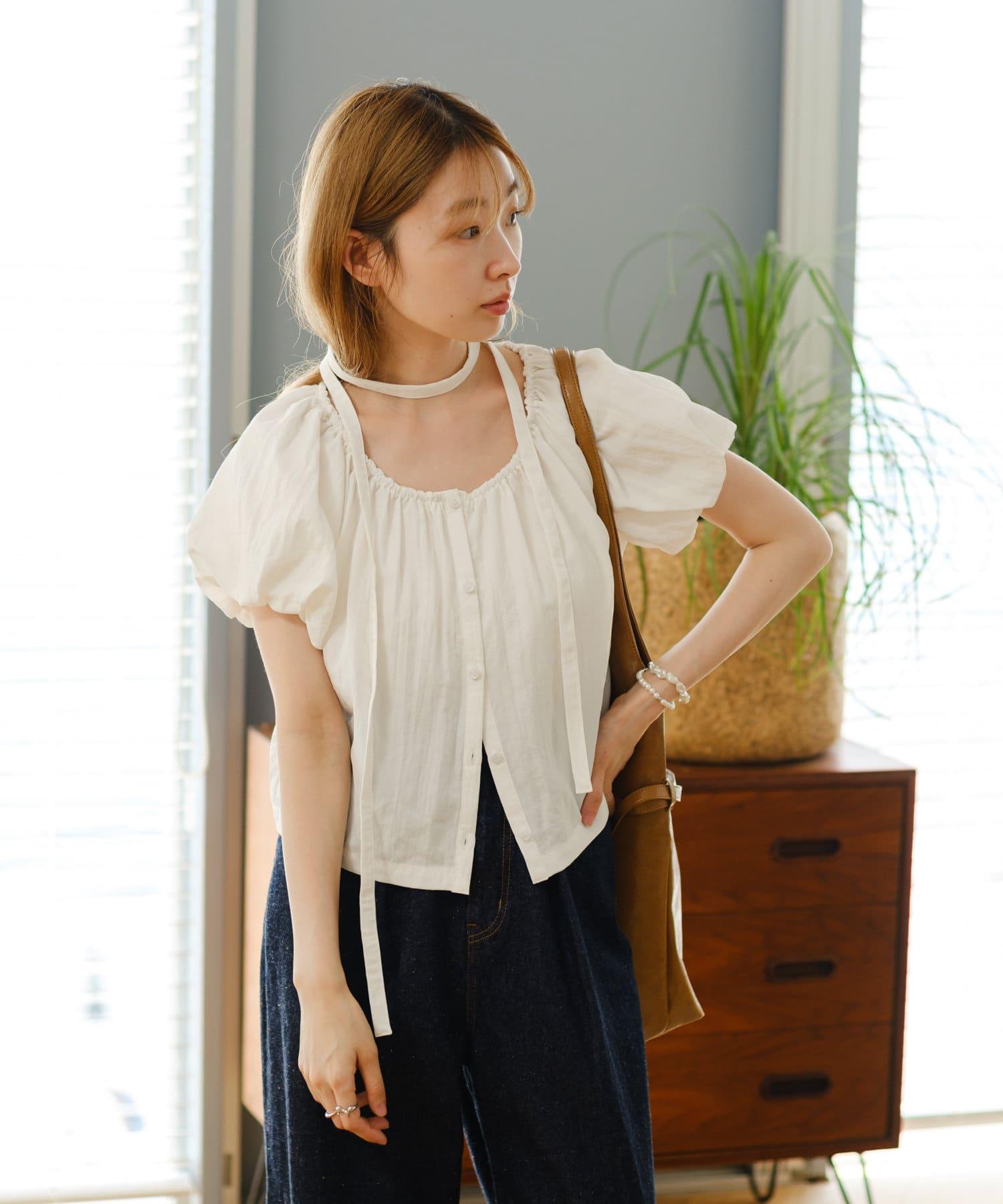 這是一款小巧的上衣,頸部的choker設計非常搶眼,很有季節感。