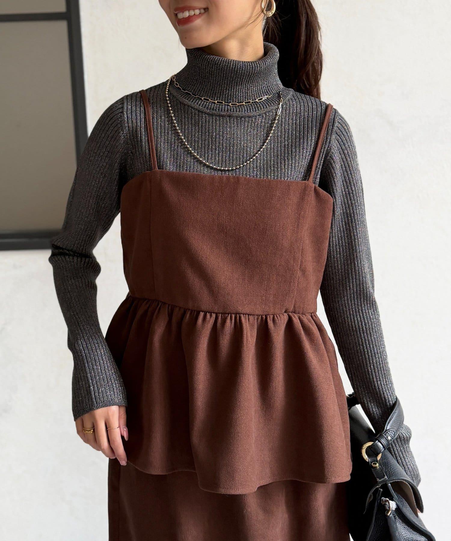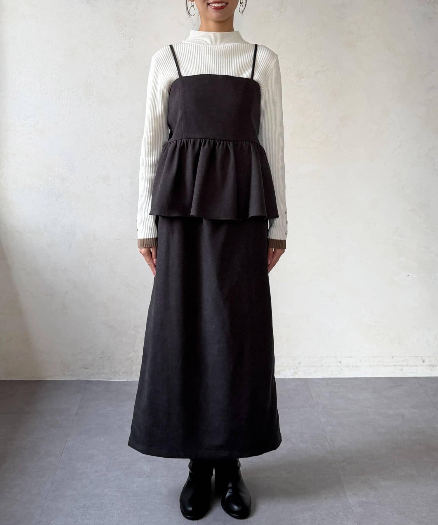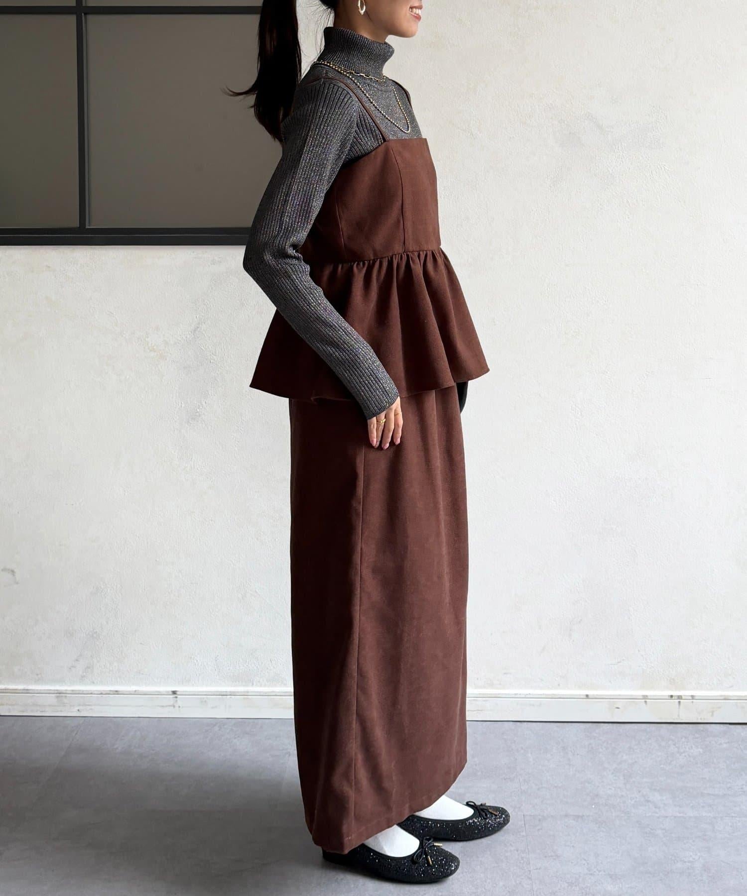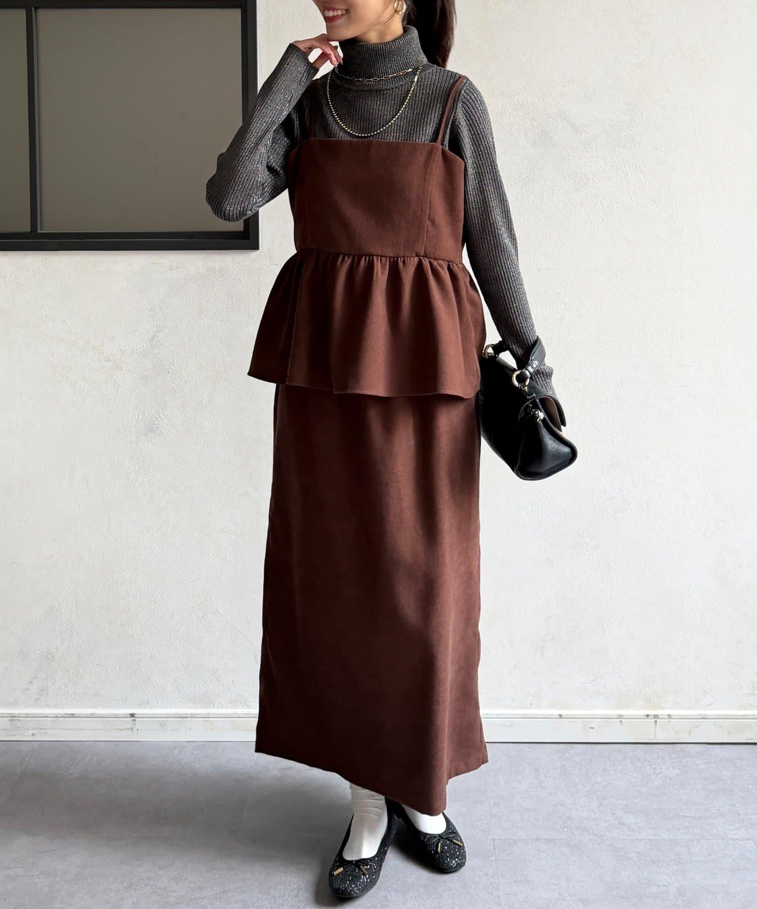 由遮蓋身體的蓬蓬裙廓形吊帶半身裙和簡潔的 I 字裙組成的套裝單品,適合休閒風格。