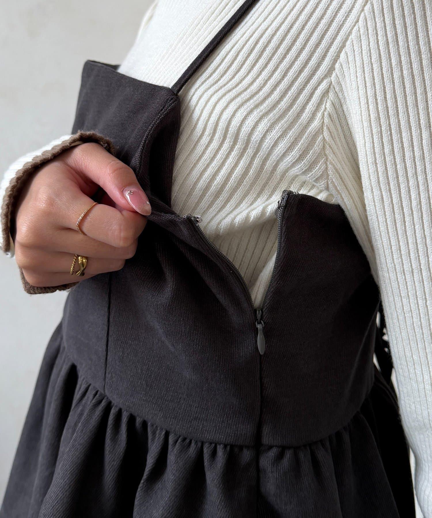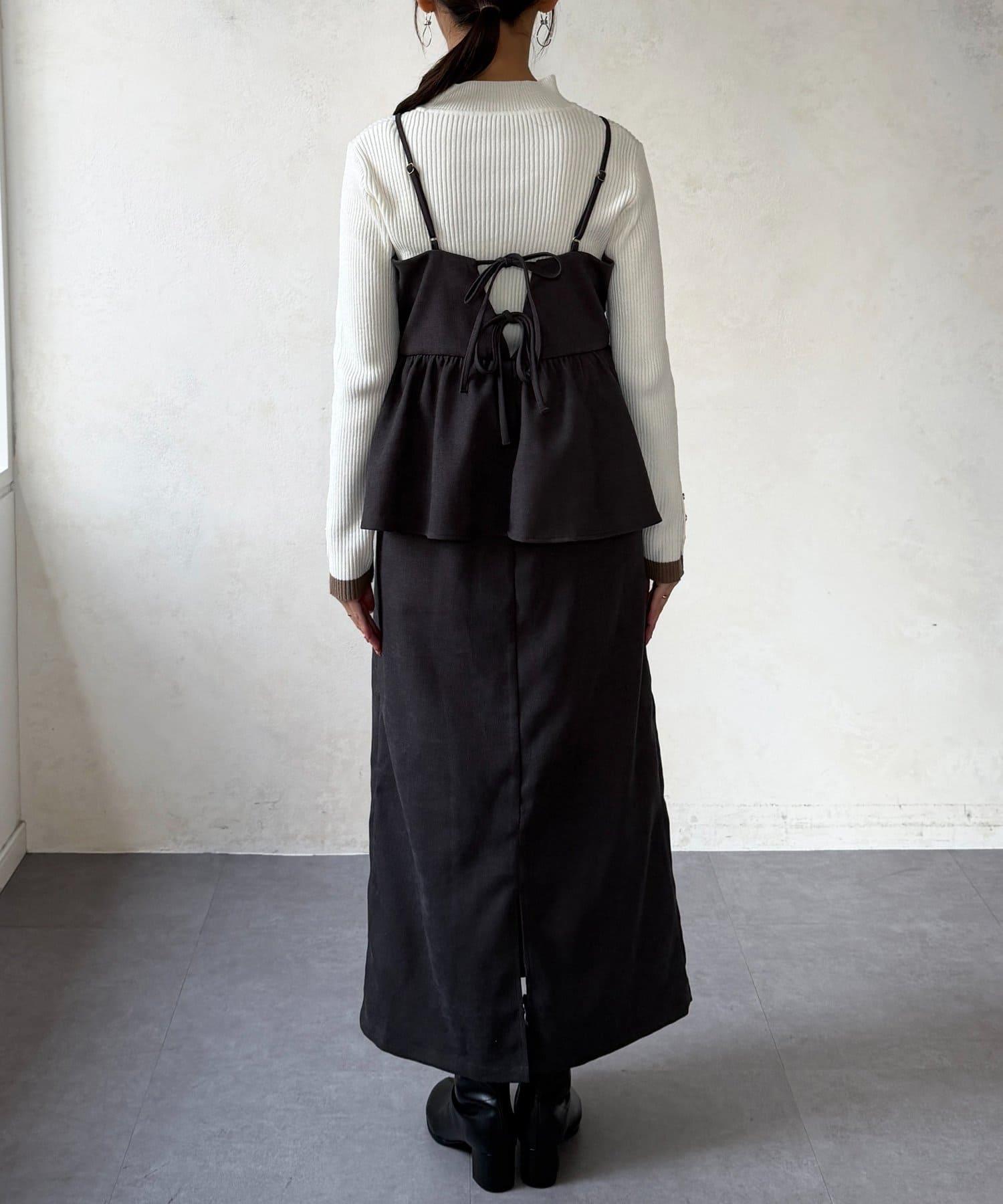 這款吊帶半身裙既可單穿,也可搭配 T 恤或透視長袖 T 恤。裙子的腰部完全鬆緊,背部開衩,穿著舒適,活動自如。