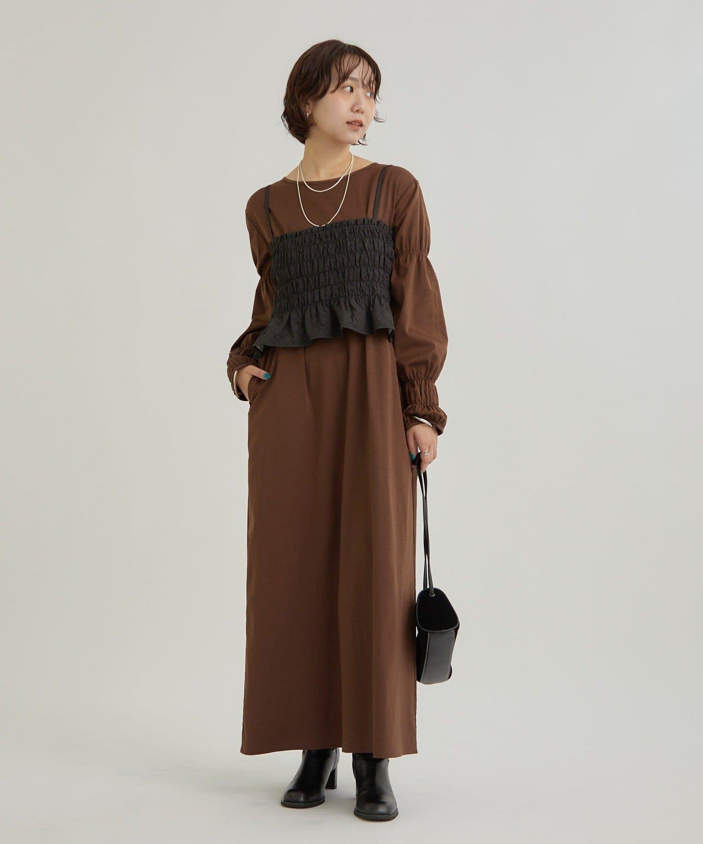 這款連衣裙是簡單的連身裙,因此添加配飾會給人更精緻的感覺。