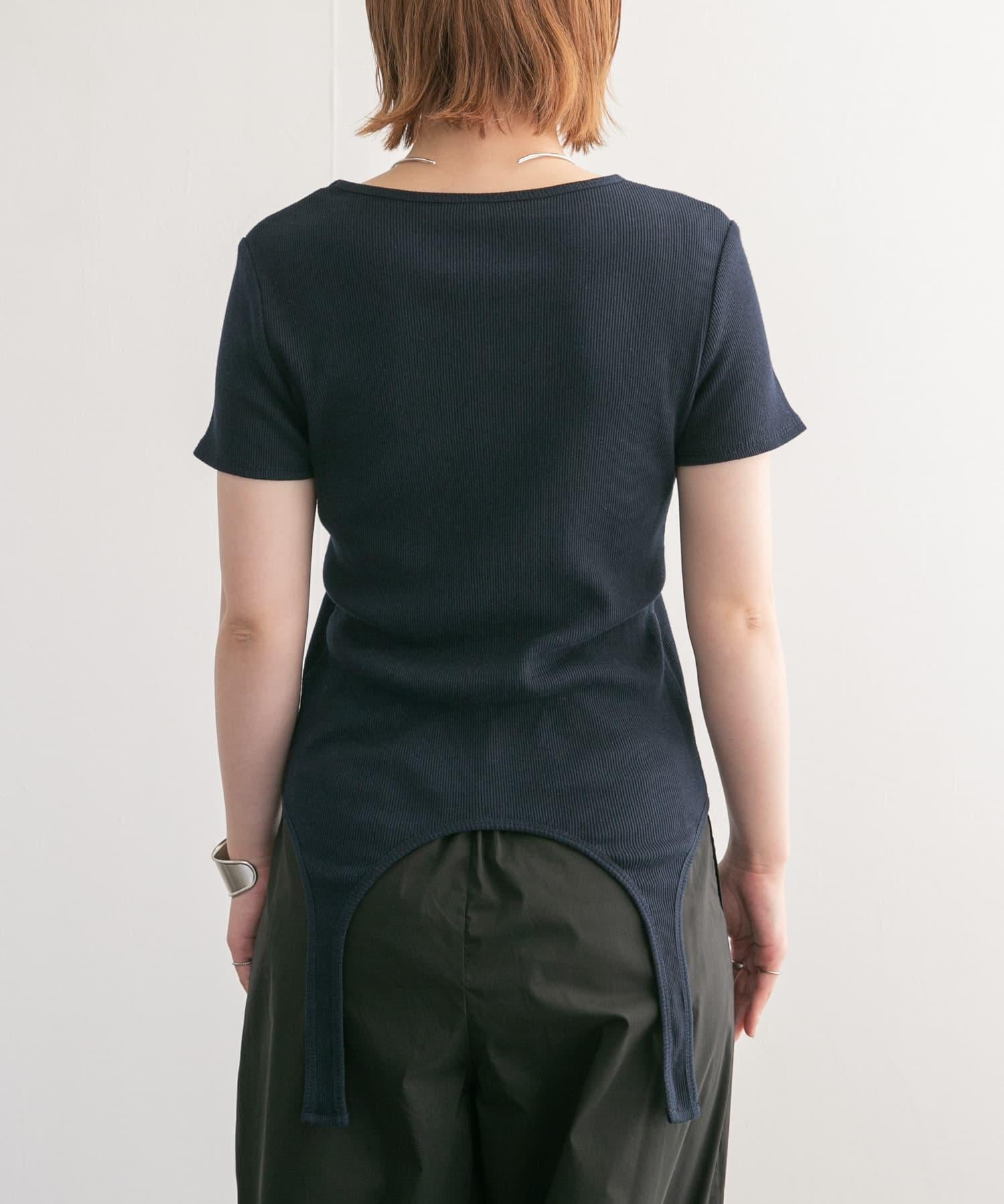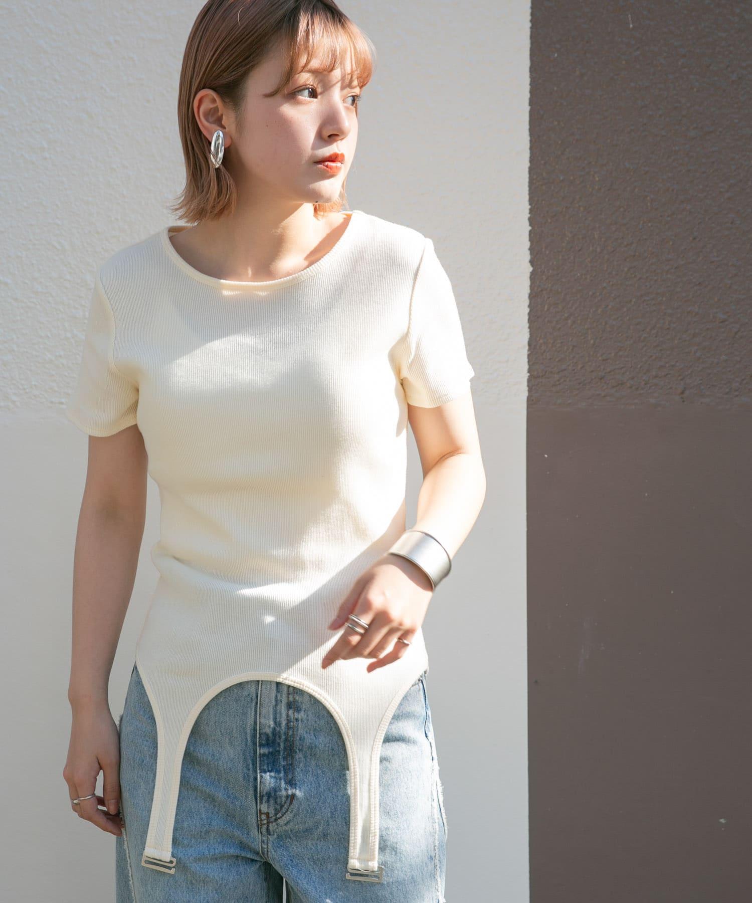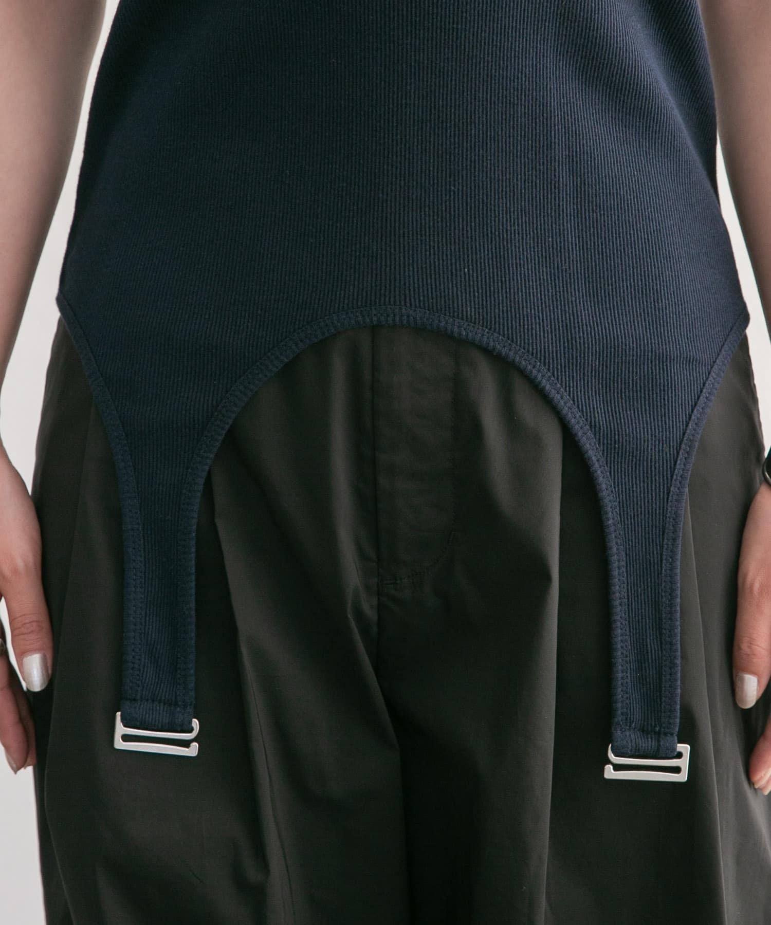 這件上衣乍看之下很普通,但卻是一件帶有吊襪帶細節的時尚單品。只需將其垂下即可穿出時尚感。小巧的尺寸可搭配各種下裝。