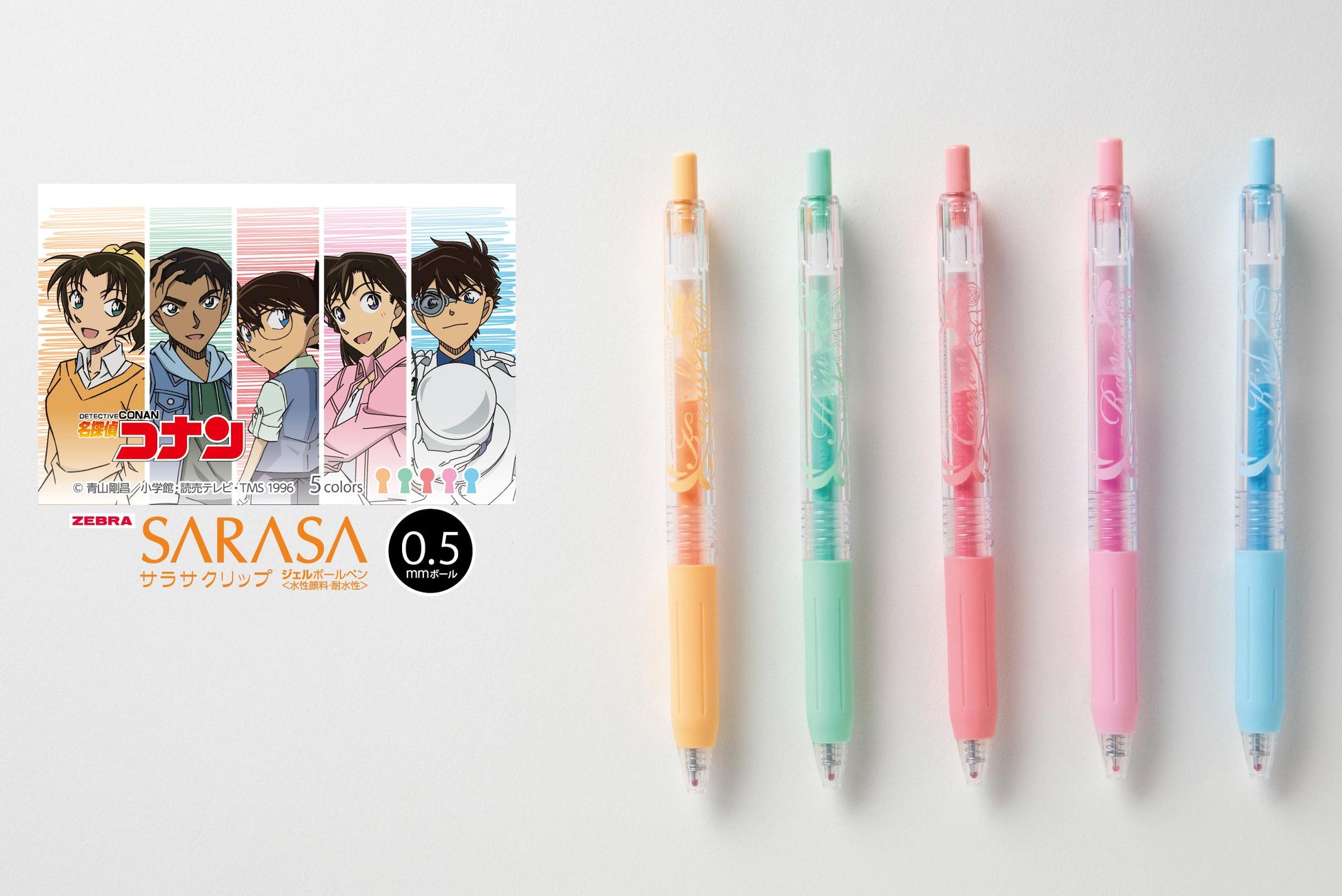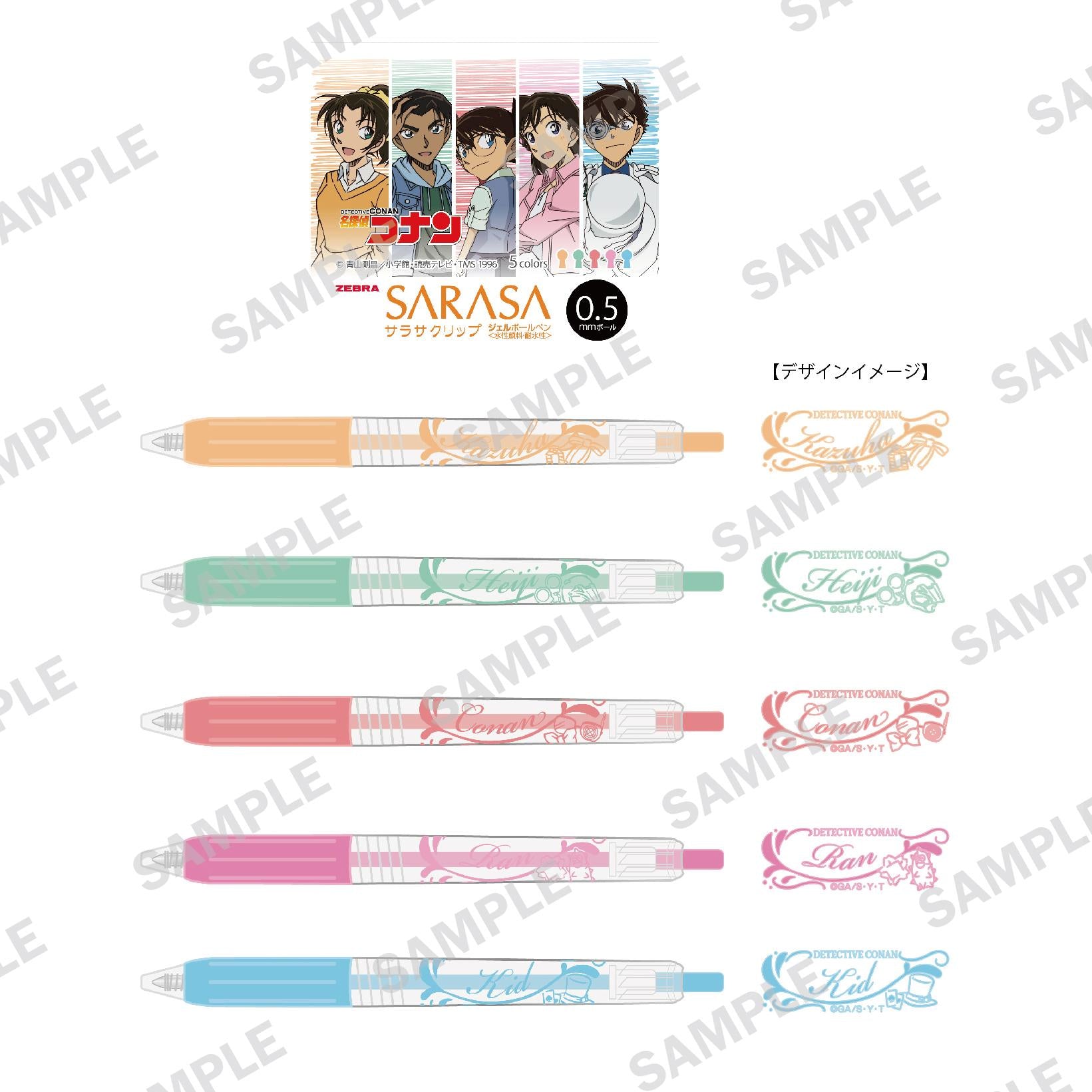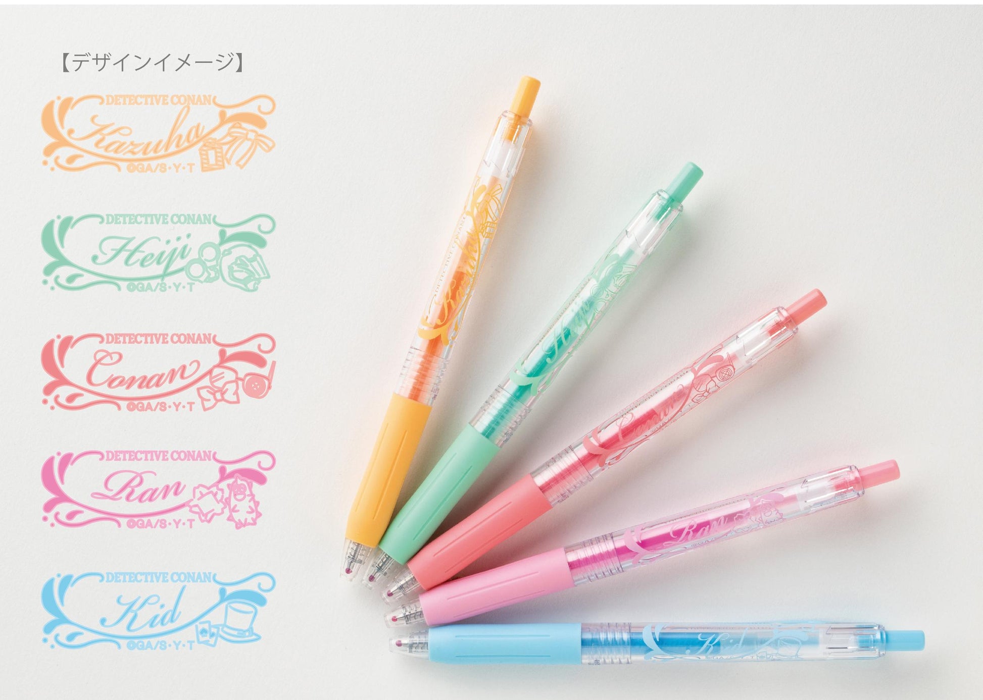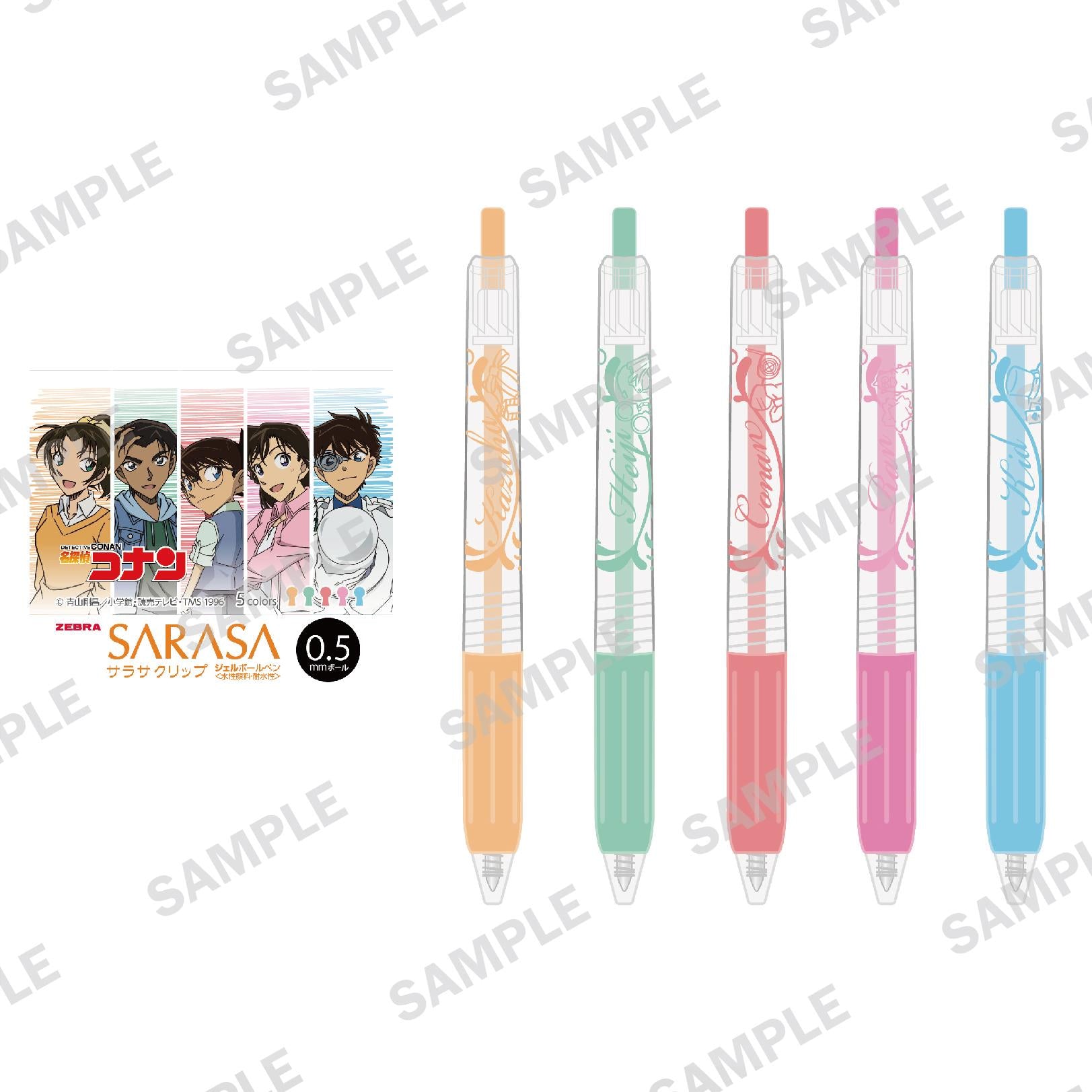 名偵探柯南》中的 Sarasa Clip 彩色圓珠筆一套五支!顏色和筆桿設計均以人物形象為基礎♪墨水顏色柔和可愛。