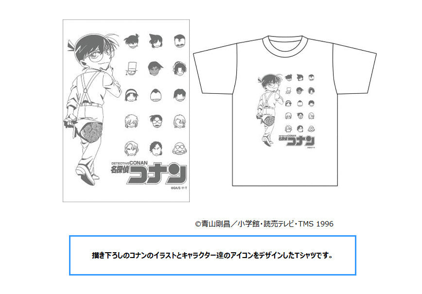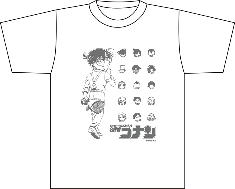 印有新繪製的柯南插圖和人物圖標的 T 恤。
