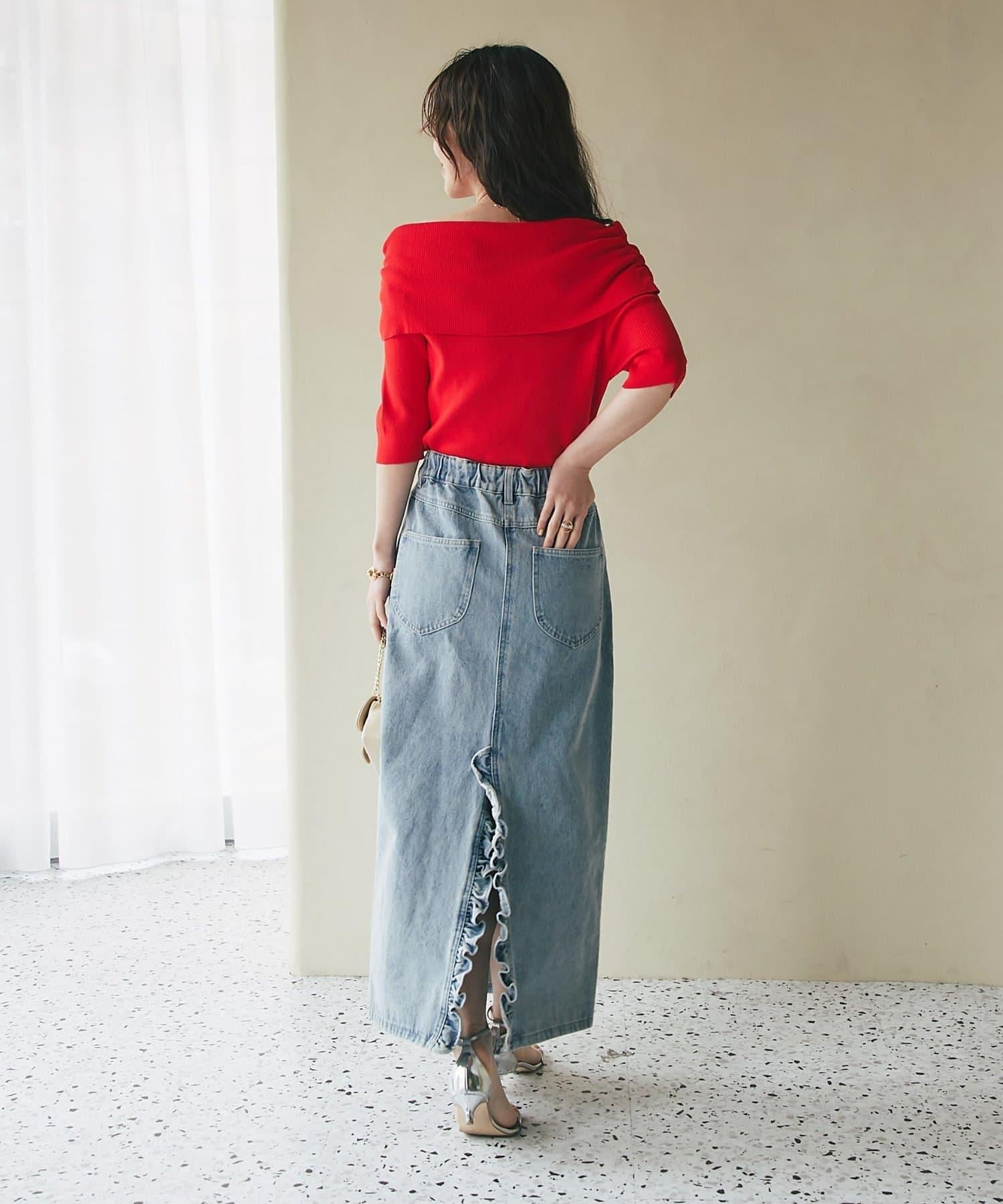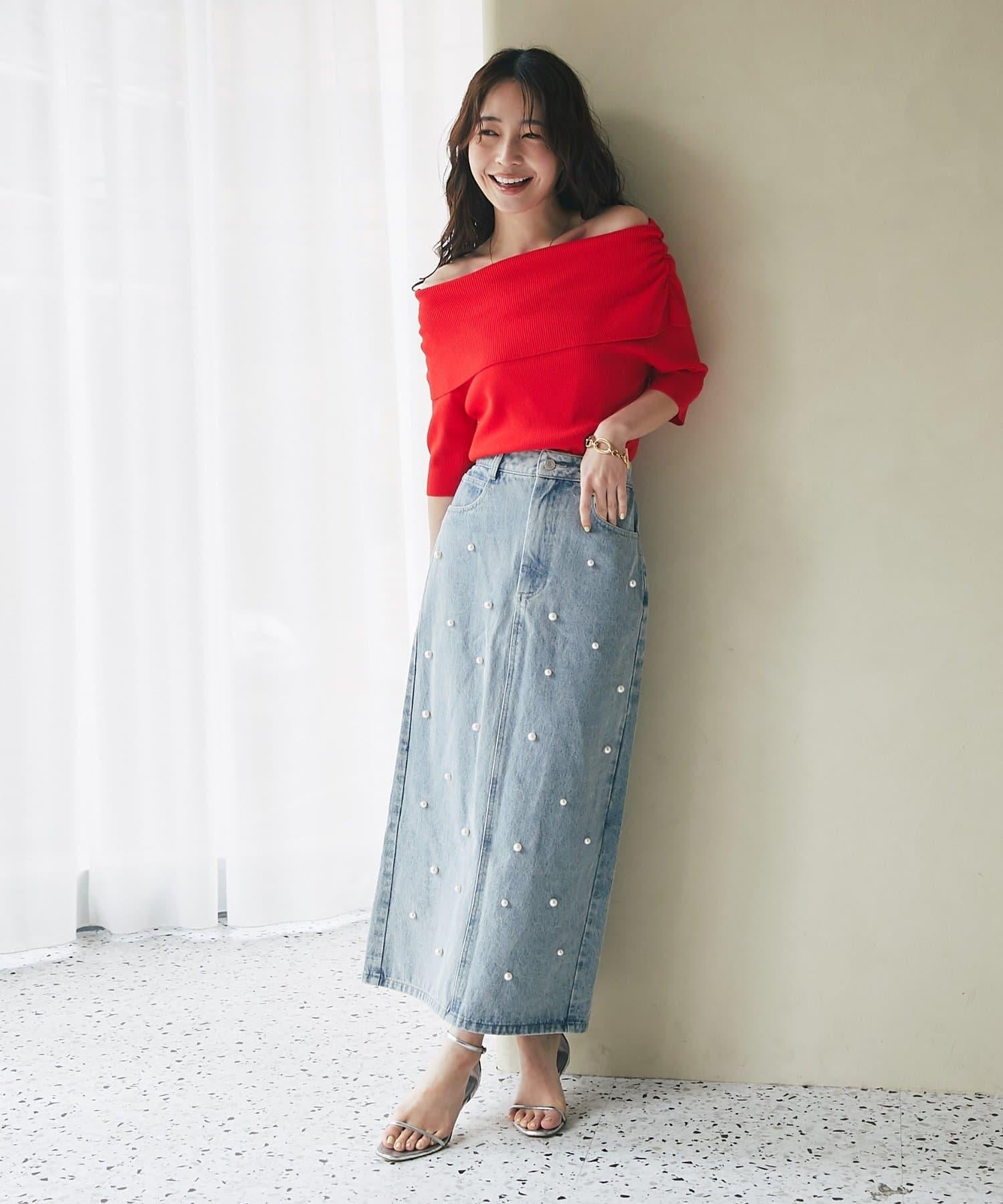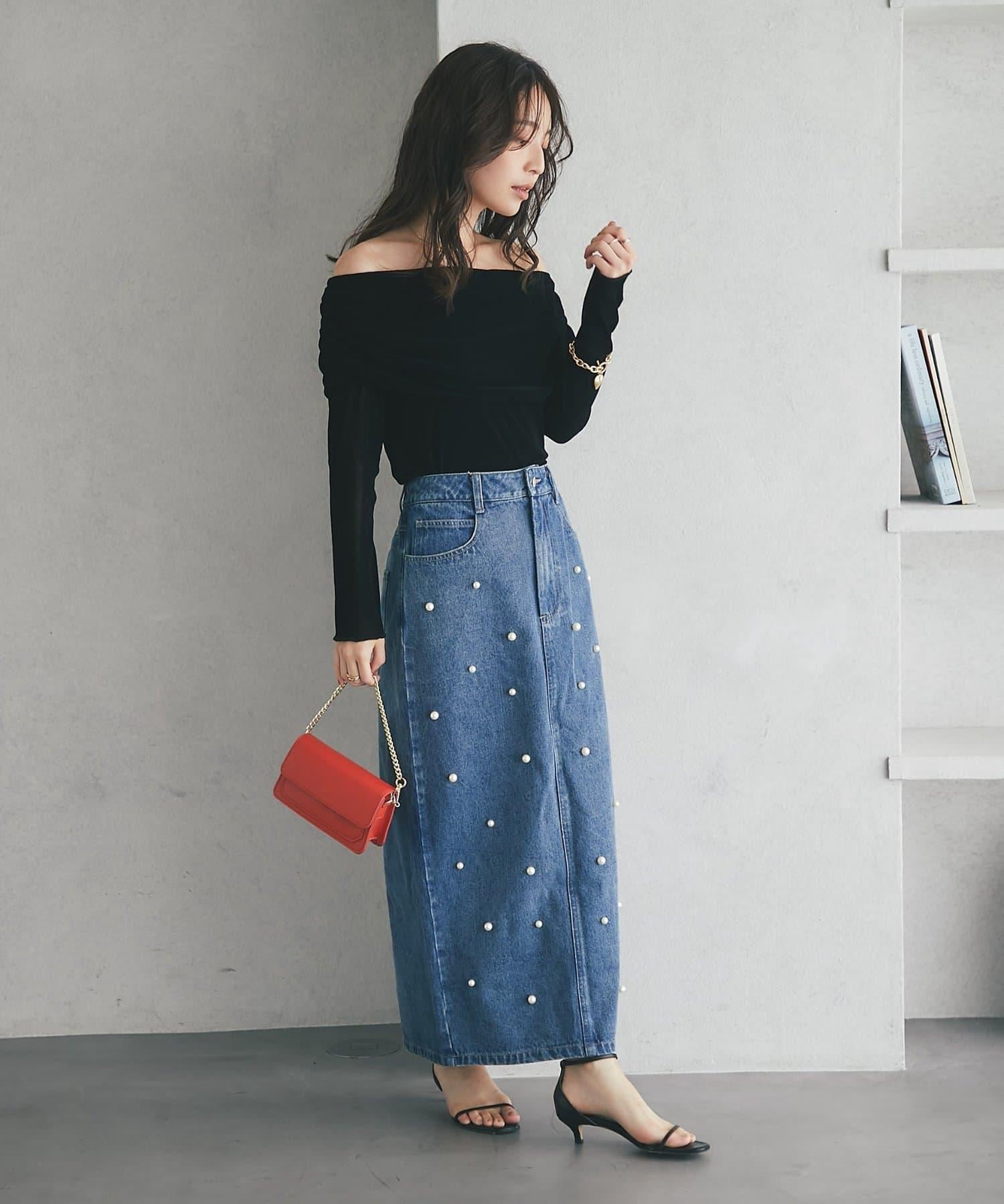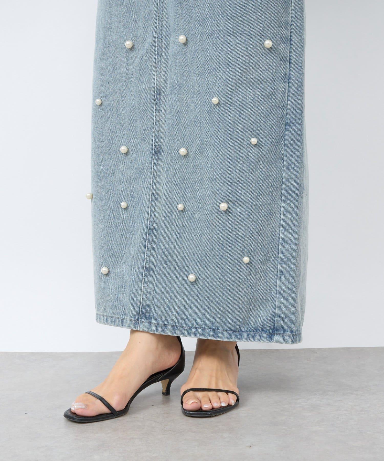 【名品・復刻】珍珠裝飾牛仔緊身長裙