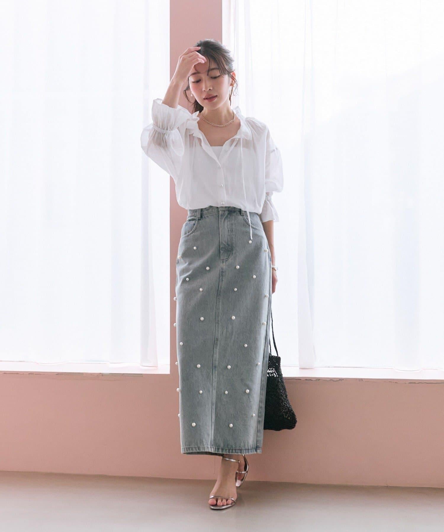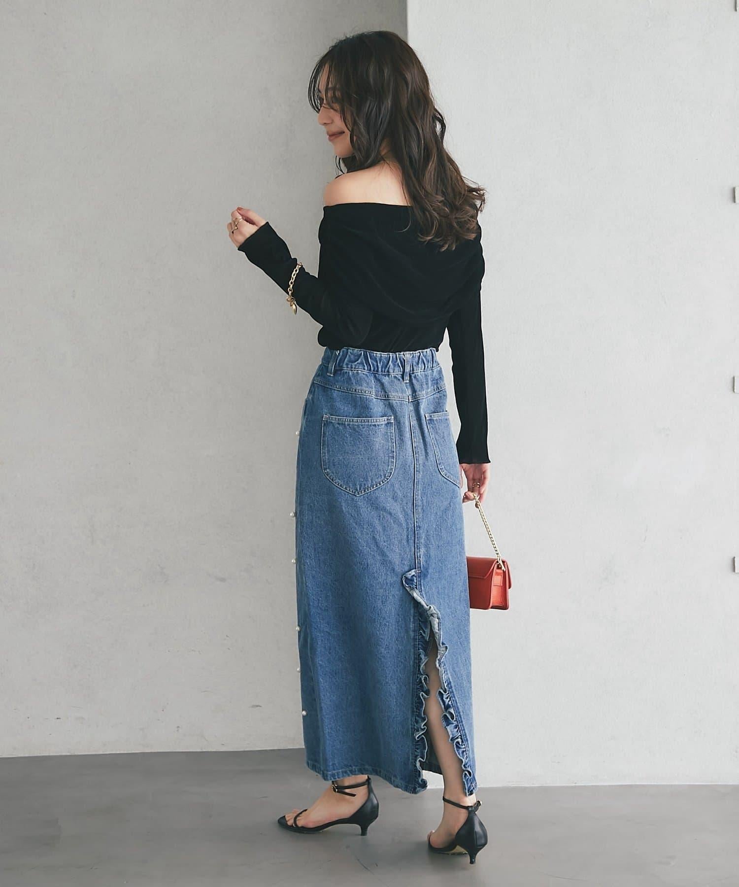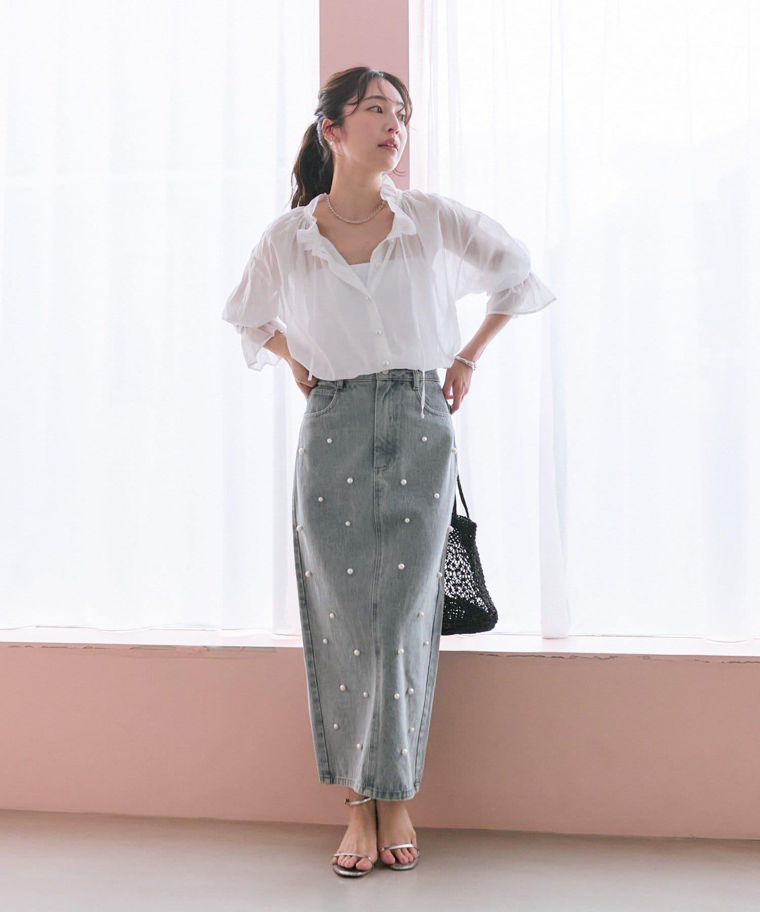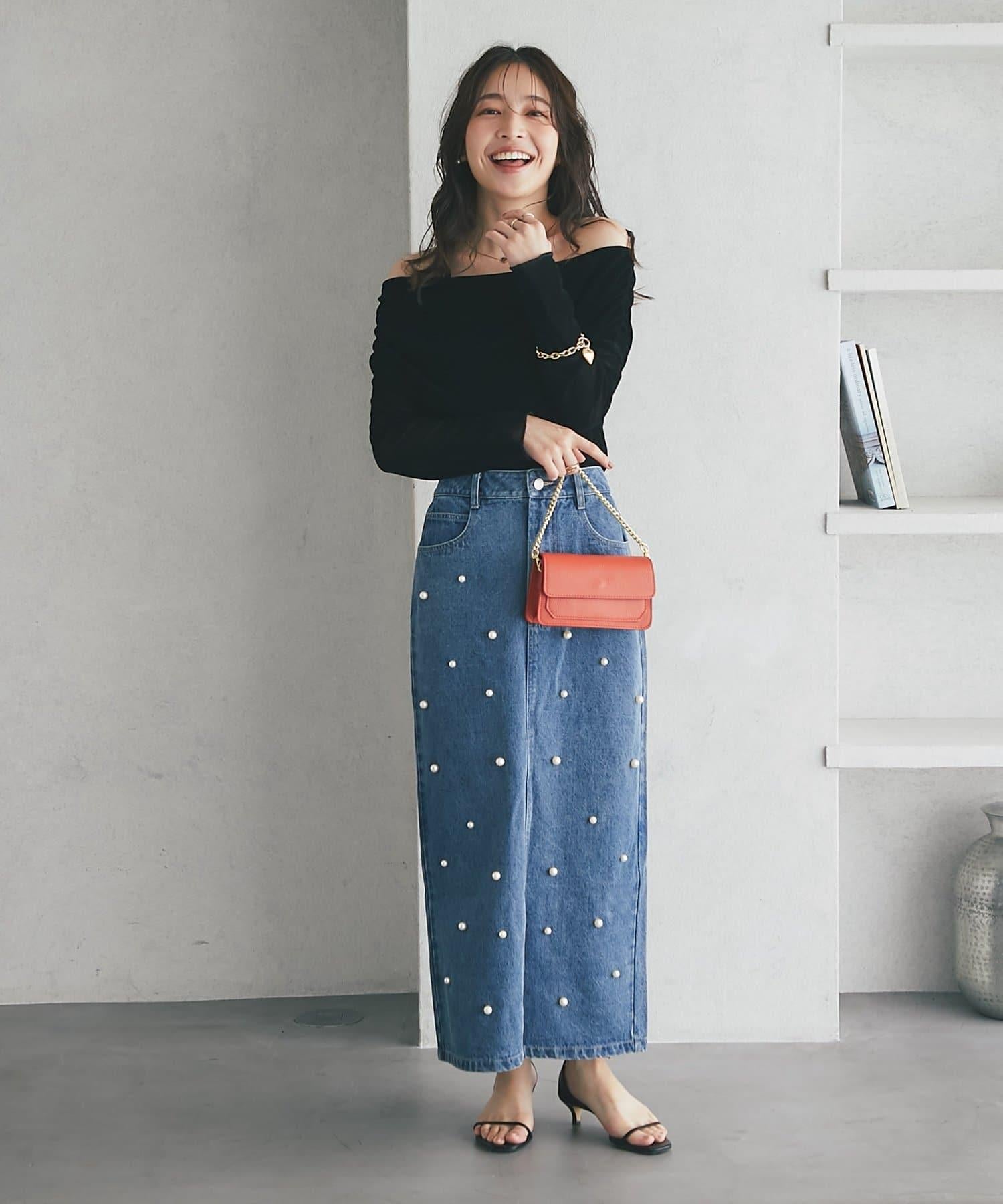 熱門商品再版!成熟而少女!期待已久的珍珠牛仔裙。