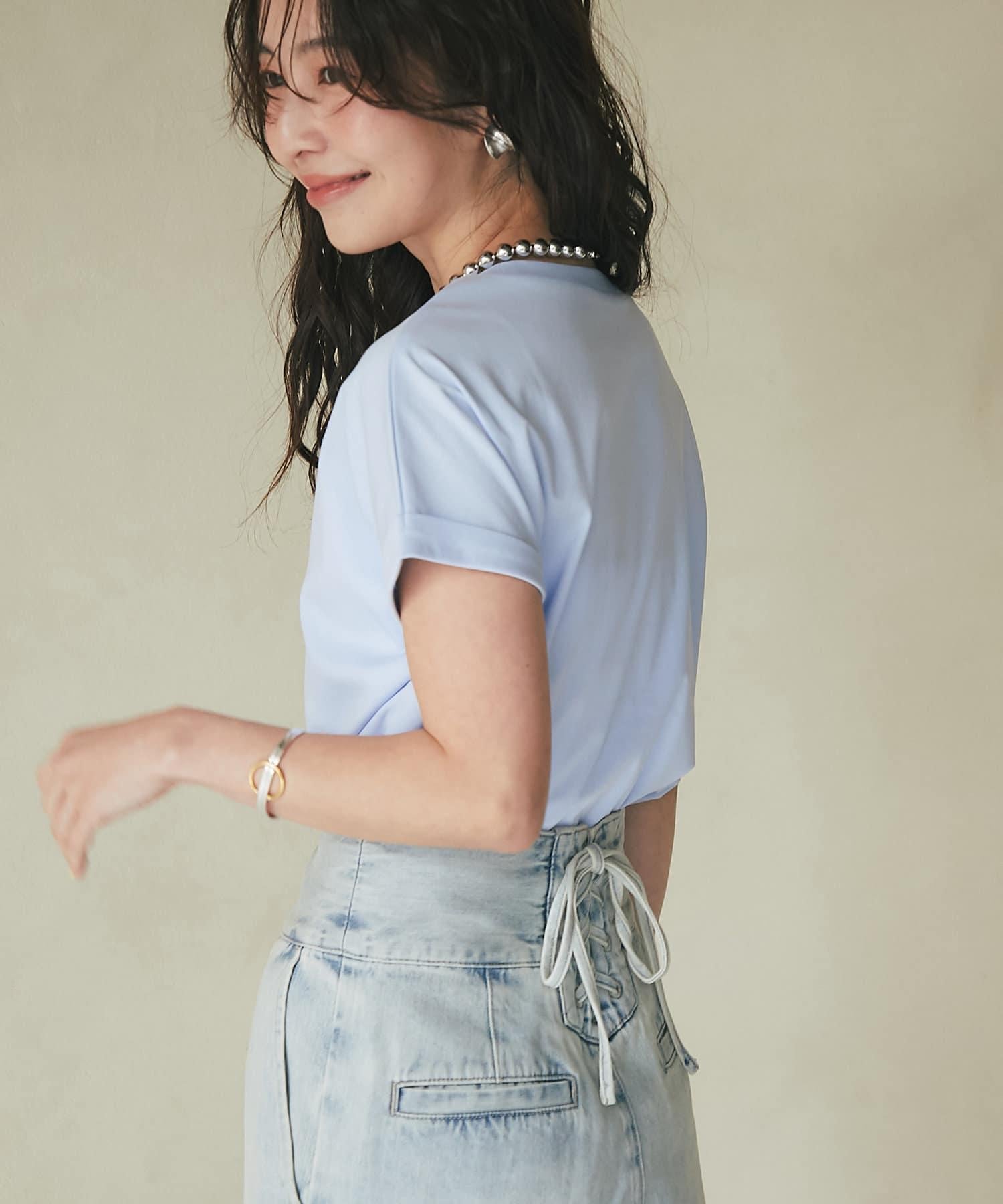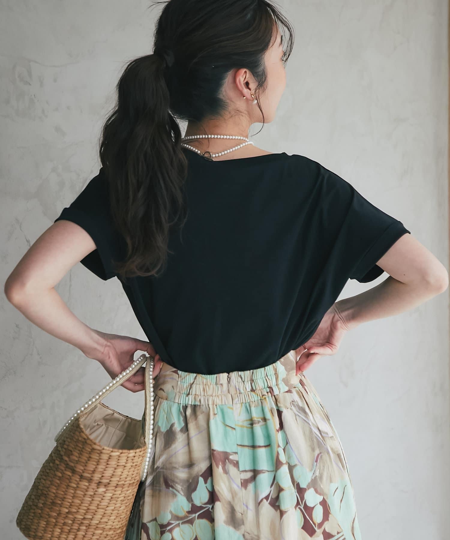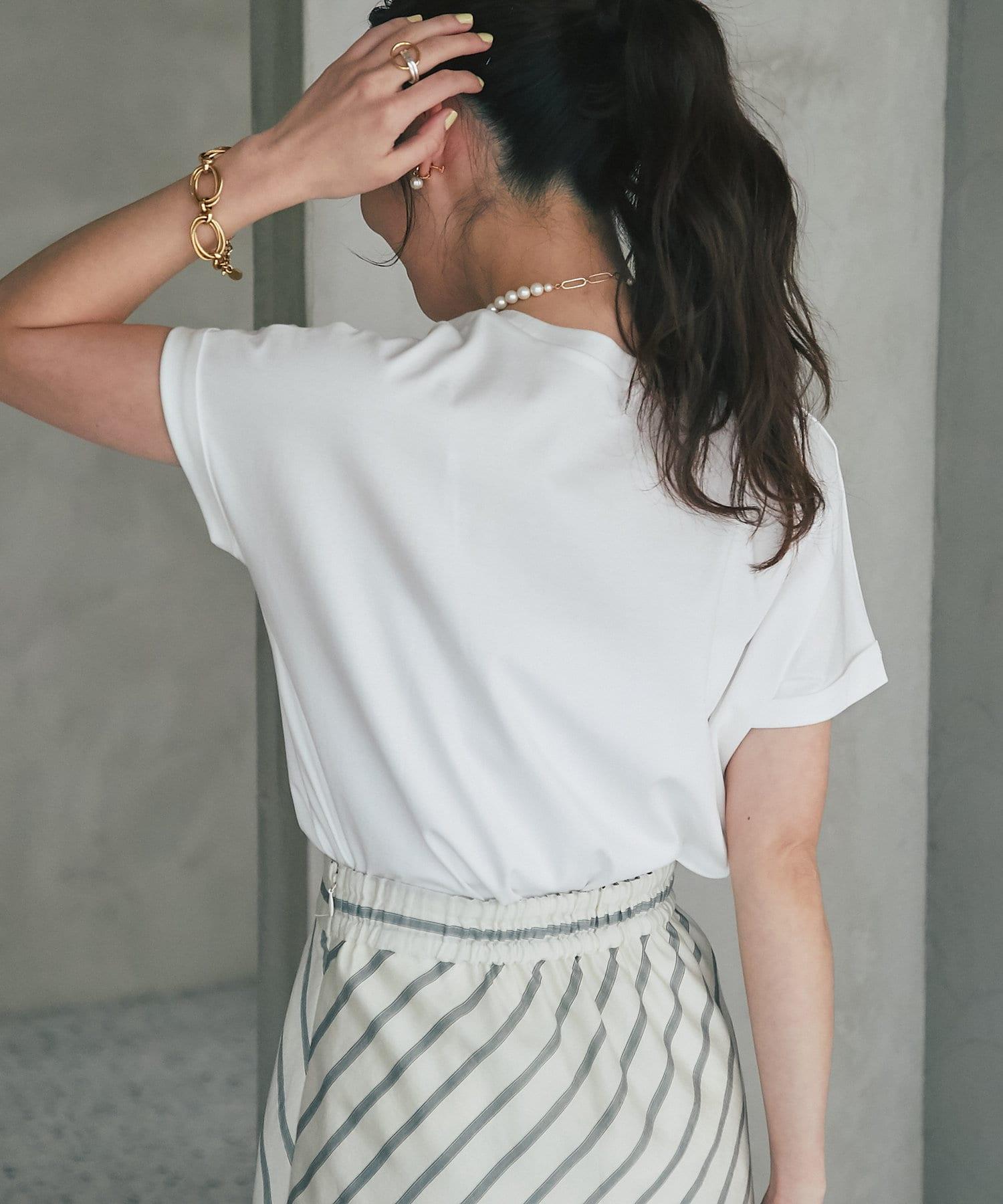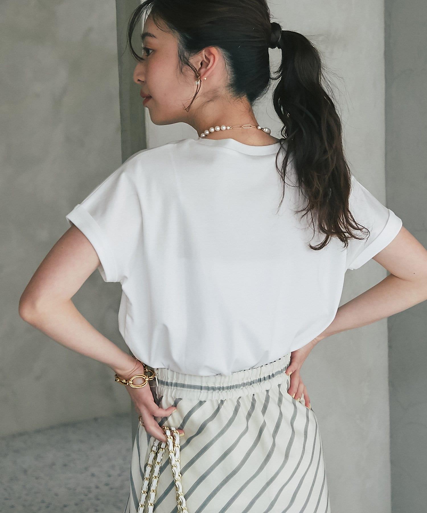 這款舒適的 T 恤採用寬鬆、休閒的剪裁和縫製,廓形飄逸。