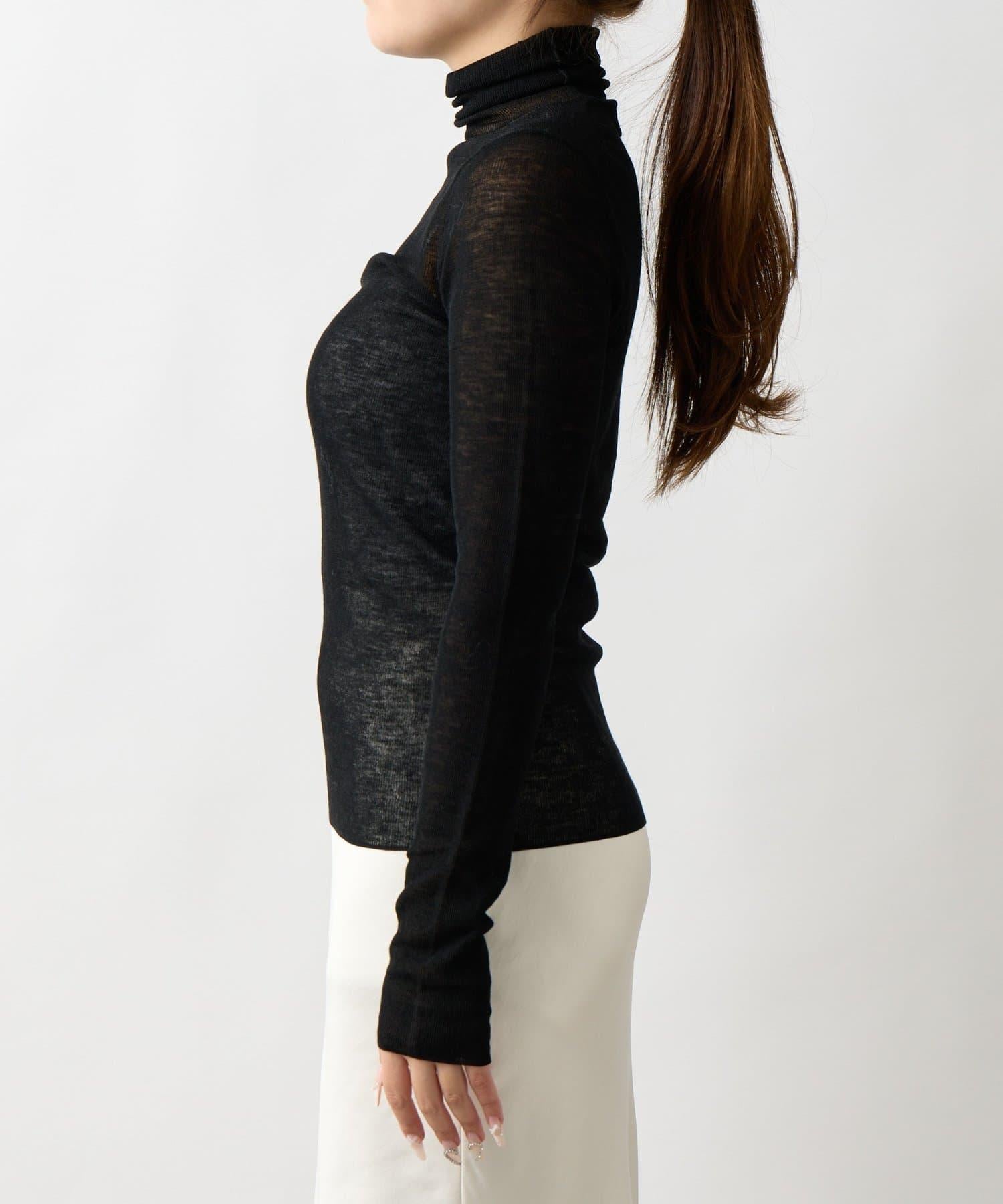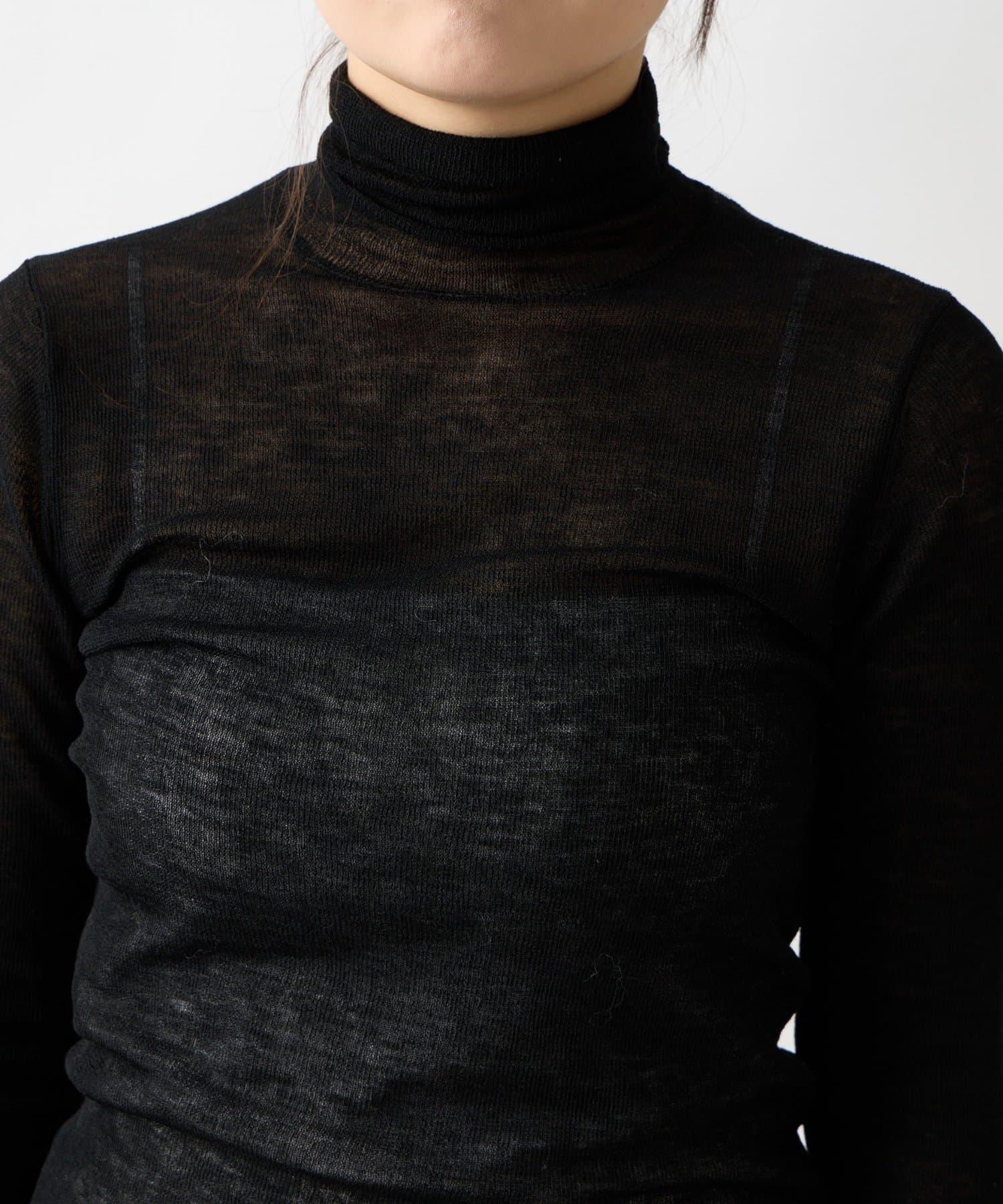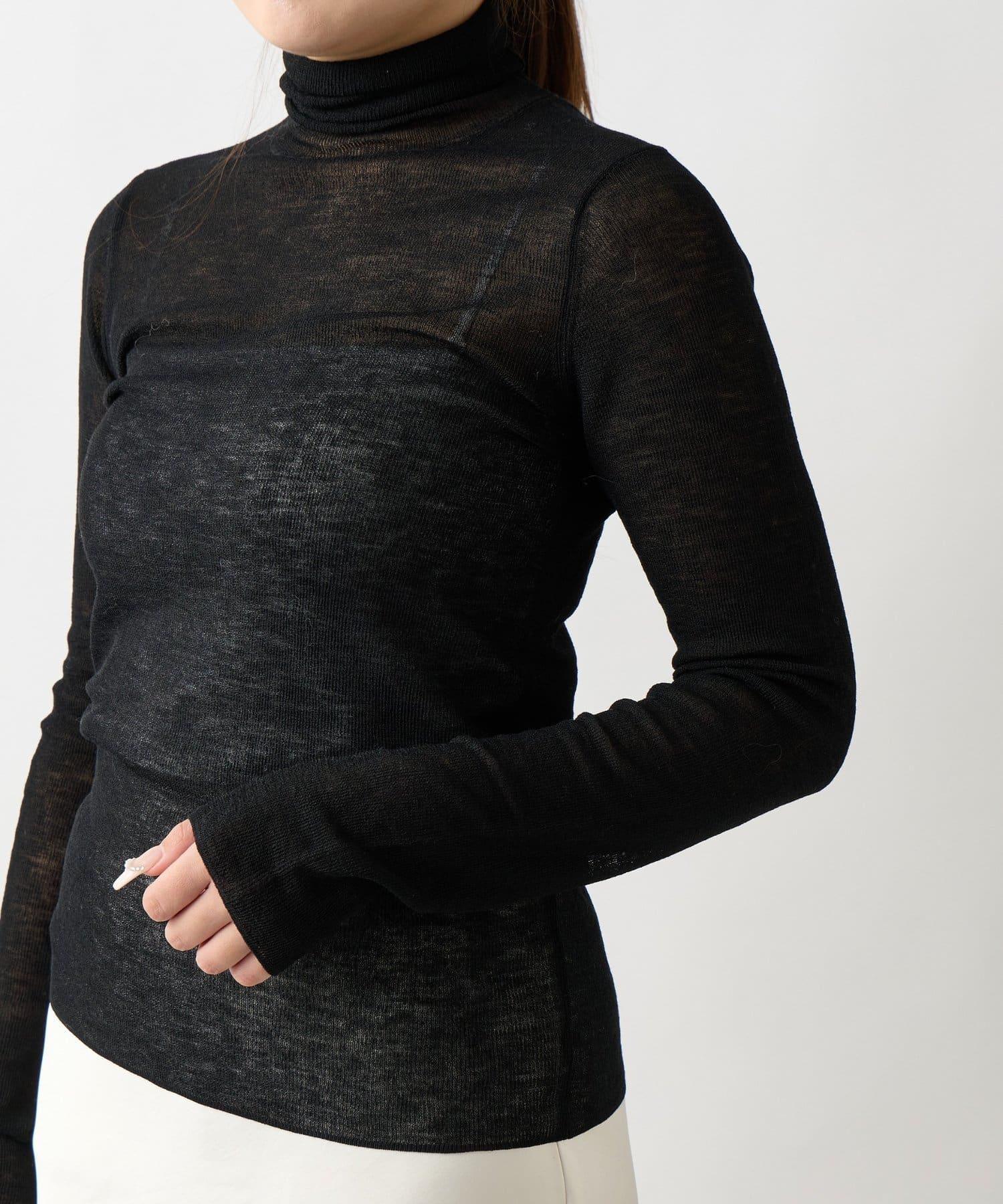 【名品・長季可穿】透視羊毛混紡羅紋高領針織衫
