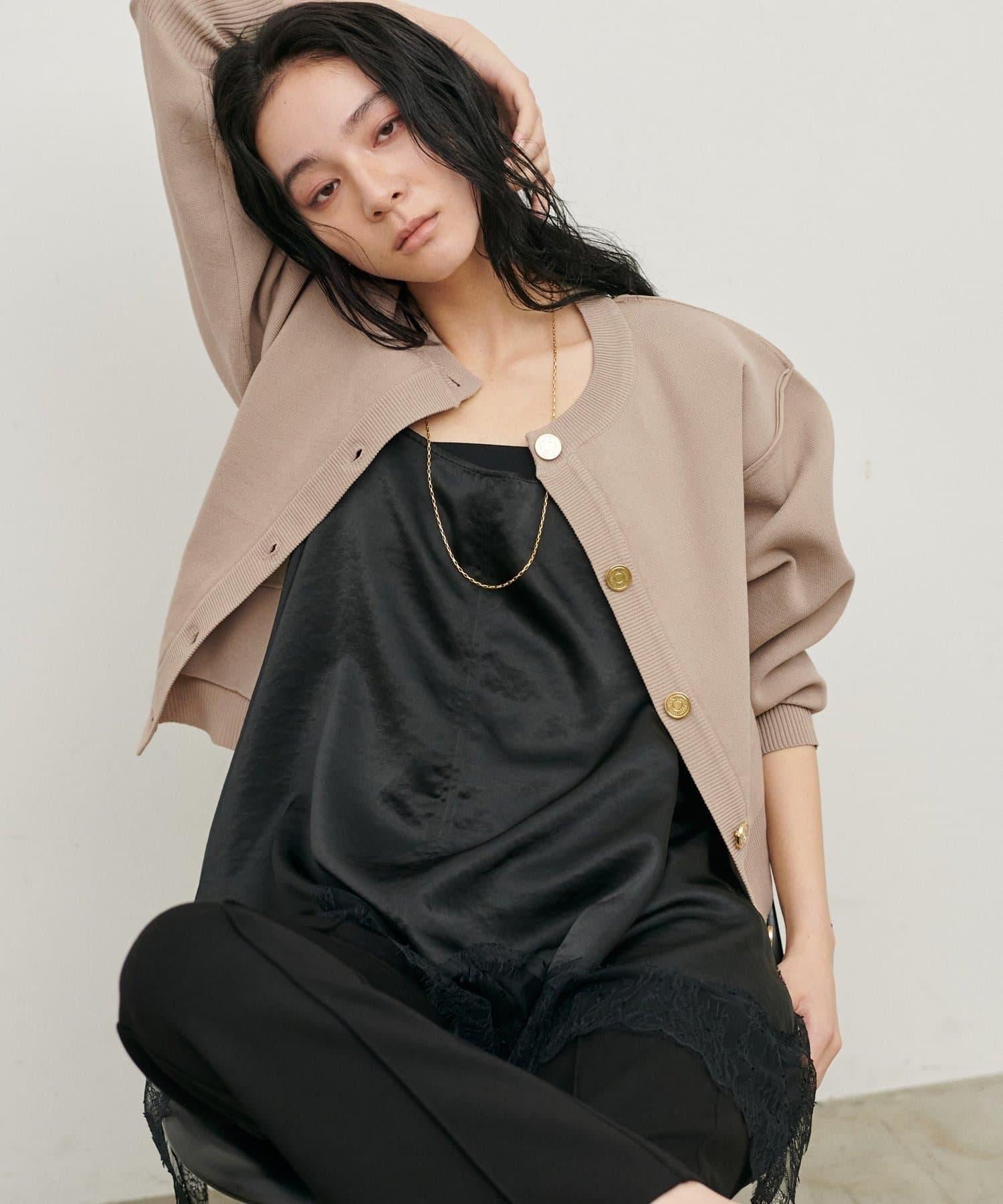 開衫採用清爽輕盈的聚酯針織面料製成。