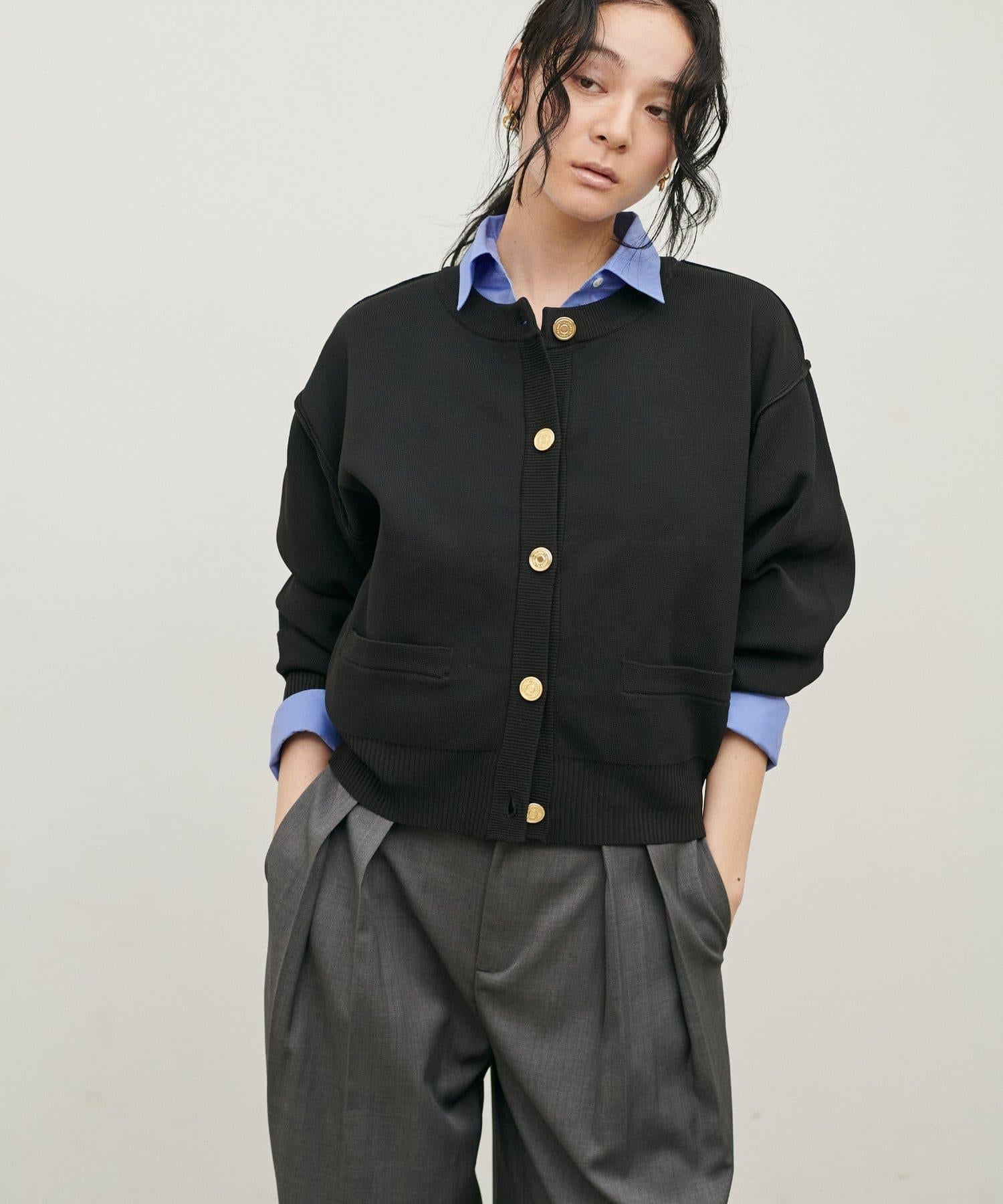 金色紐扣徽標聚酯針織開衫