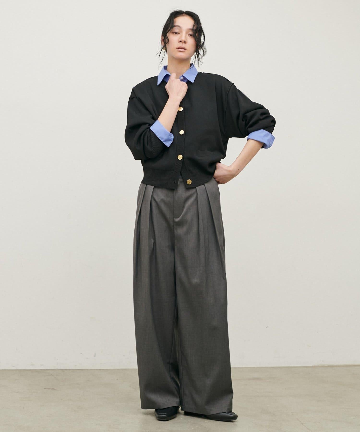 建議將紐扣打開單穿,使其看起來寬鬆。
