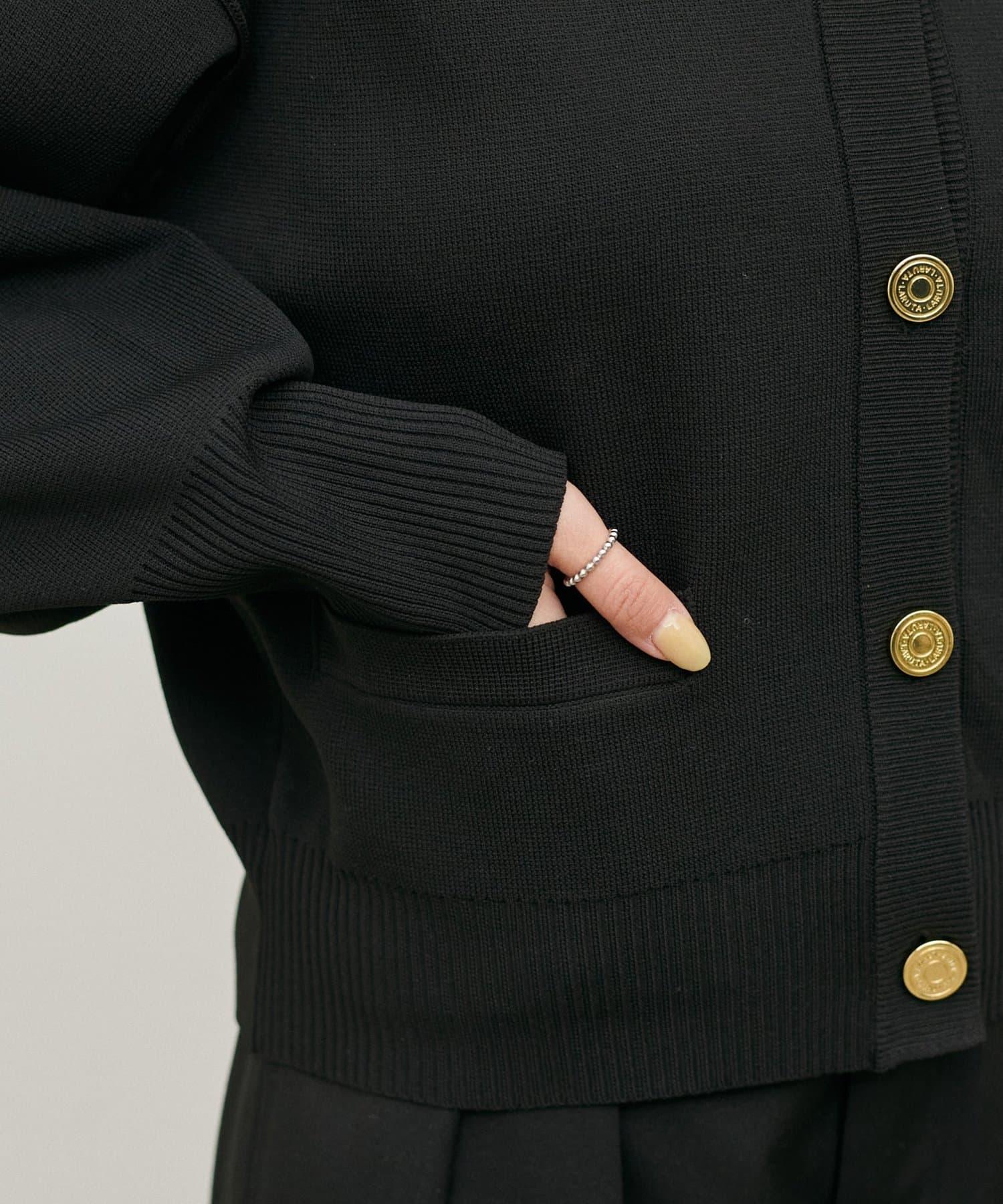 LARUTA 徽標隱藏在金色紐扣上,是一款優雅的成人單品。