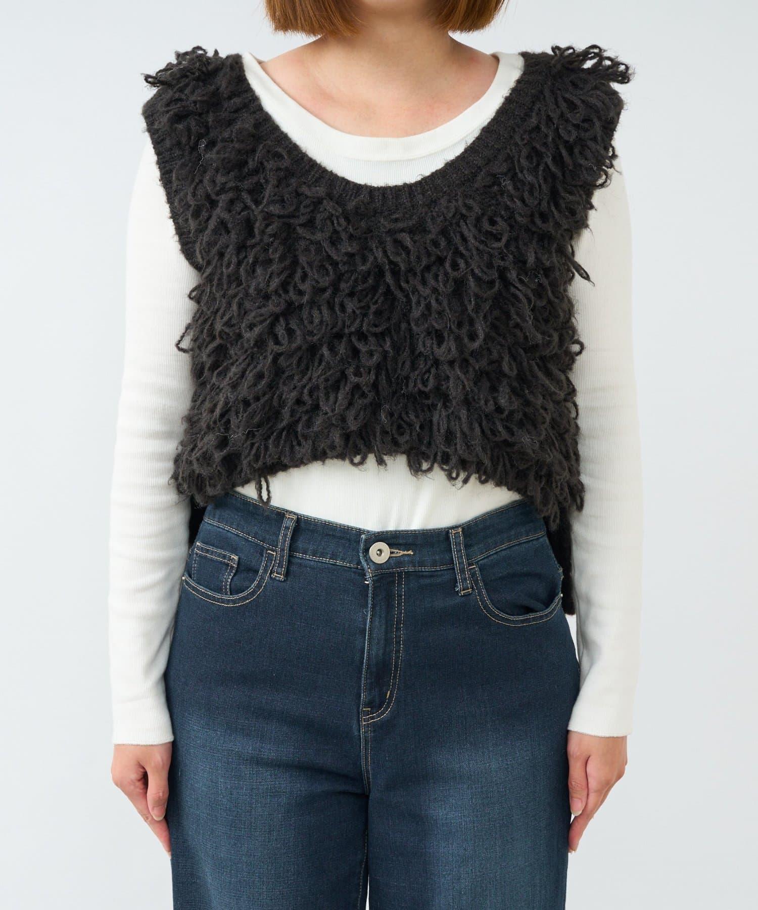 這款獨特的針織馬甲具有蓬鬆、毛茸茸的質感,可為您的日常搭配增添俏皮氣息。