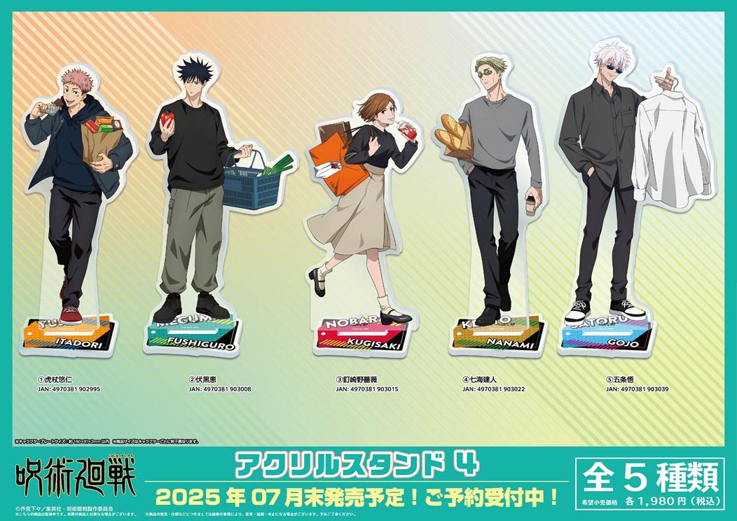 這款亞克力支架來自電視動畫片《Jutsu Kaisen》,上面印有新繪製的 "購物 "主題插圖!