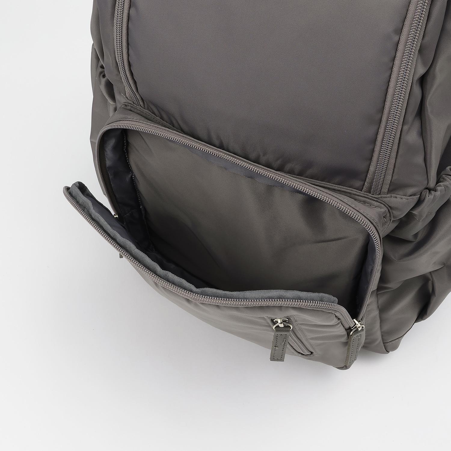 揹包配有可拆卸的肩帶、防水面料和用於固定鑰匙的 D 型罐。