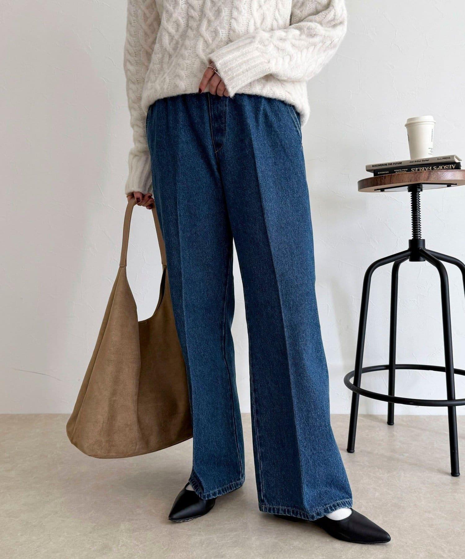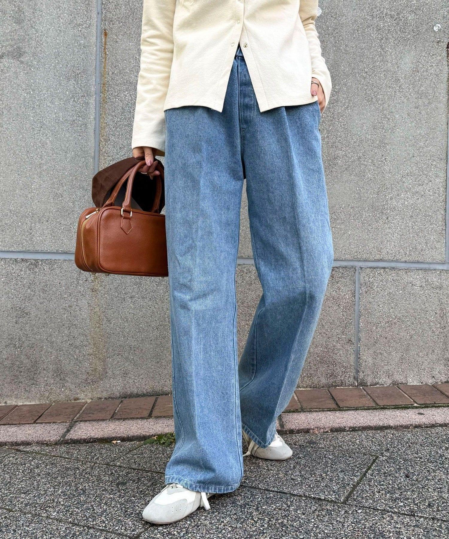 簡易的喇叭牛仔褲,可搭配長衫或針織連衣裙。