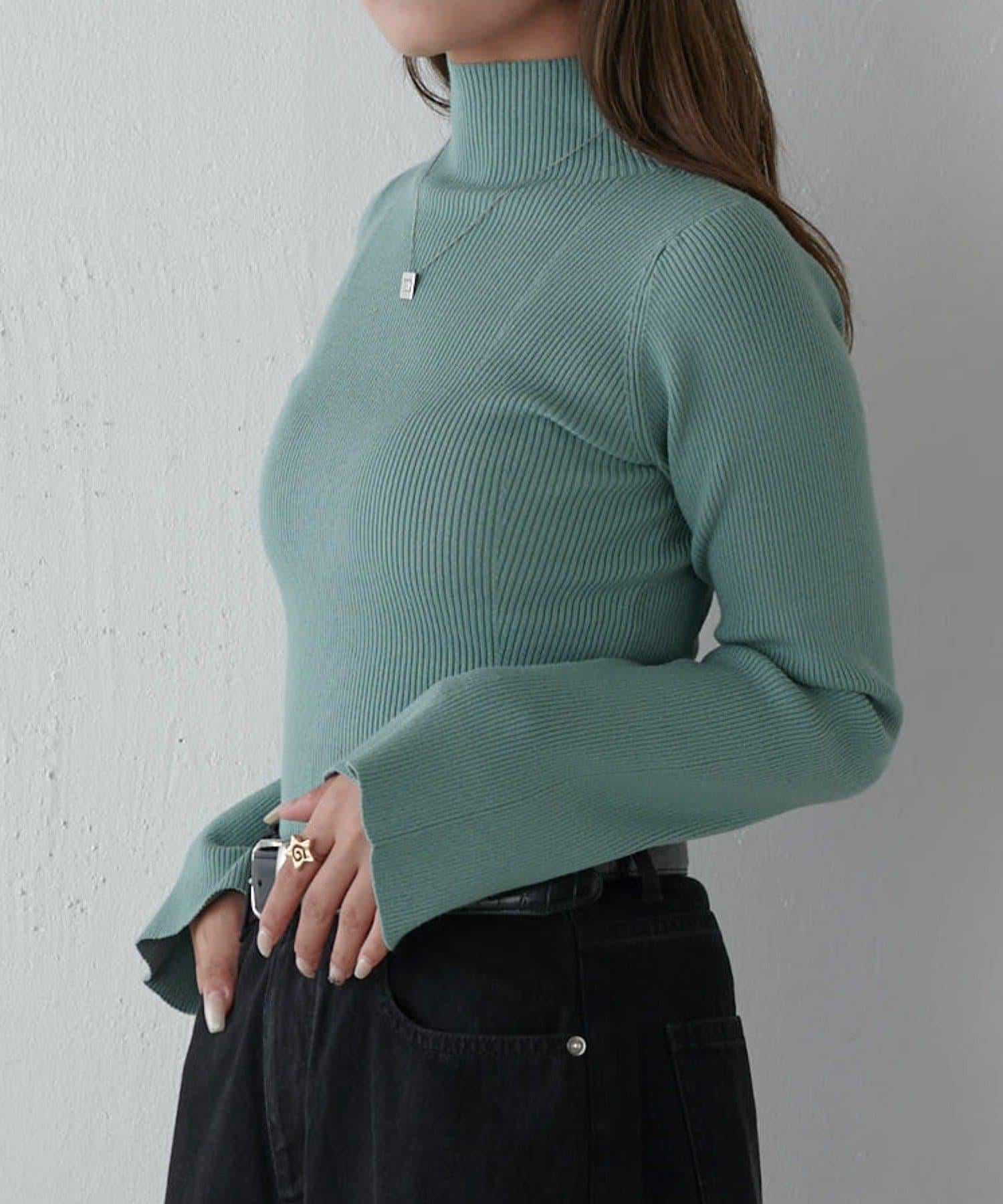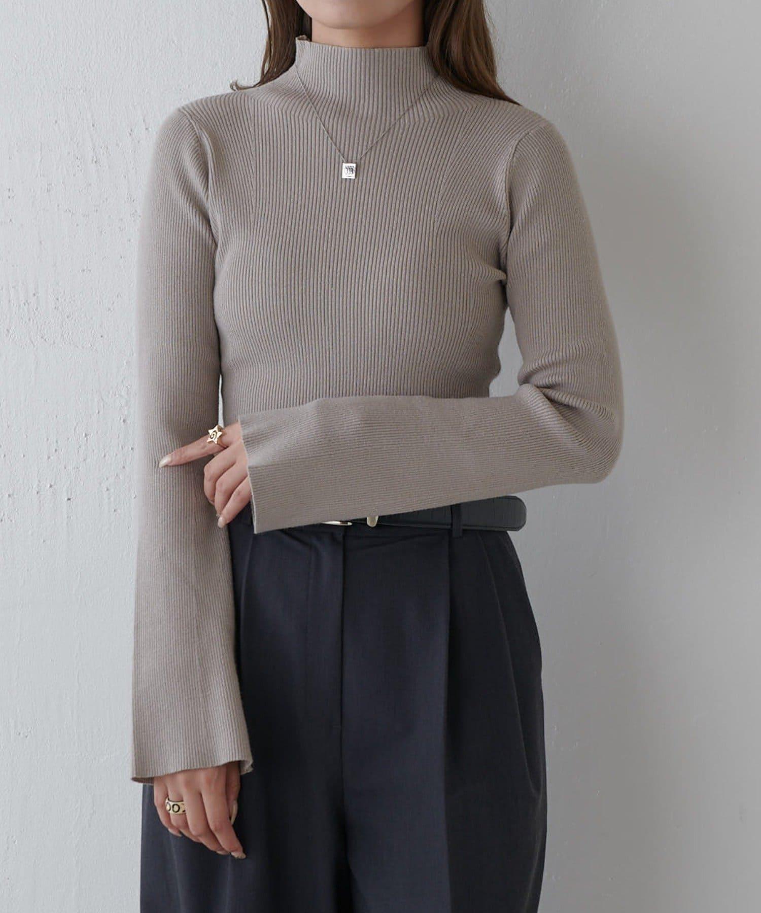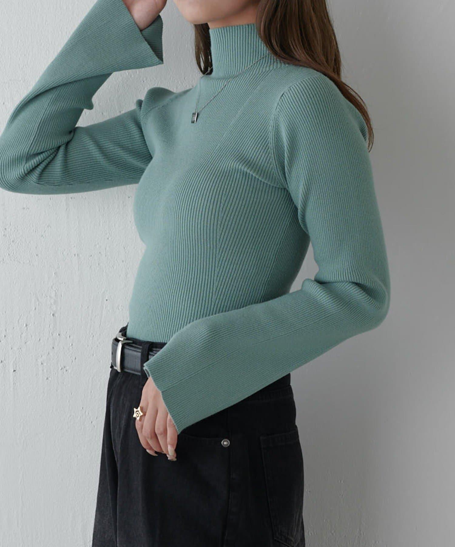 喇叭袖修身高領針織衫