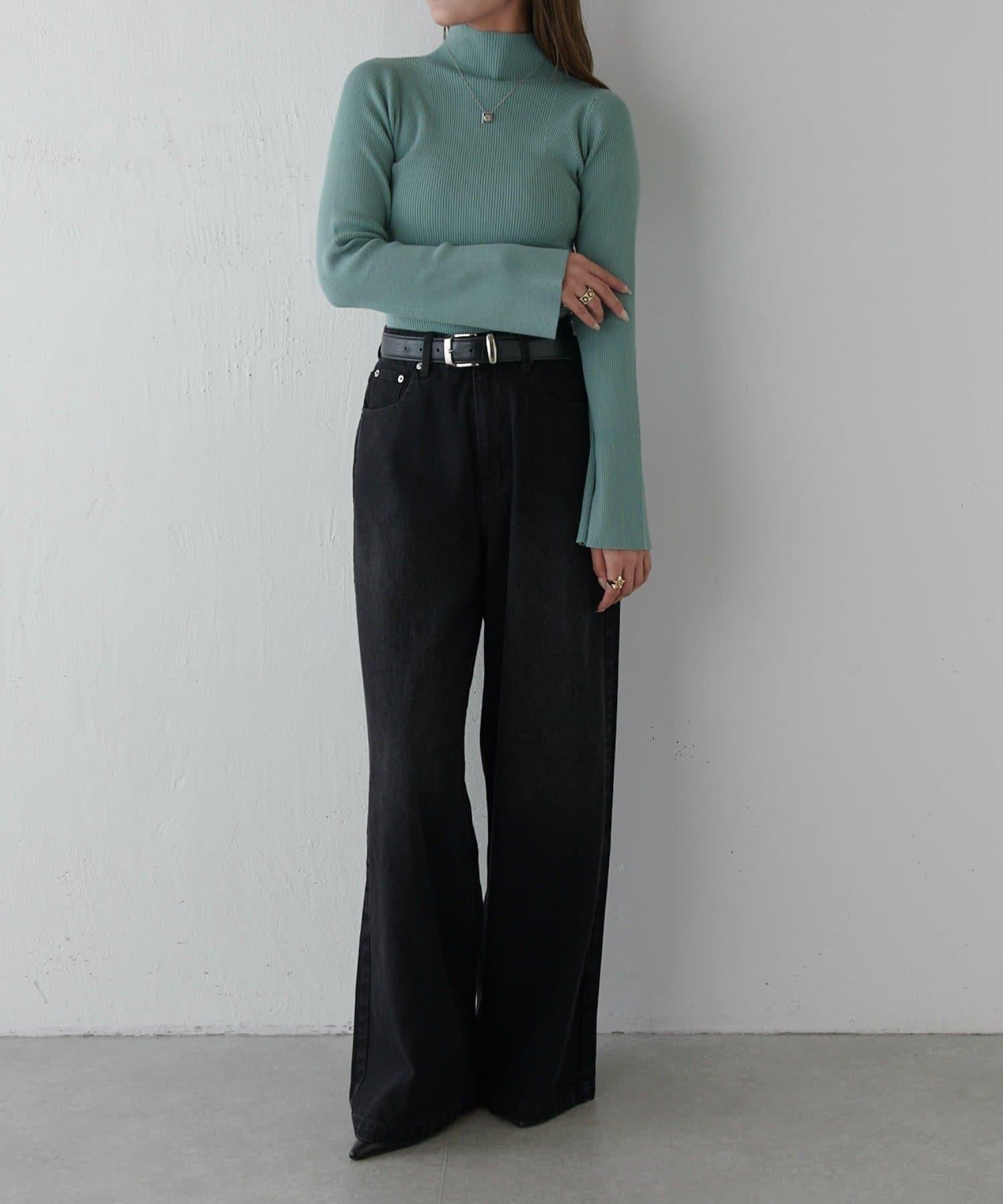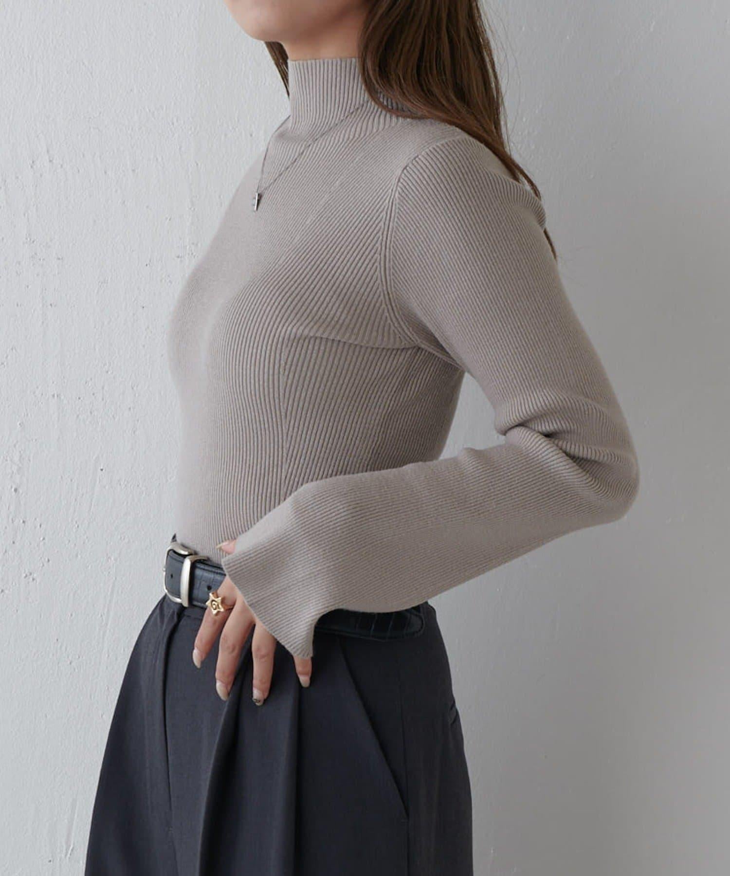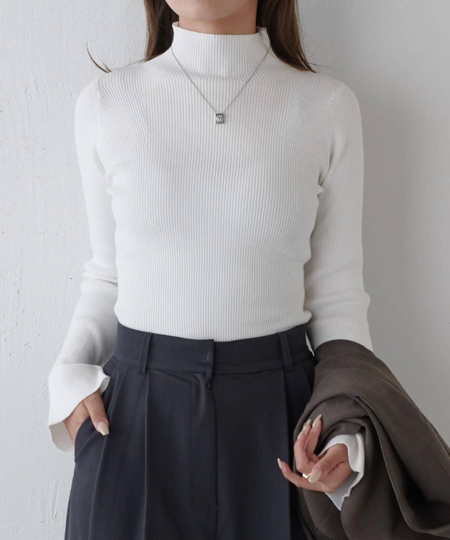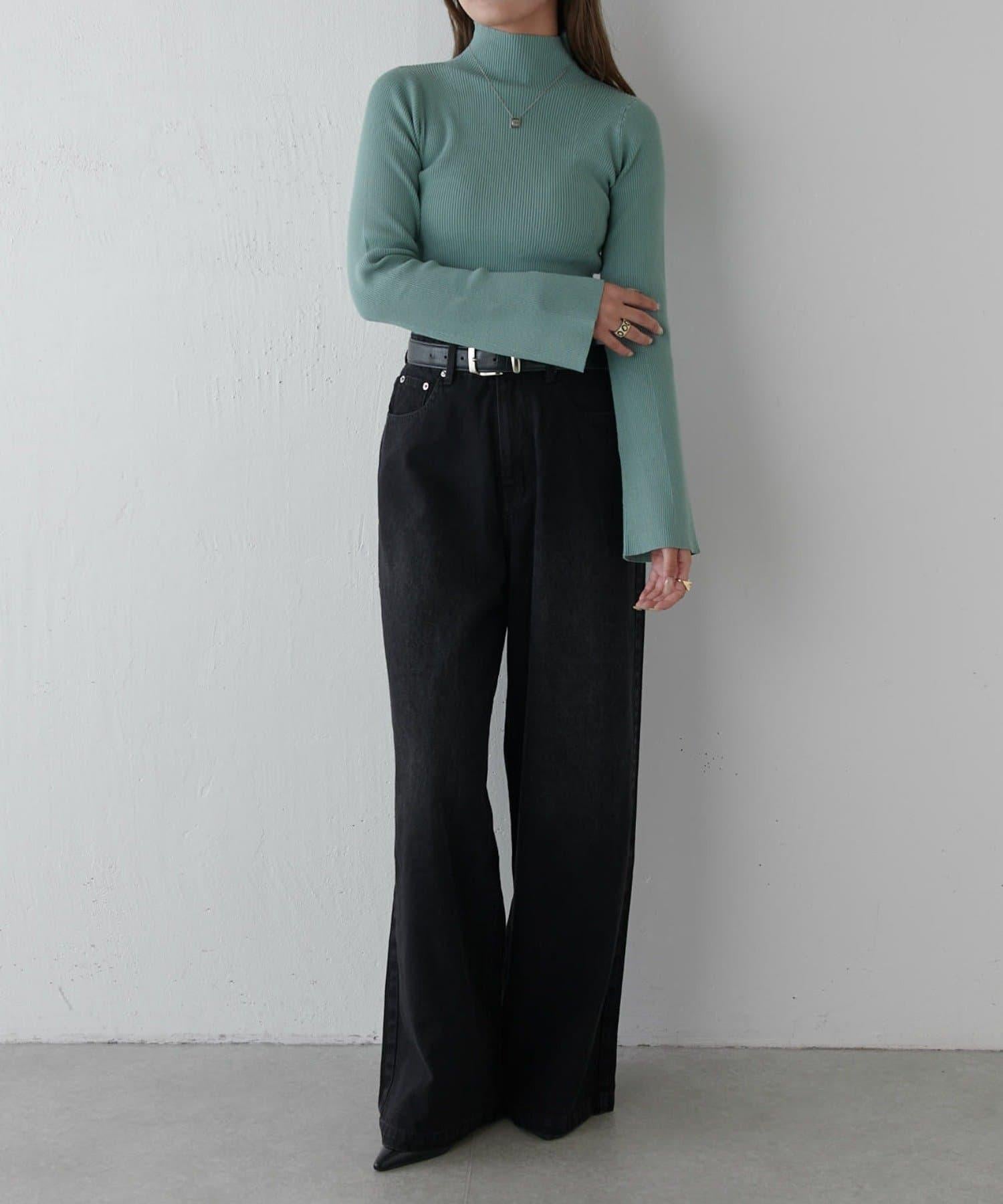 喇叭袖修身高領針織衫