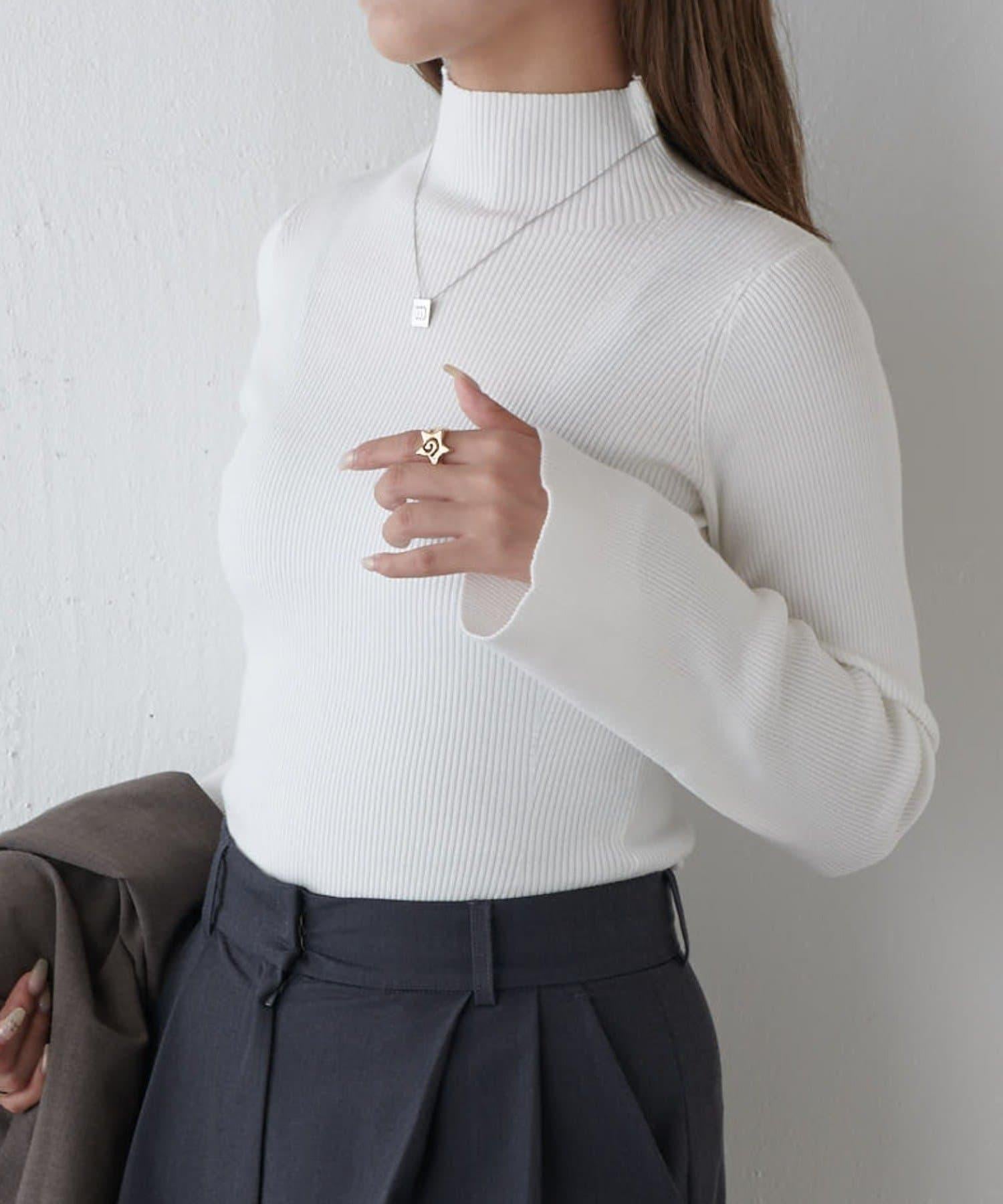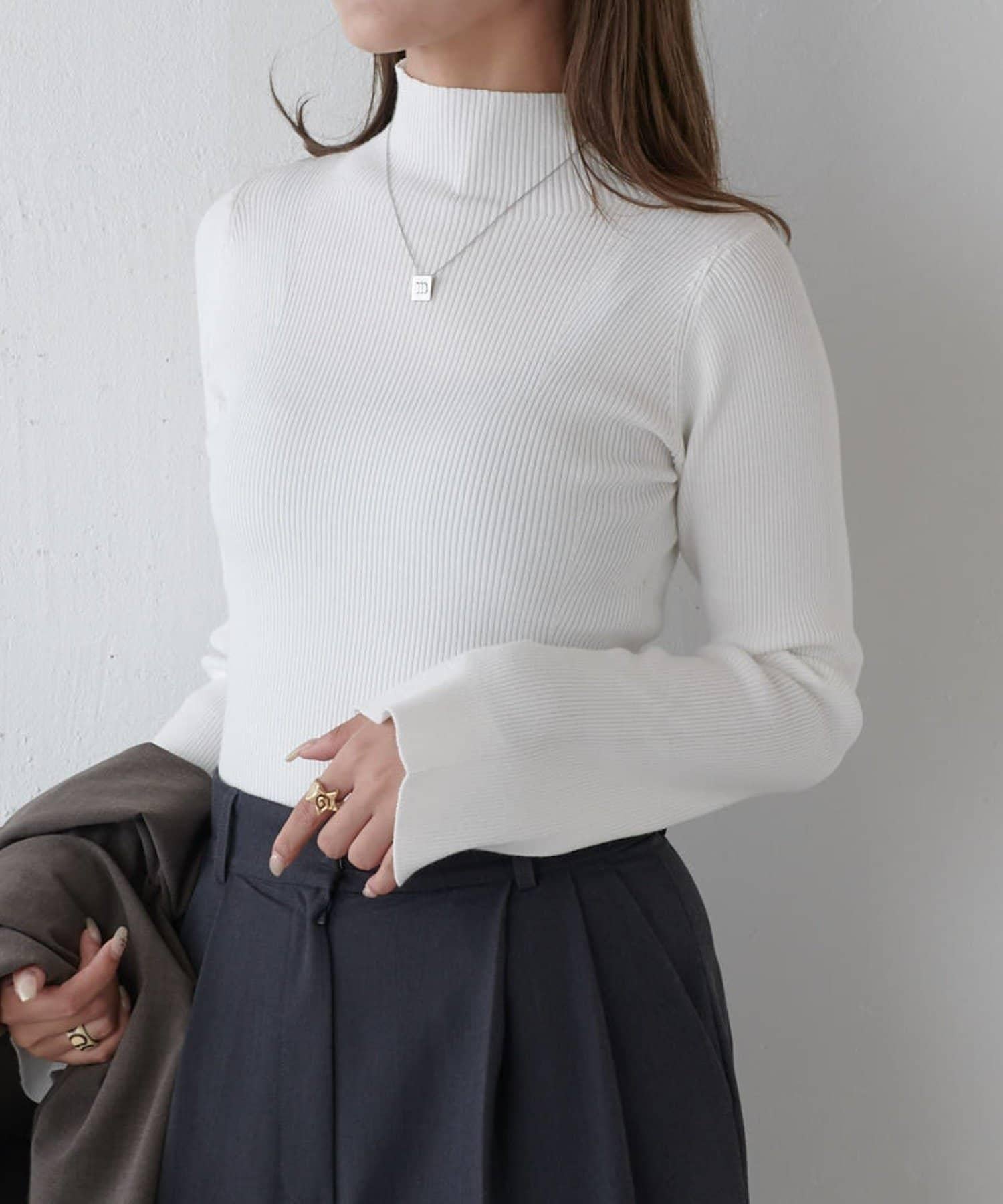 高領毛衣的長度和版型也是一大亮點,讓你擁有乾淨利落的小臉。