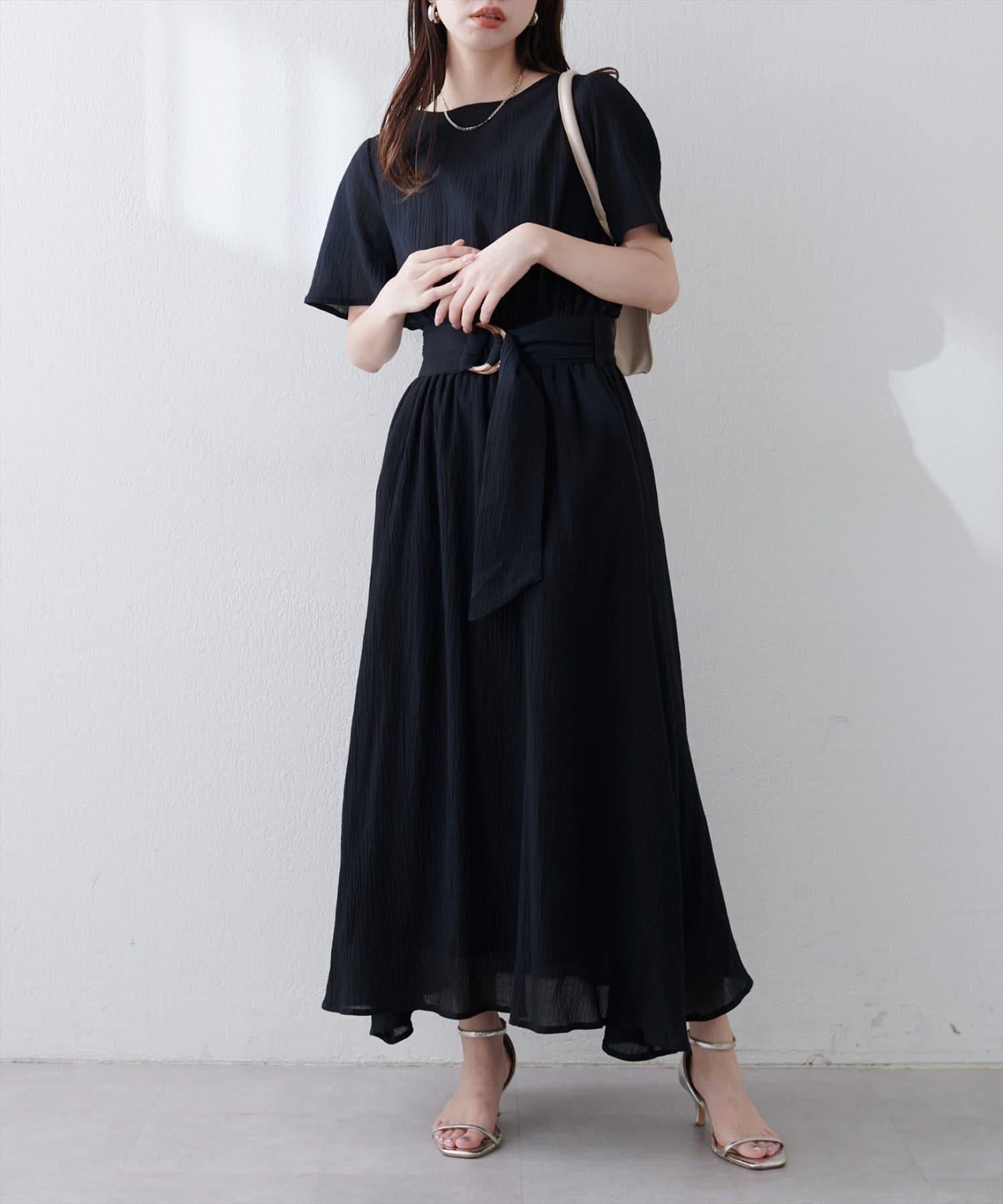 [WEB 👍] 喇叭袖粗腰帶連衣裙