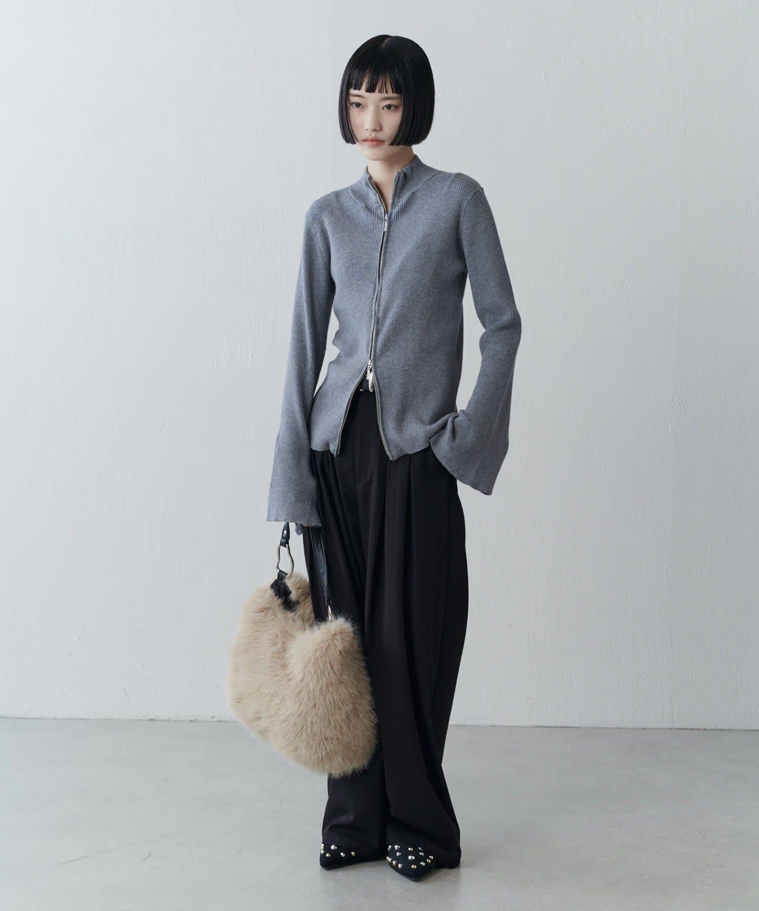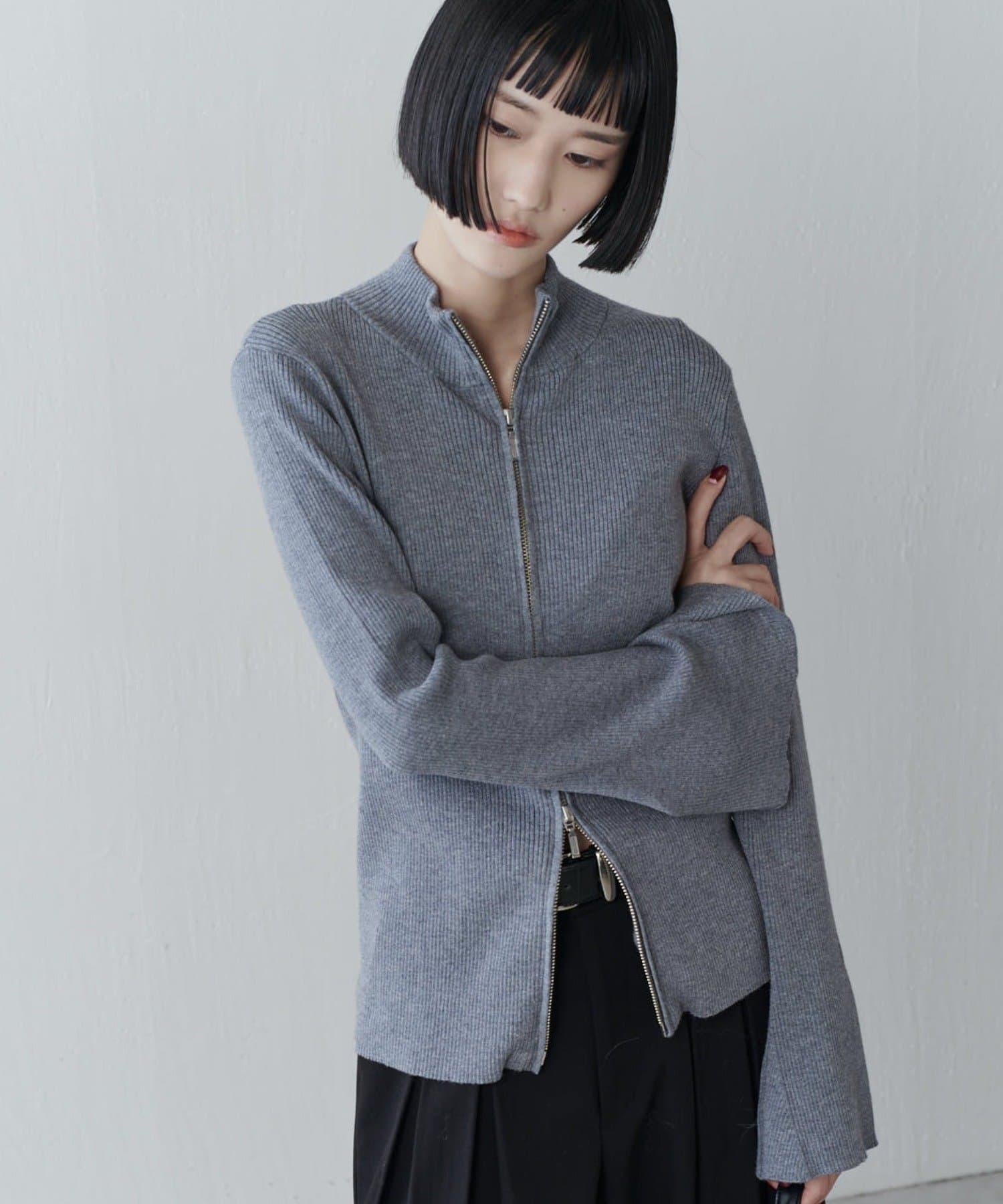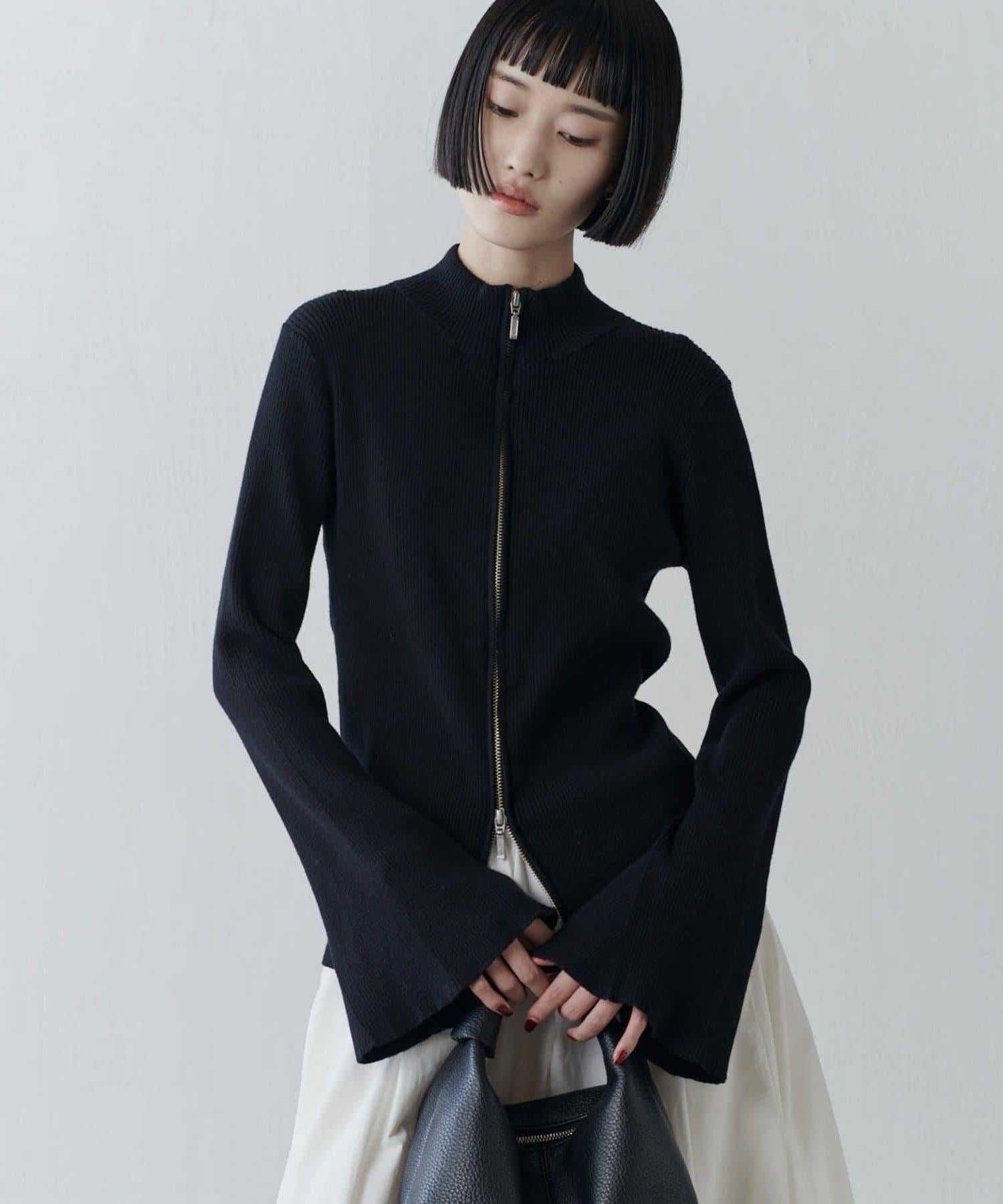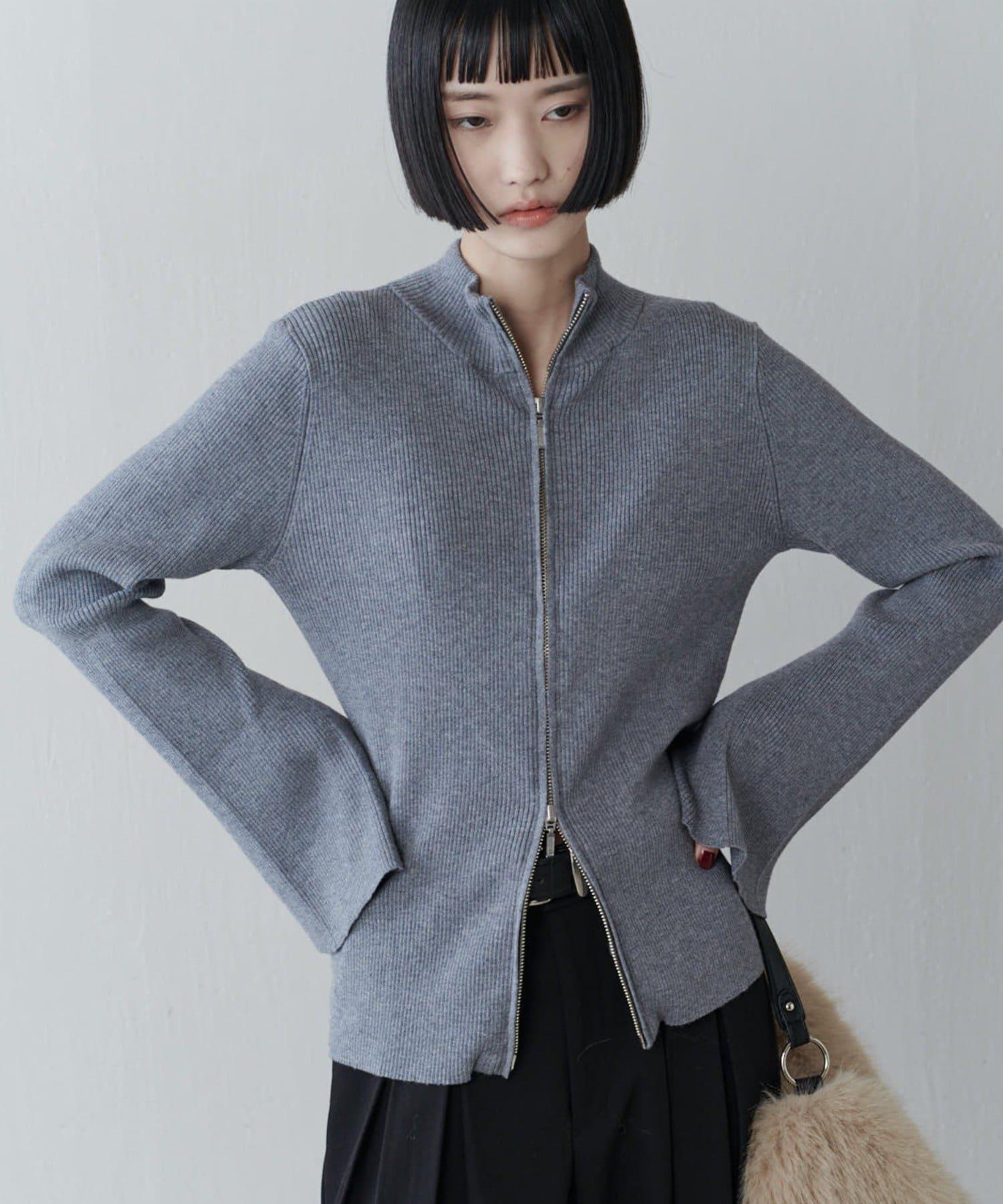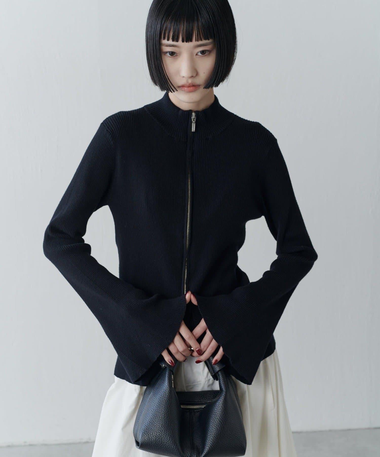 喇叭袖拉鍊套頭衫