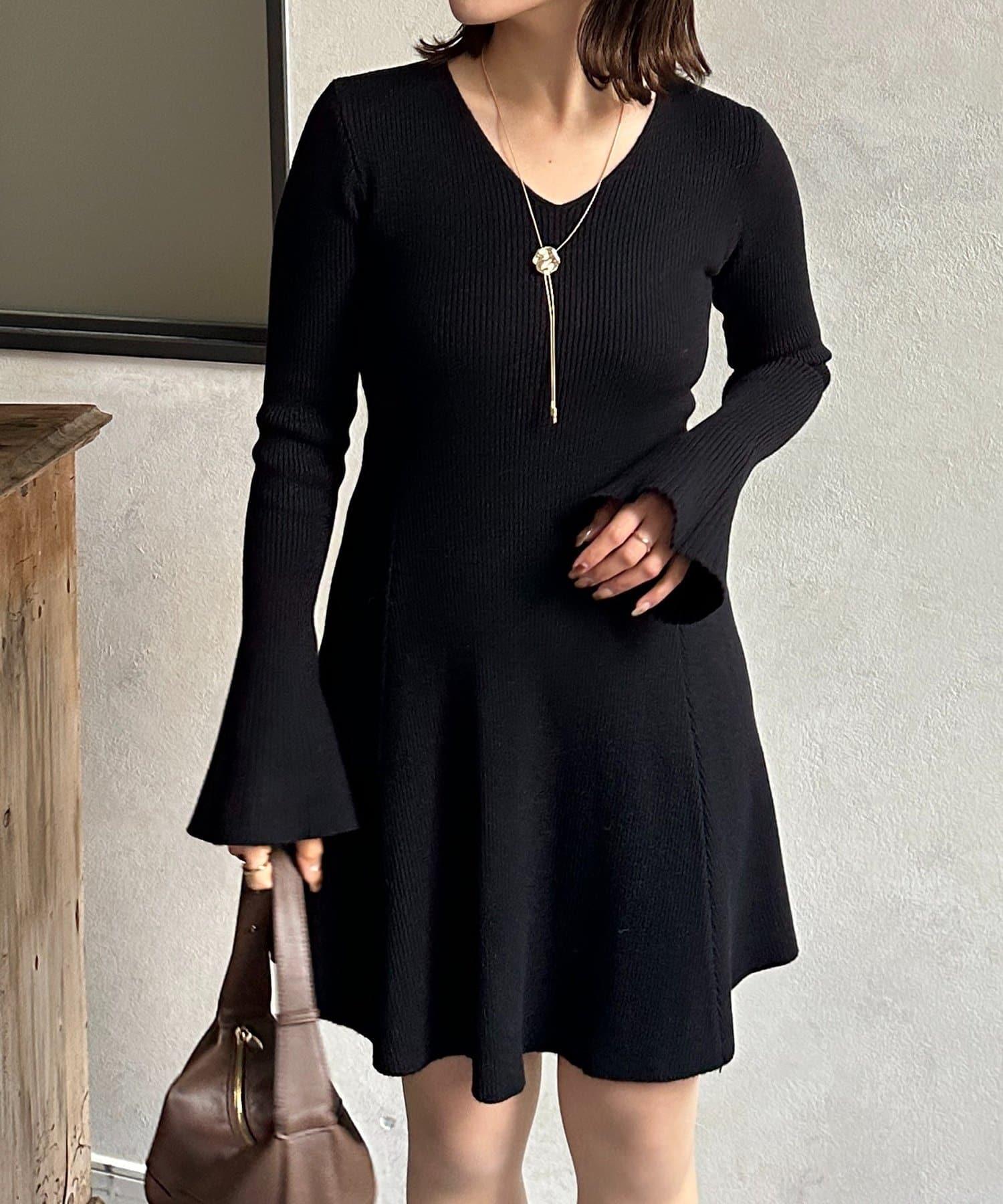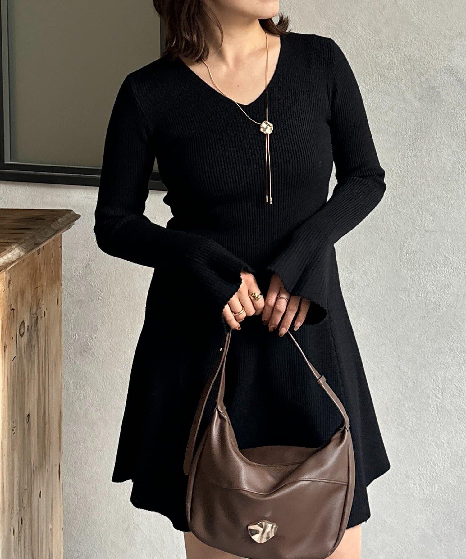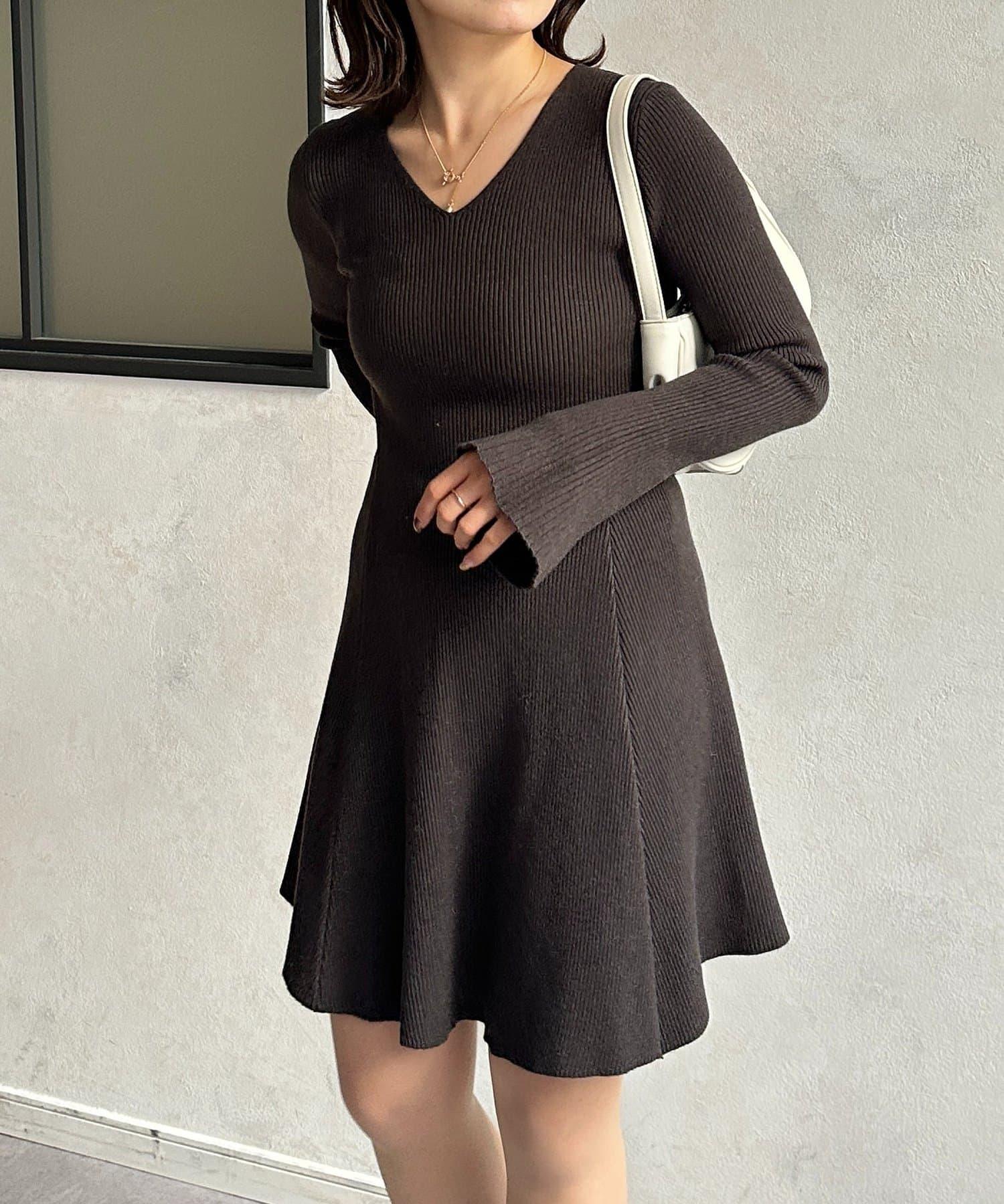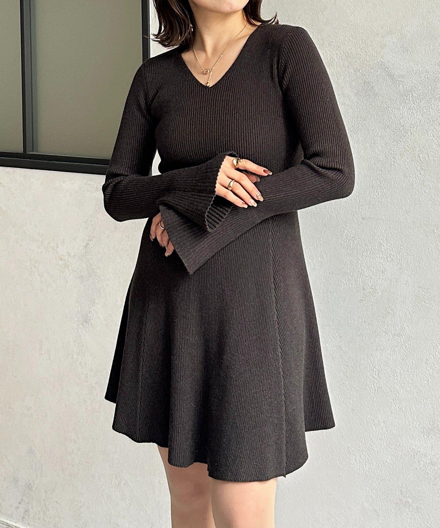 #褶皺連衣裙 #褶皺長度 #羅紋針織 #喇叭形