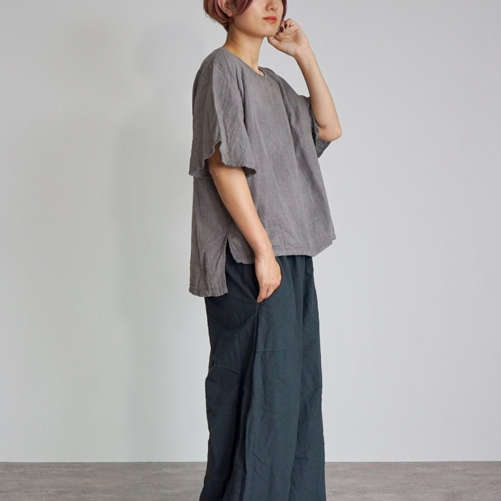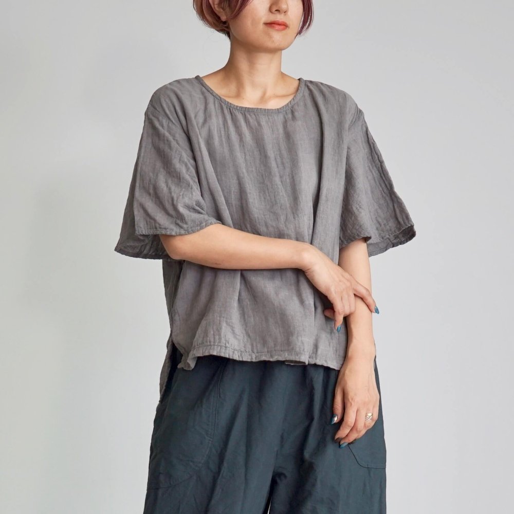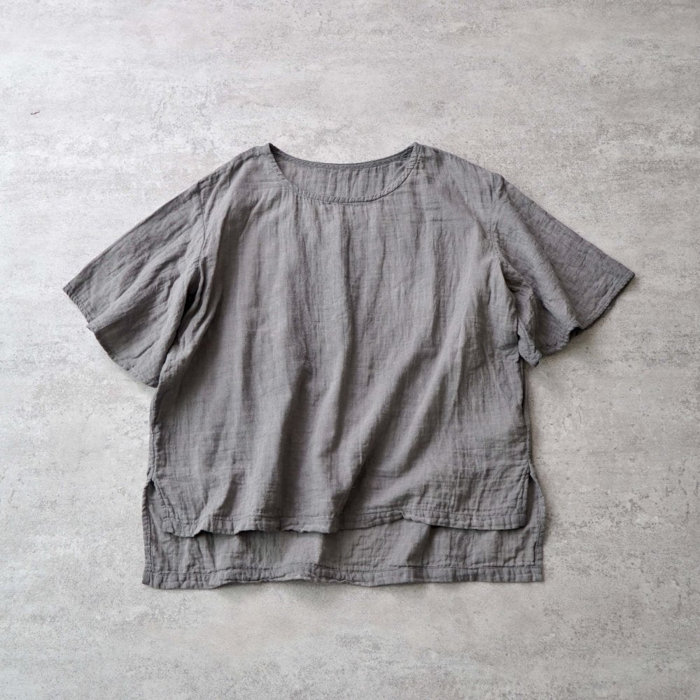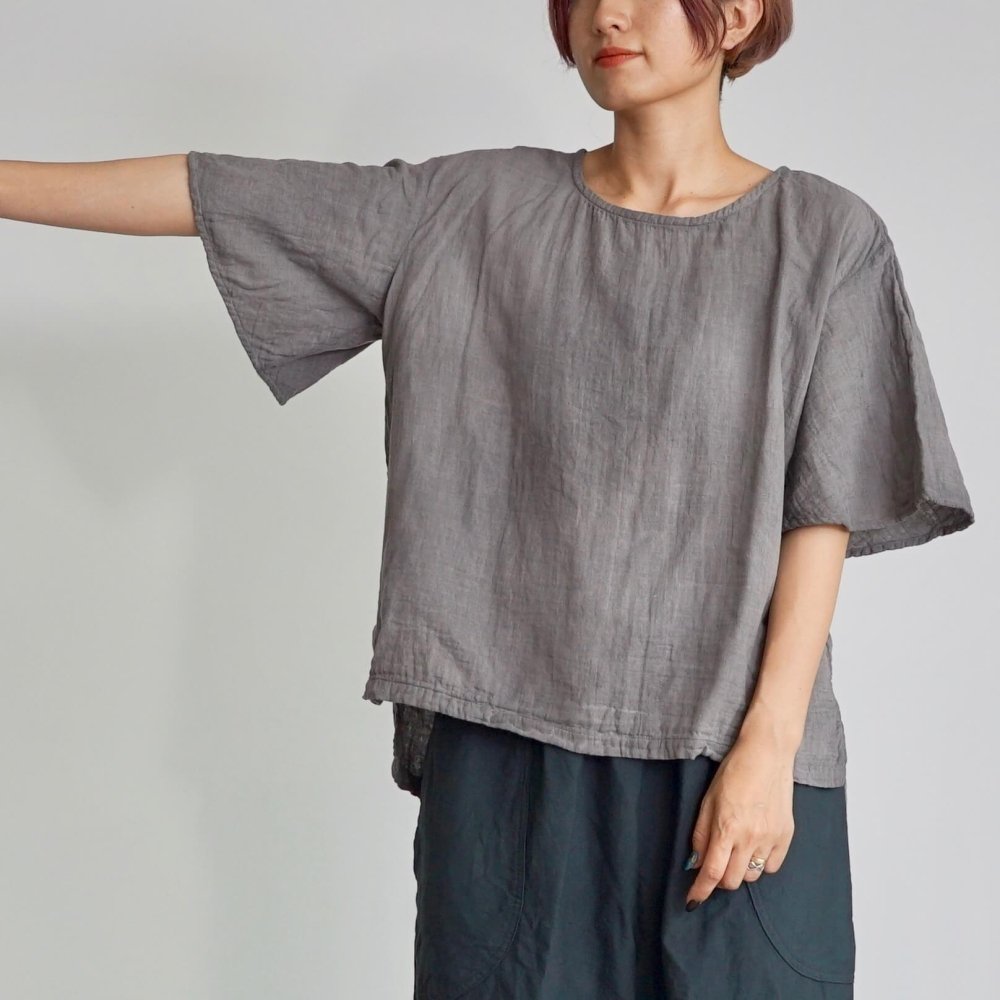喇叭袖 紗T恤/灰色/三河織物雙層紗
