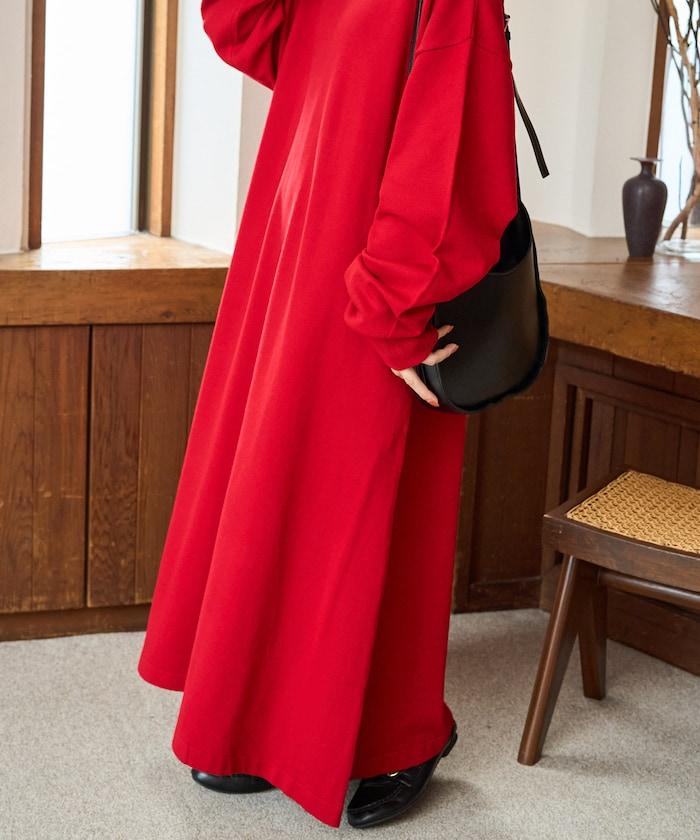 A 字型喇叭連衣裙,向下擺柔和地展開。
