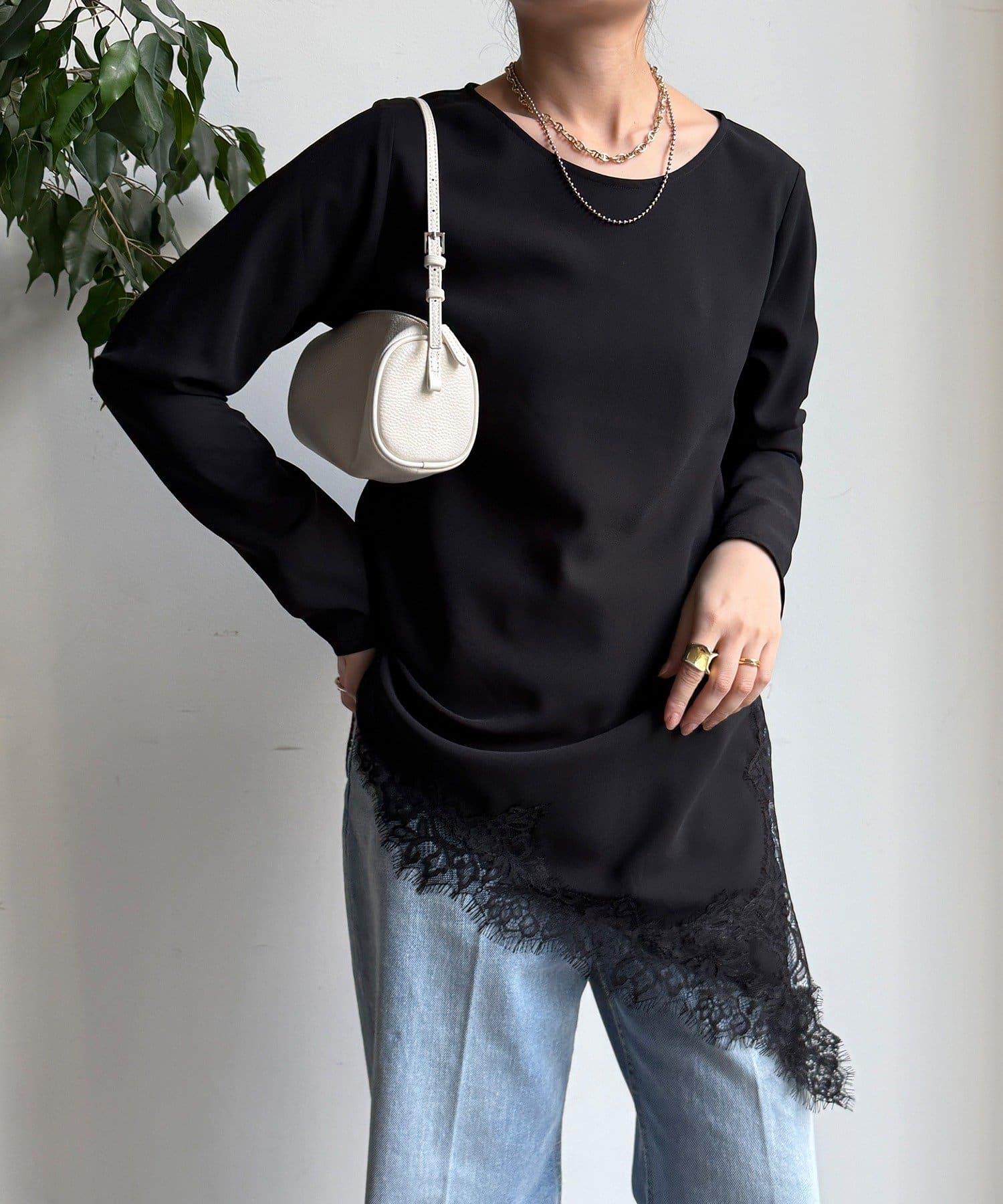 非常受歡迎的單品!不對稱蕾絲長袖吊帶衫!