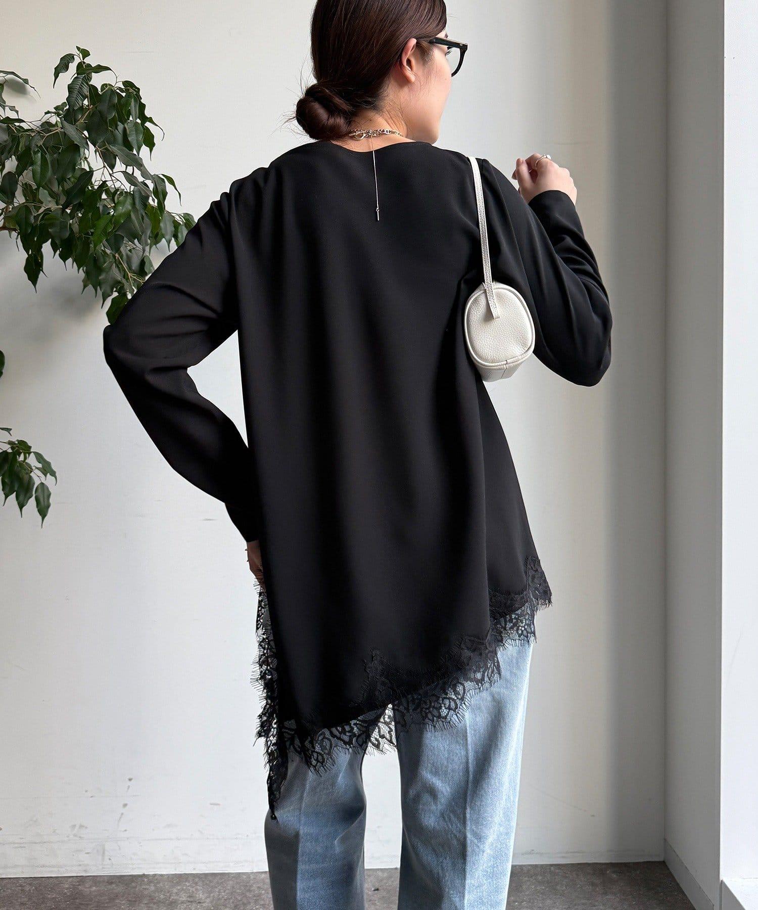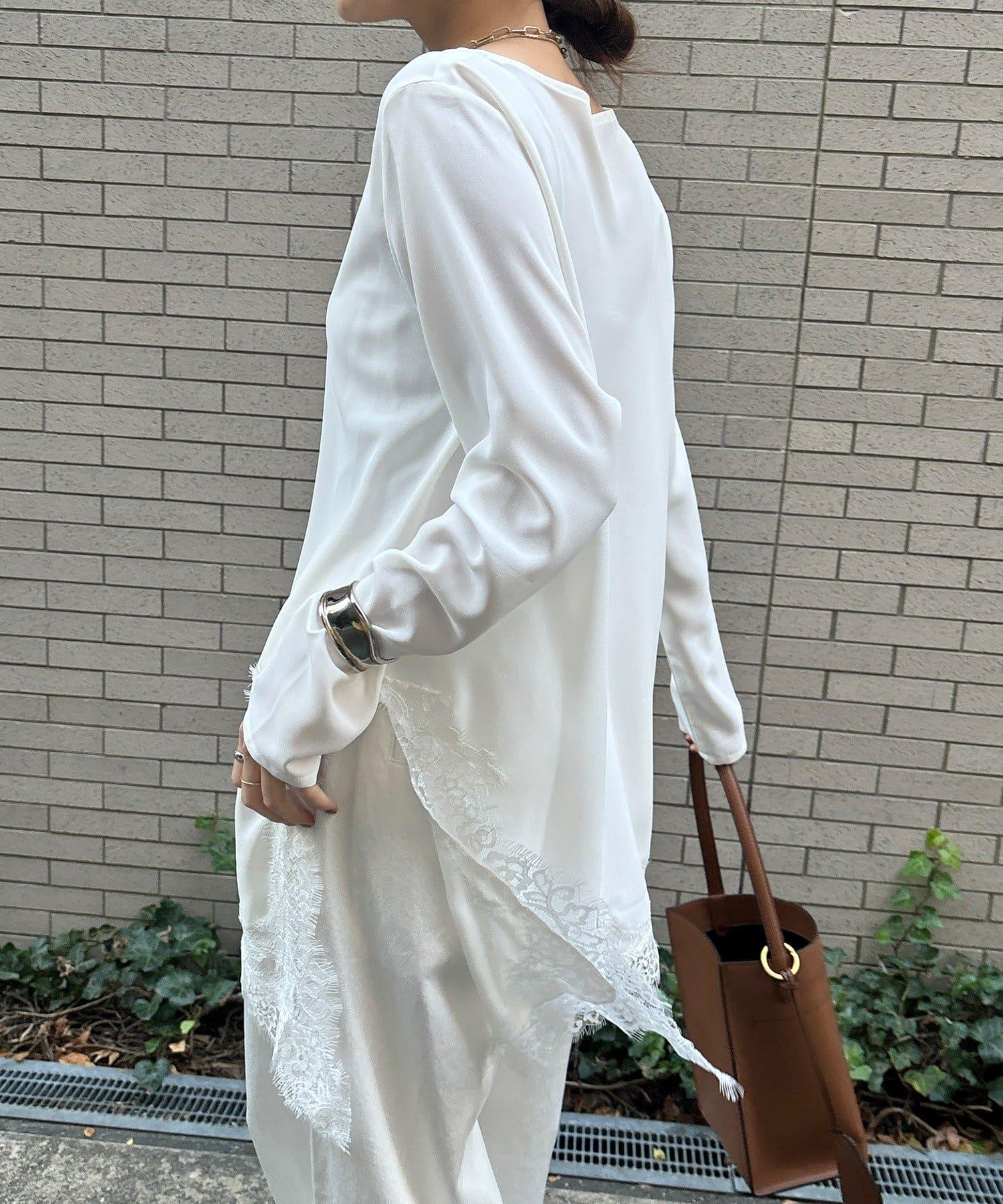 此外,通過在下襬加入不對稱的蕾絲設計,使其成為疊穿時的點睛之筆。