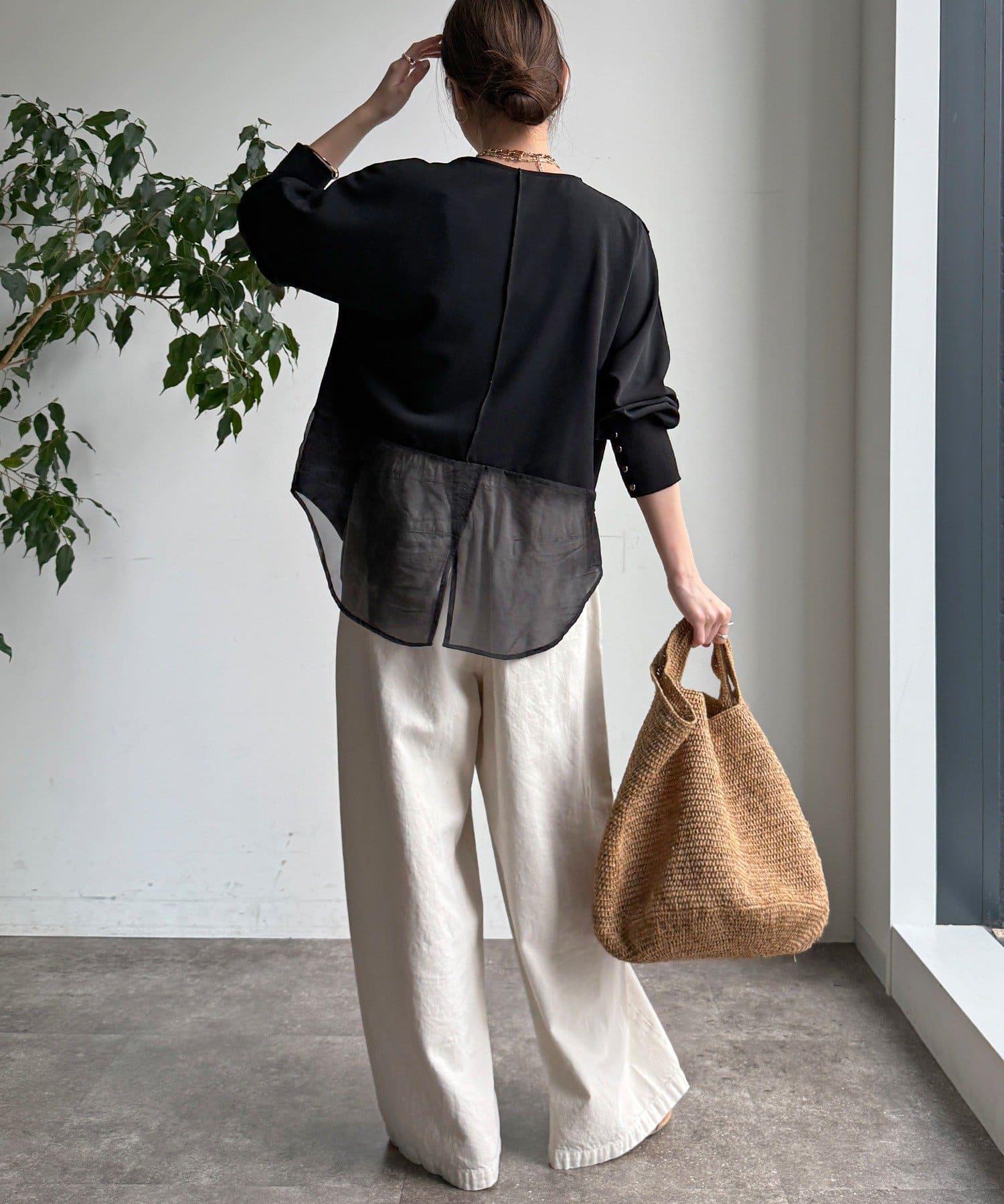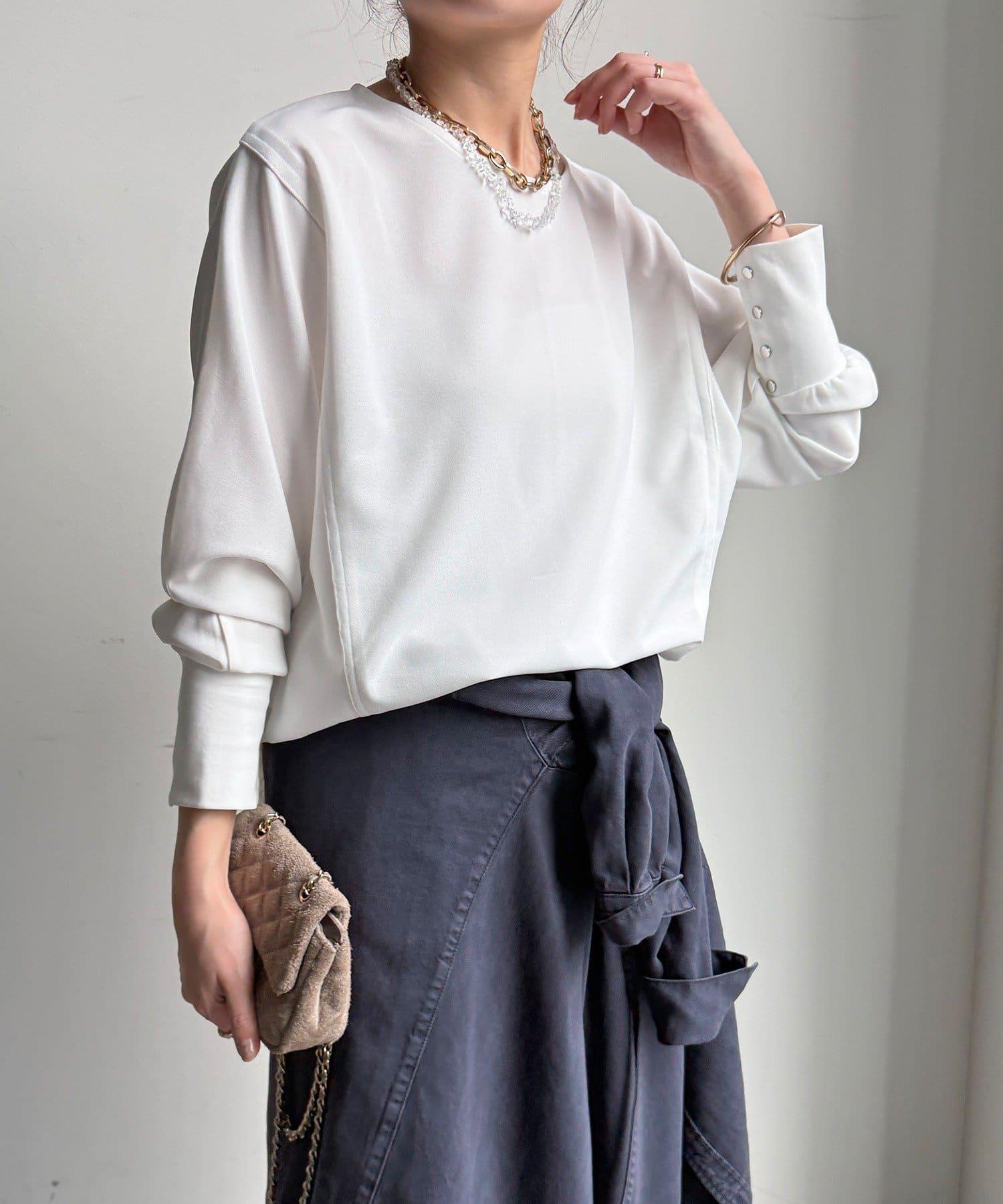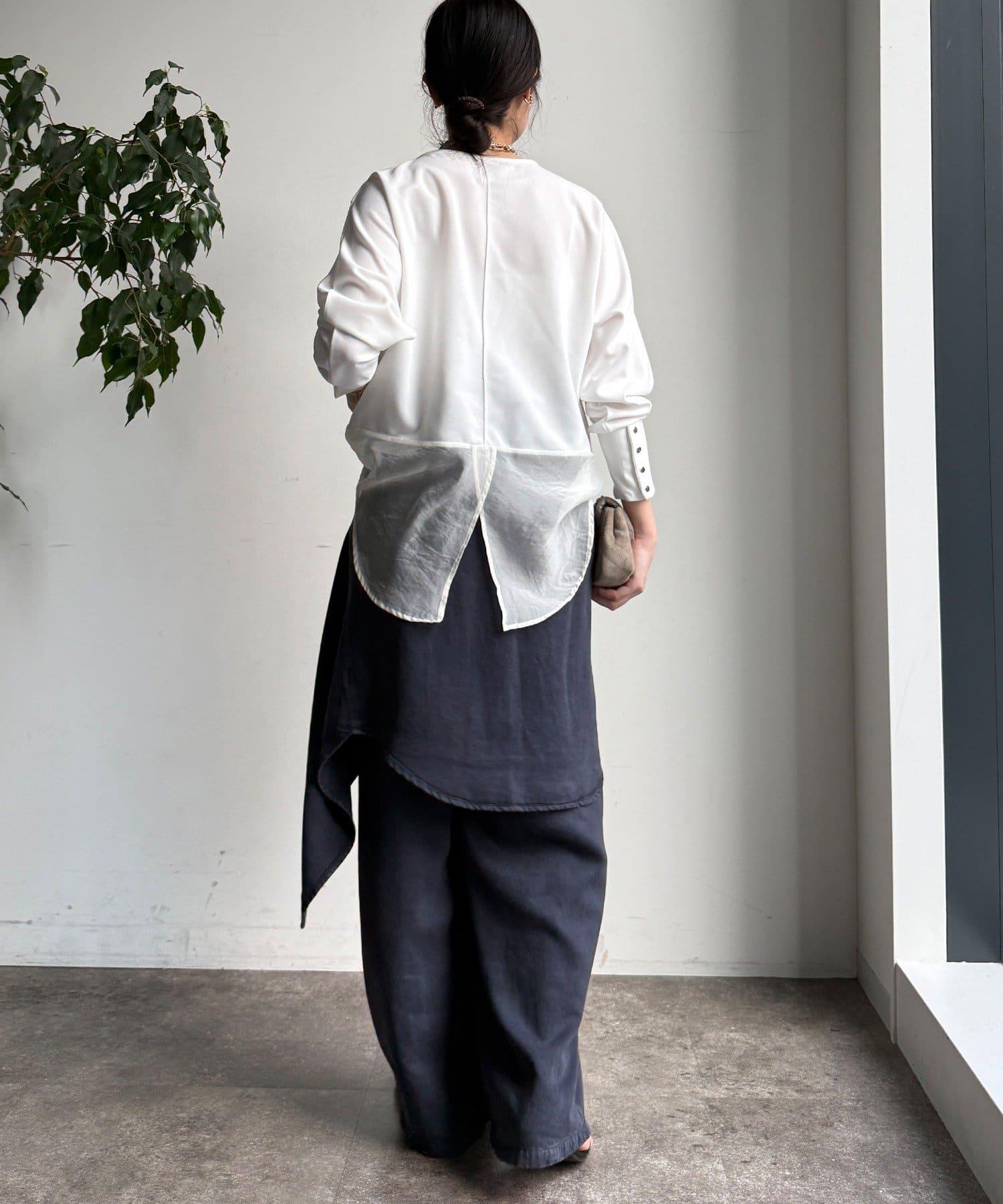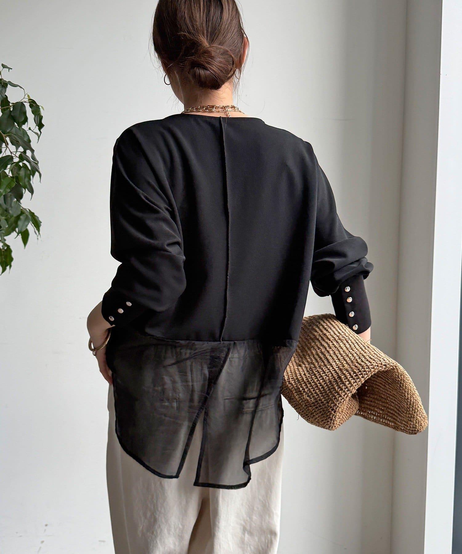 採用喬其紗面料製成的上衣,給人以柔軟優雅的印象。