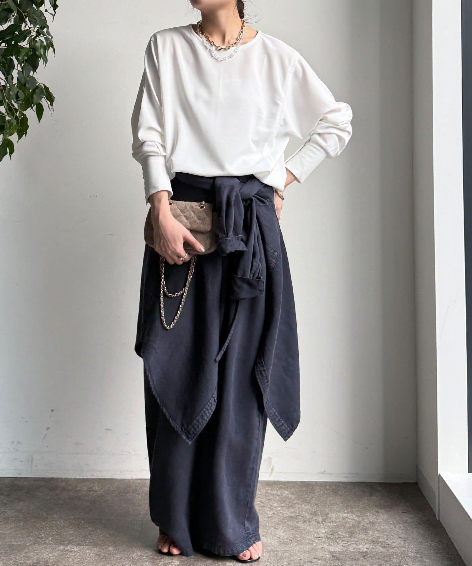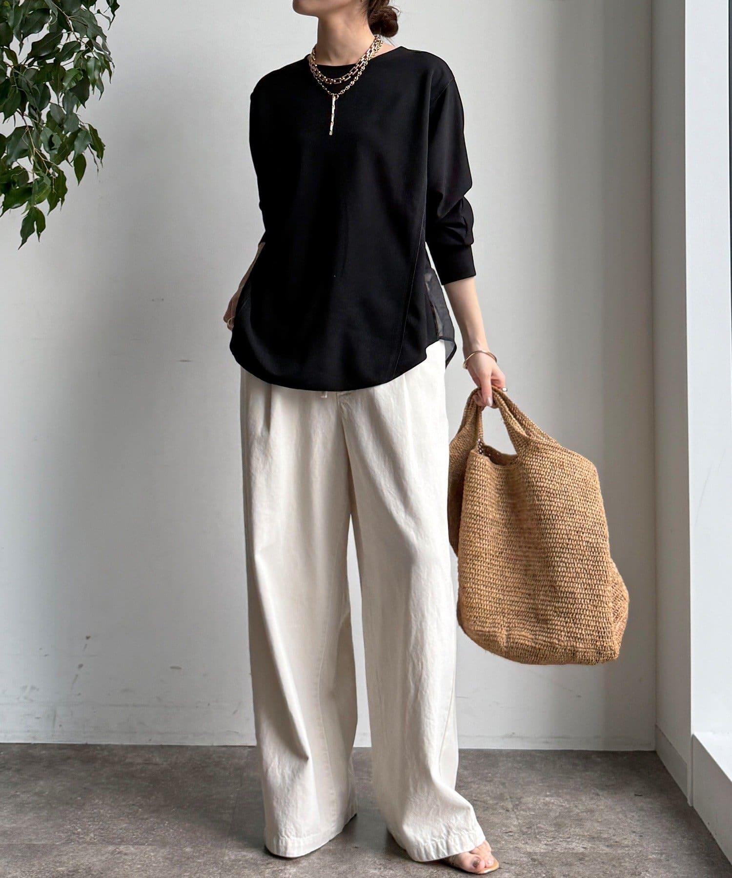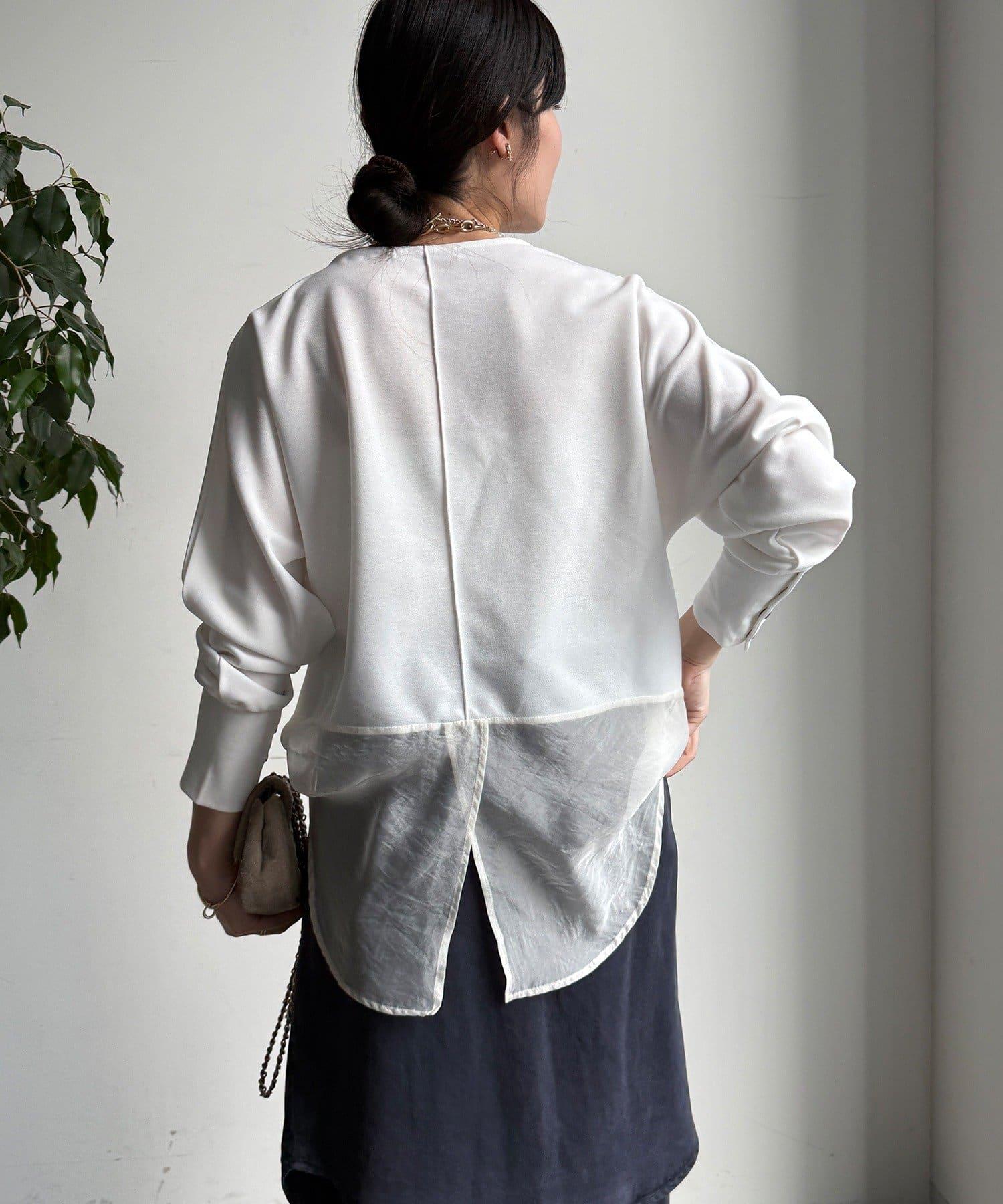 採用喬其紗面料製成的上衣,給人以柔軟優雅的印象。