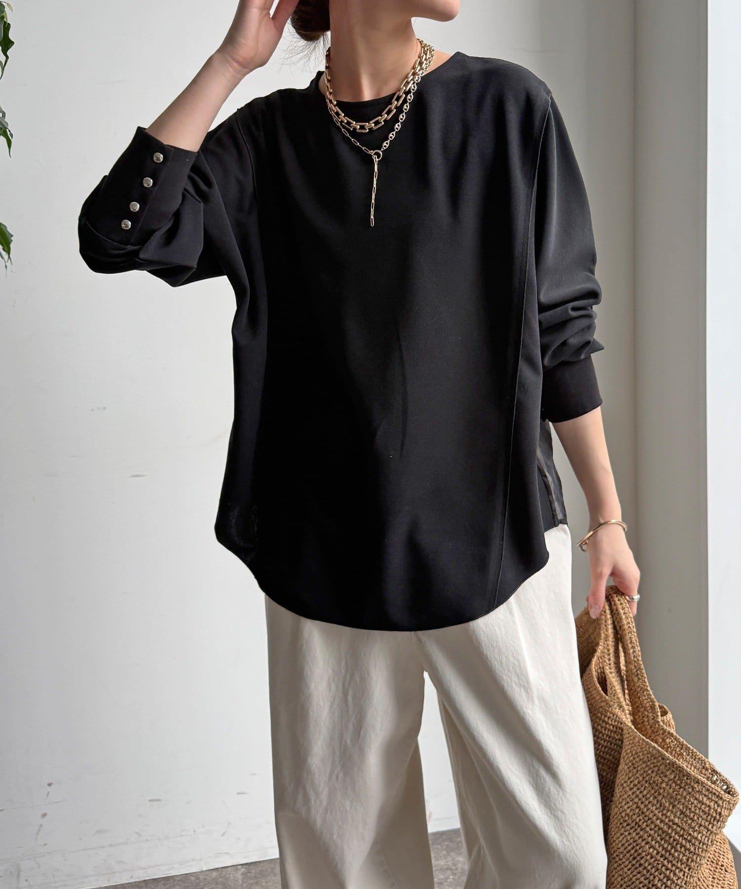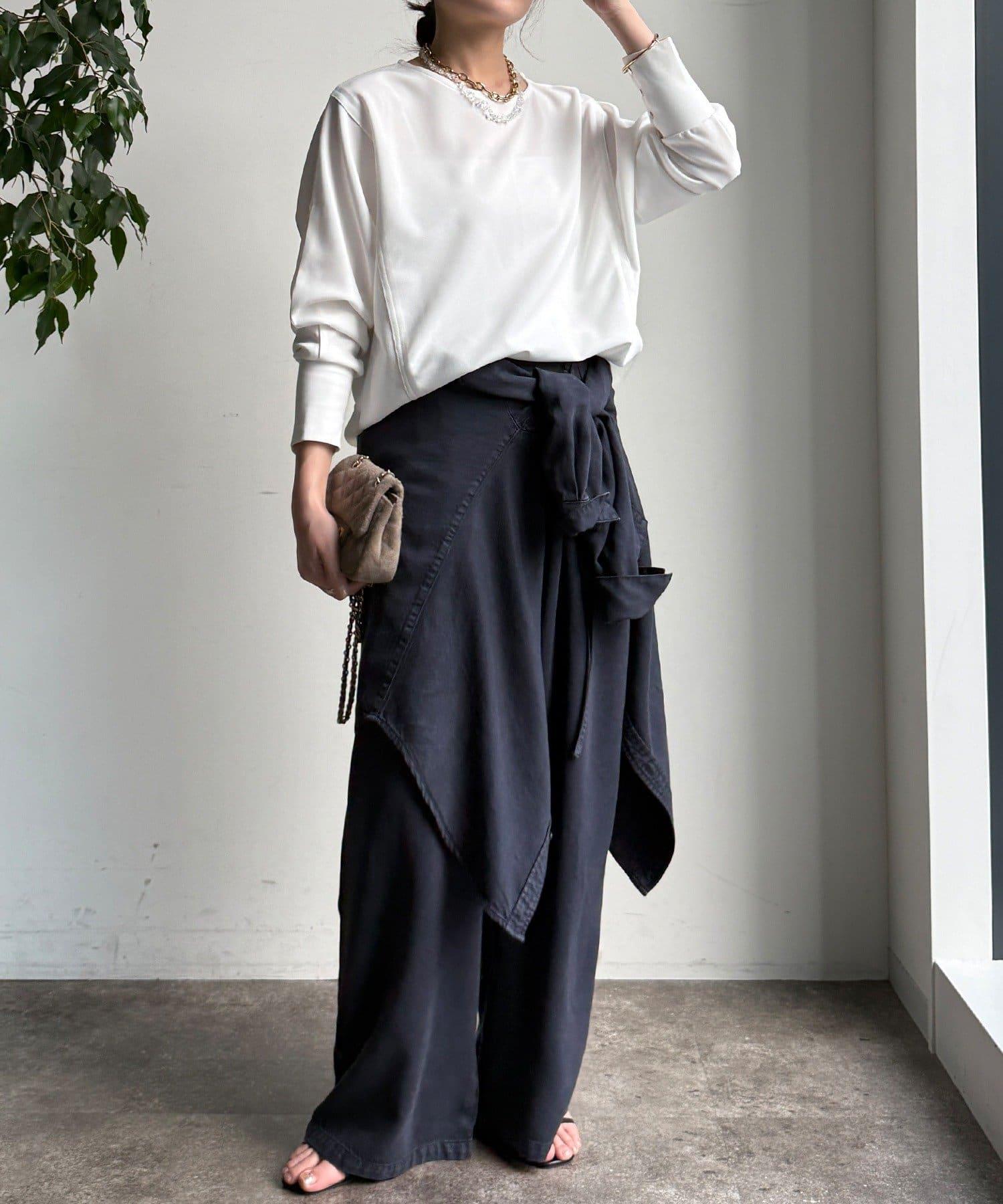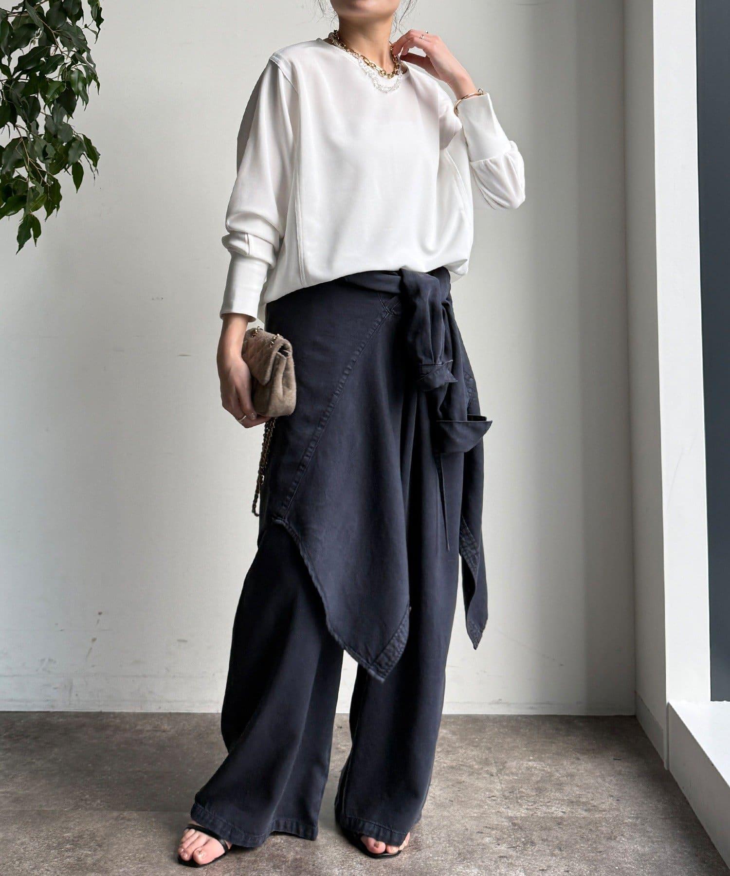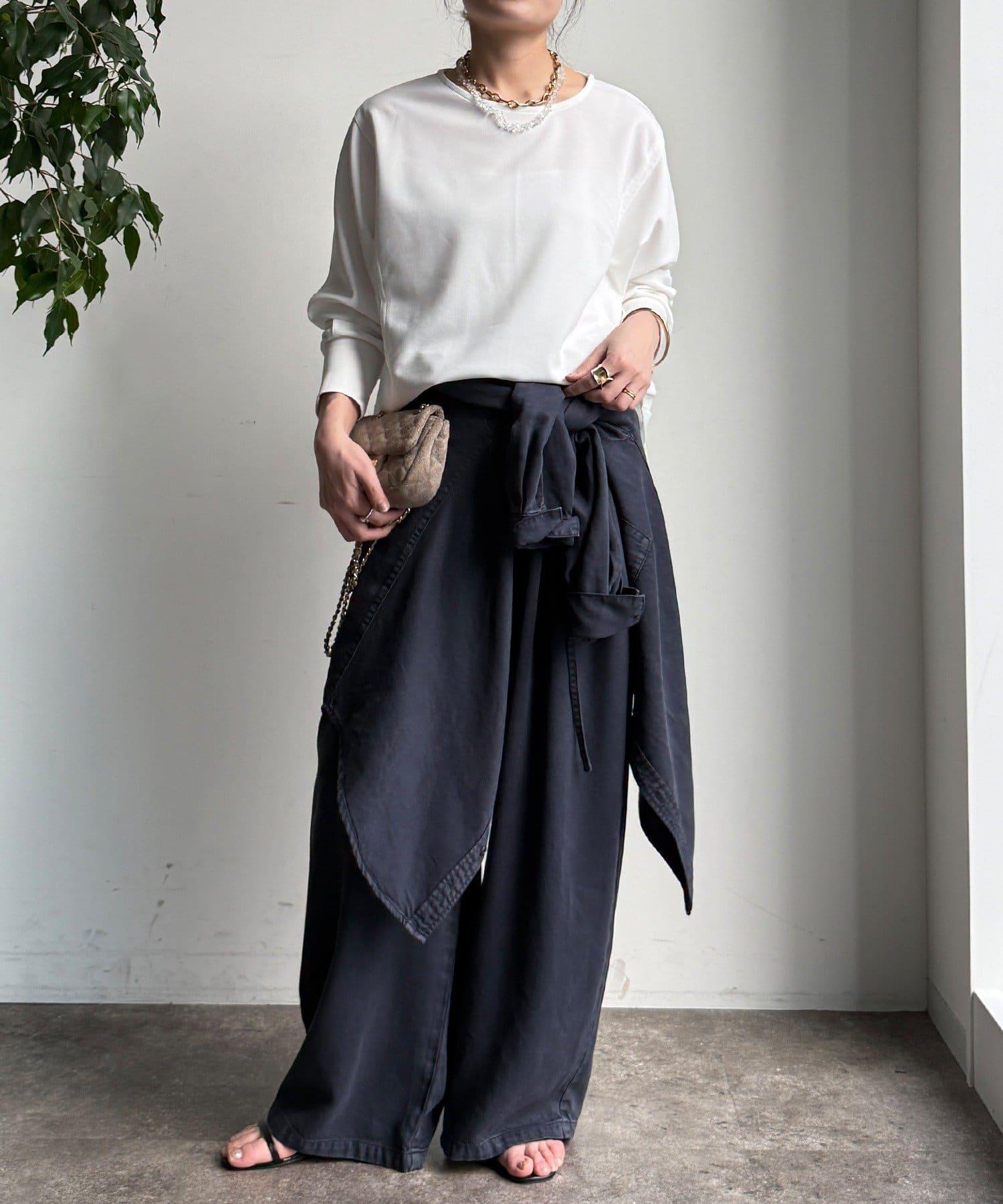 採用喬其紗面料製成的上衣,給人以柔軟優雅的印象。