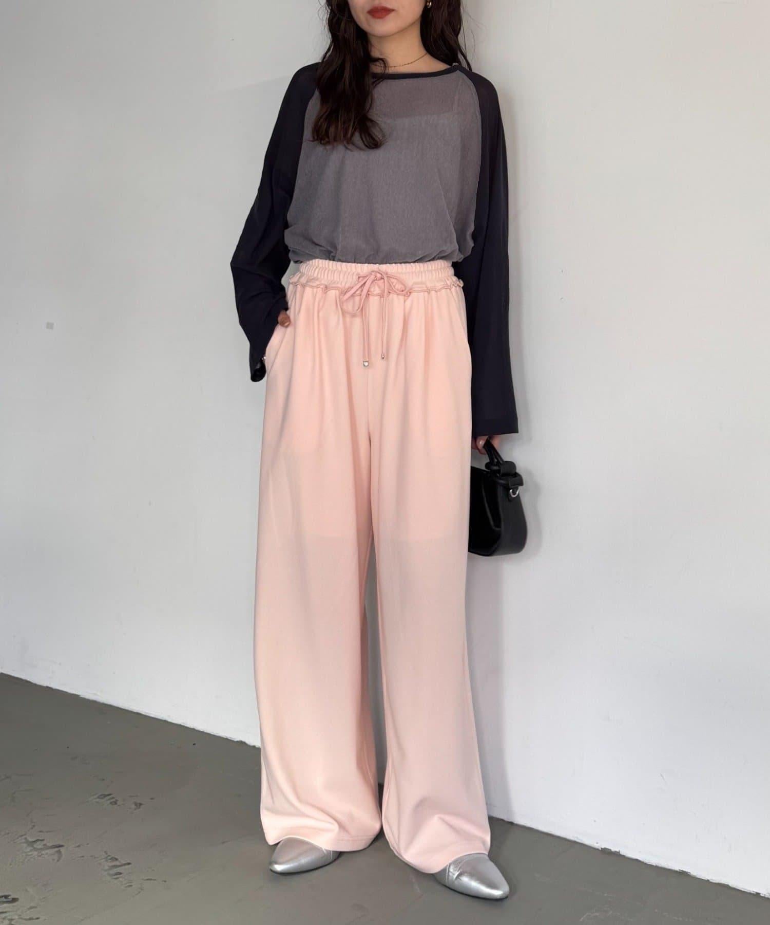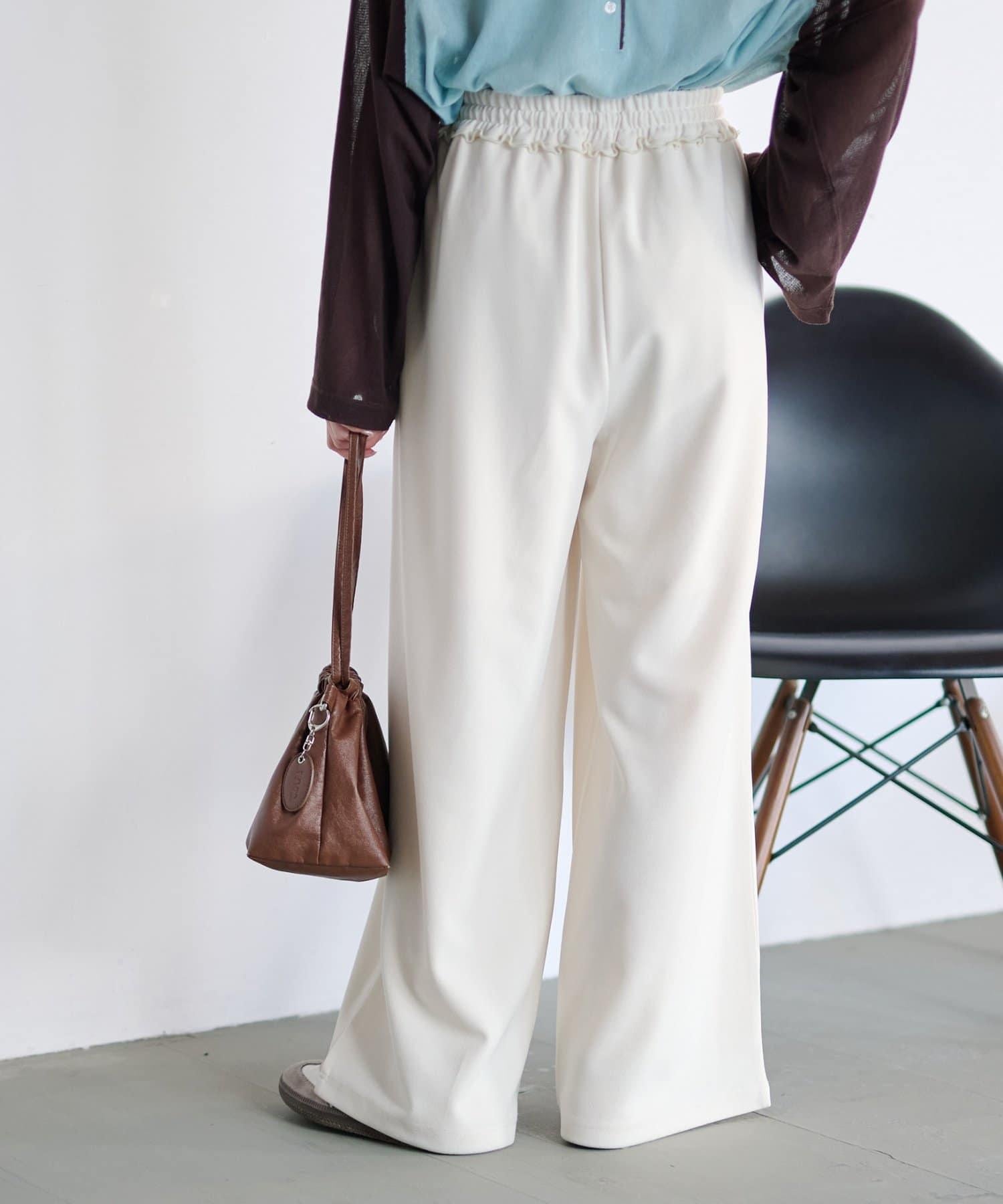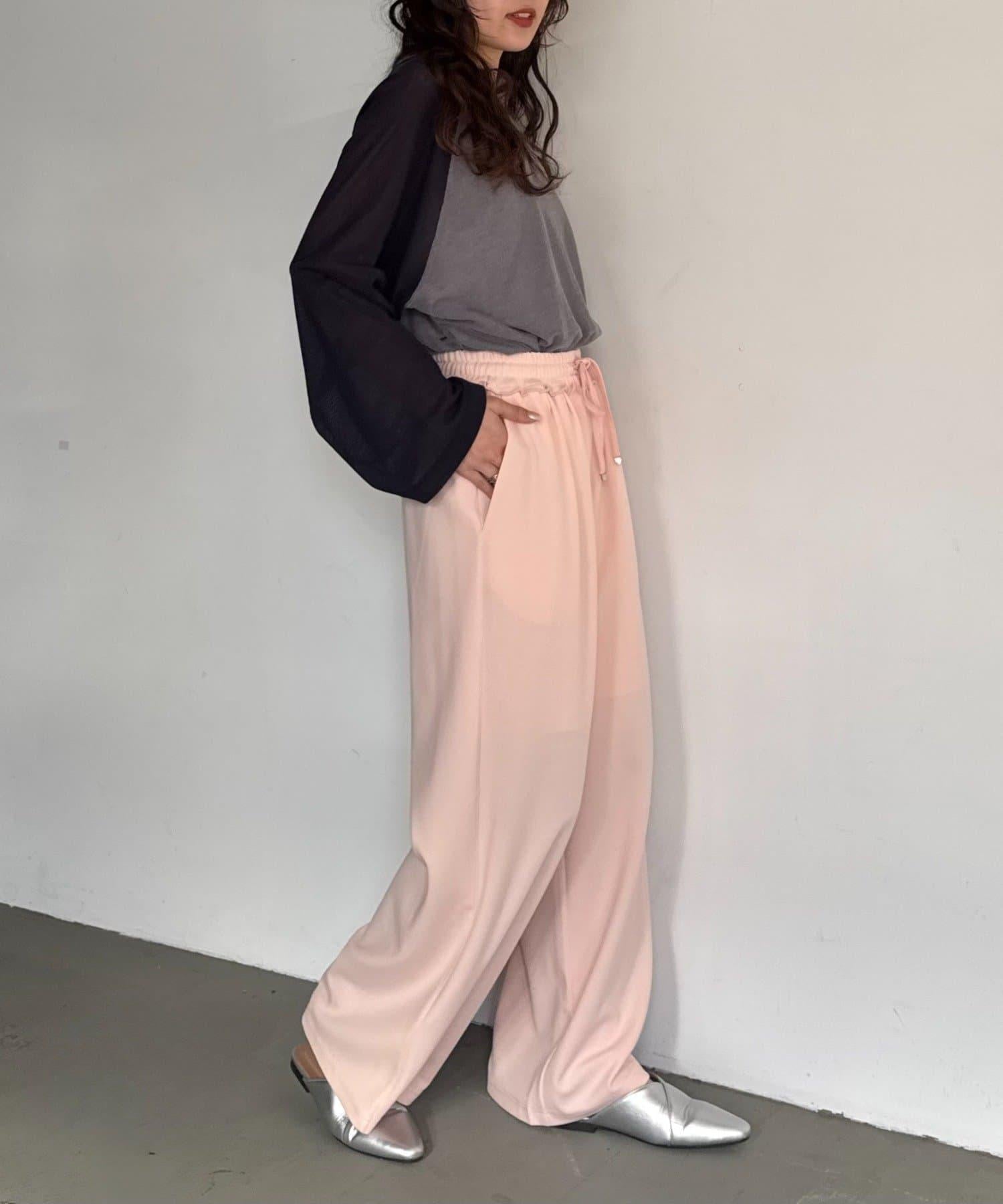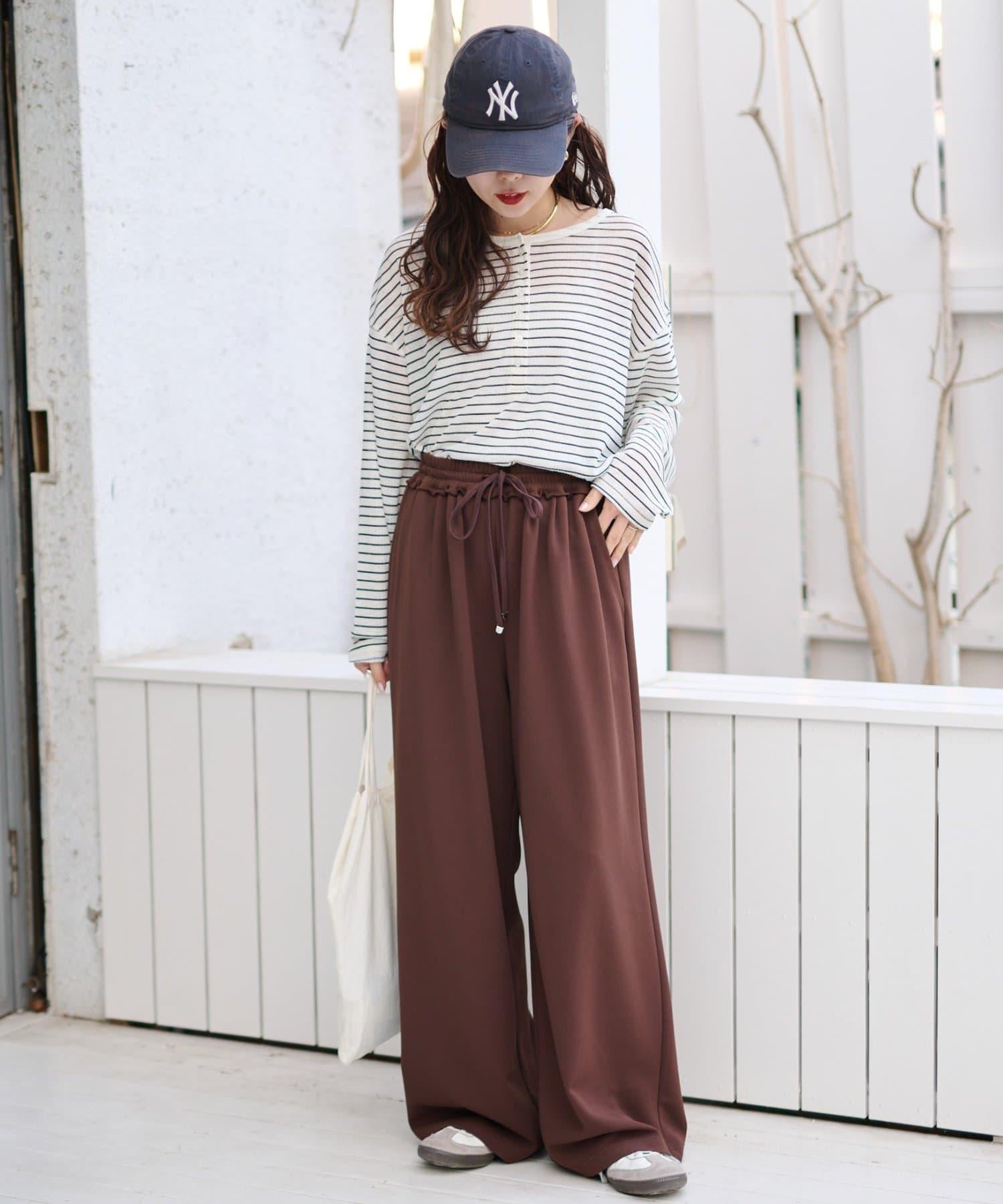 可通過繫帶調節的鬆緊腰身,寬大的細節設計可避免腿部線條的突顯。