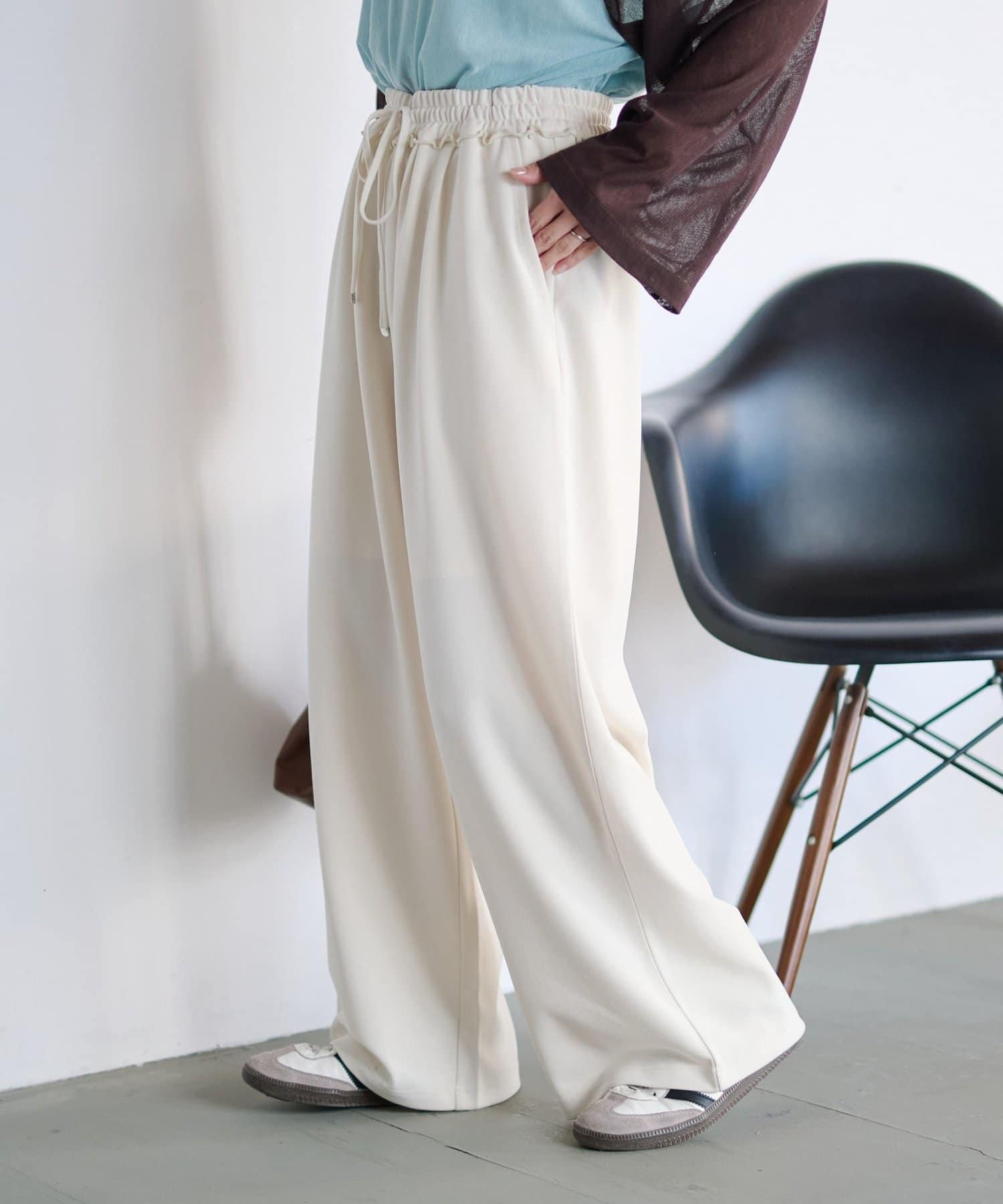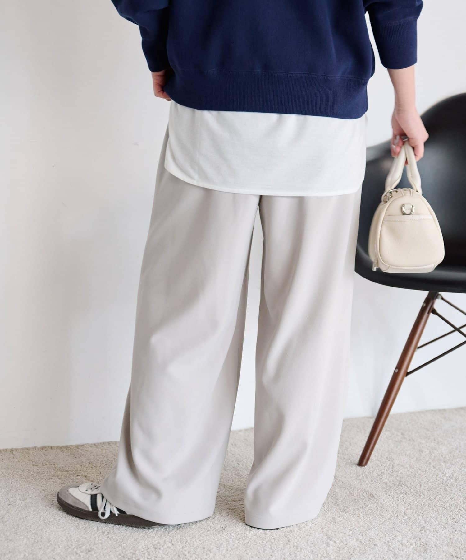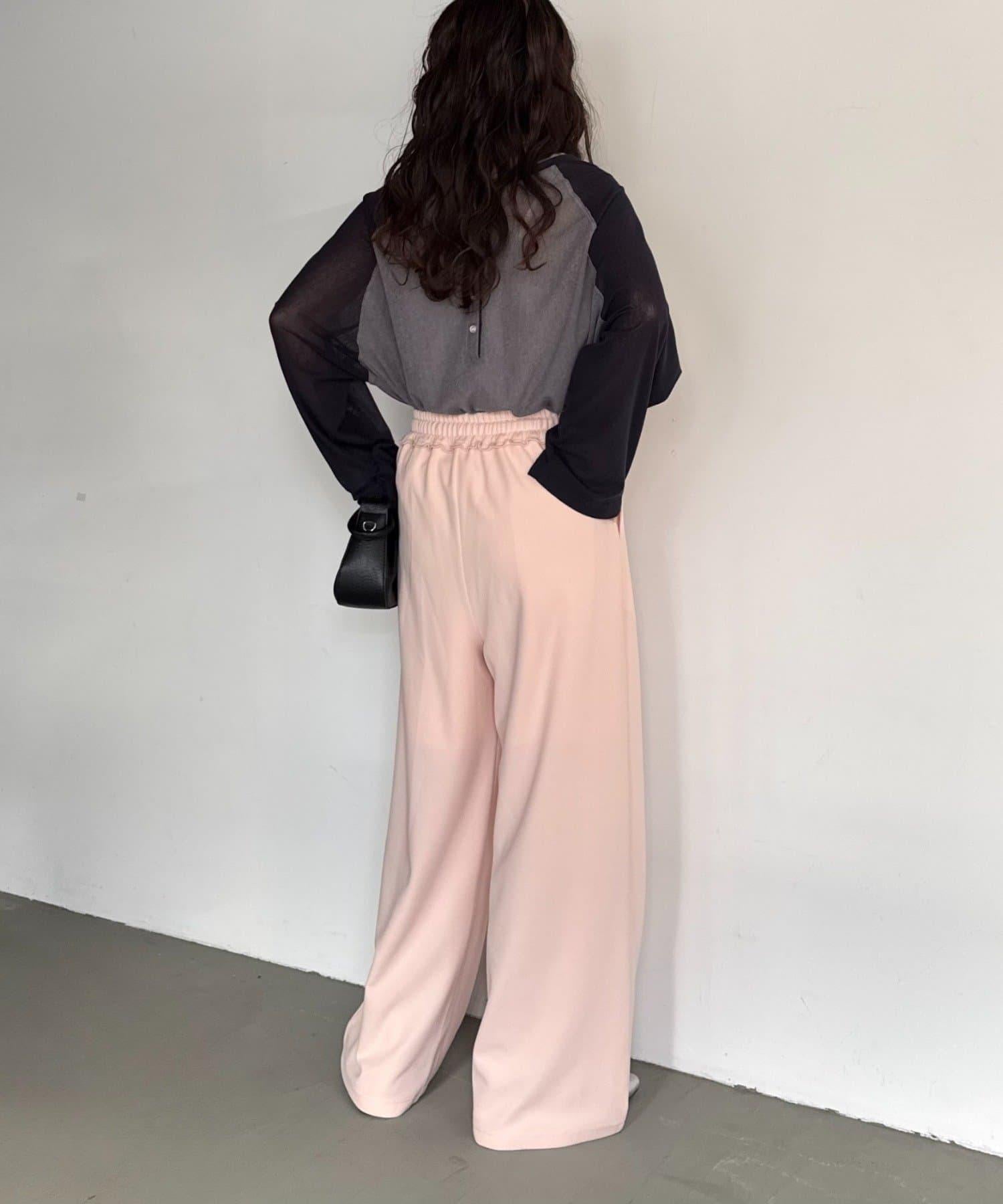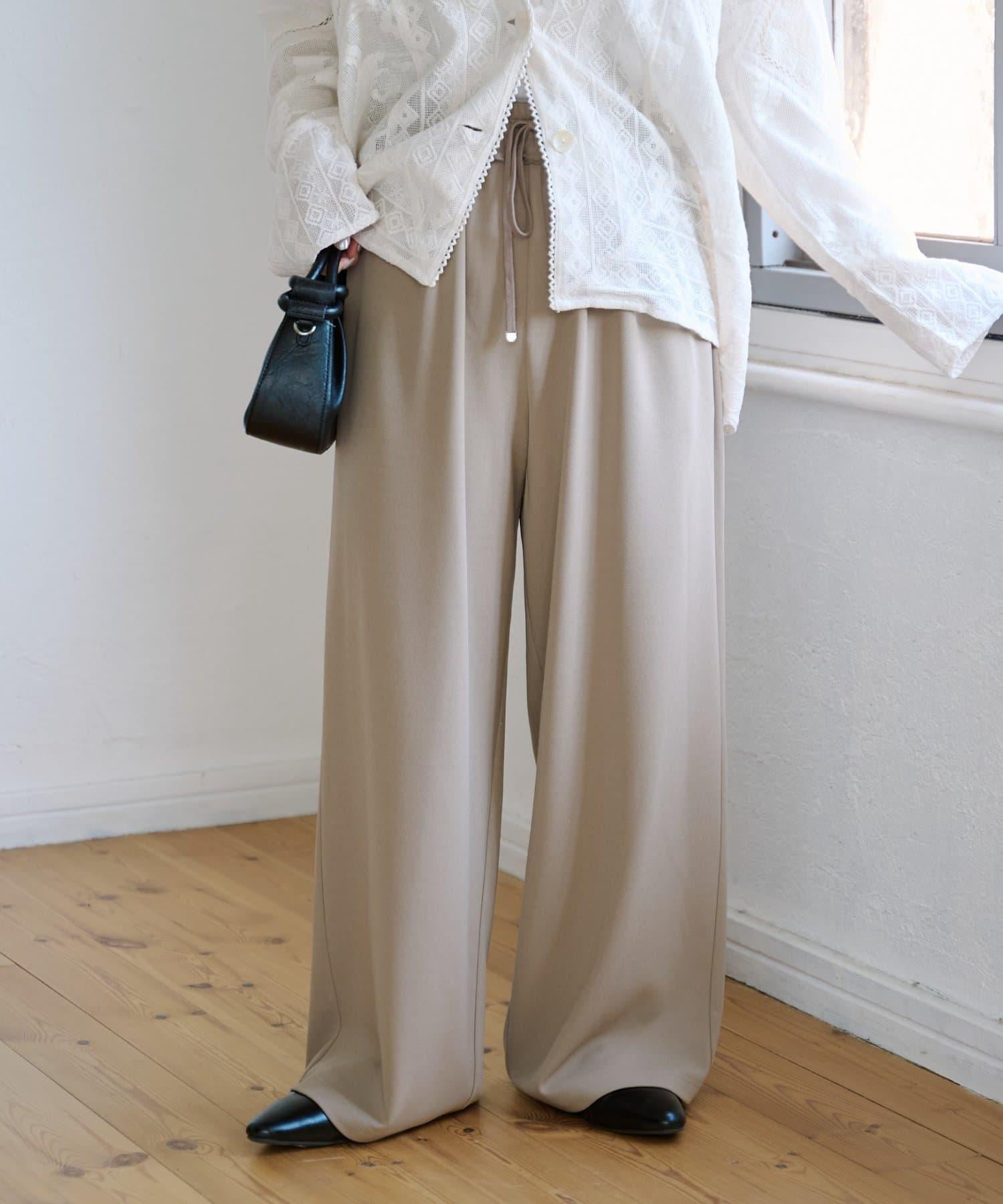 可通過繫帶調節的鬆緊腰身,寬大的細節設計可避免腿部線條的突顯。