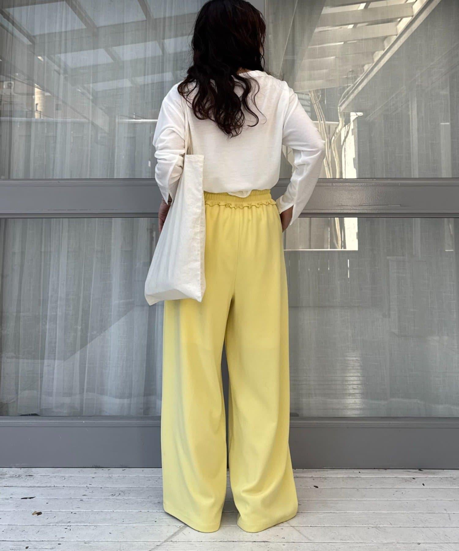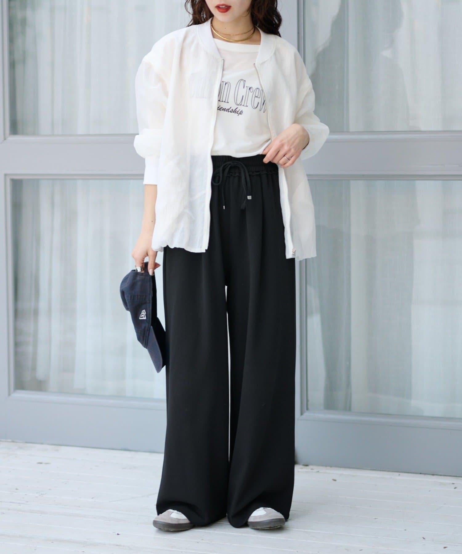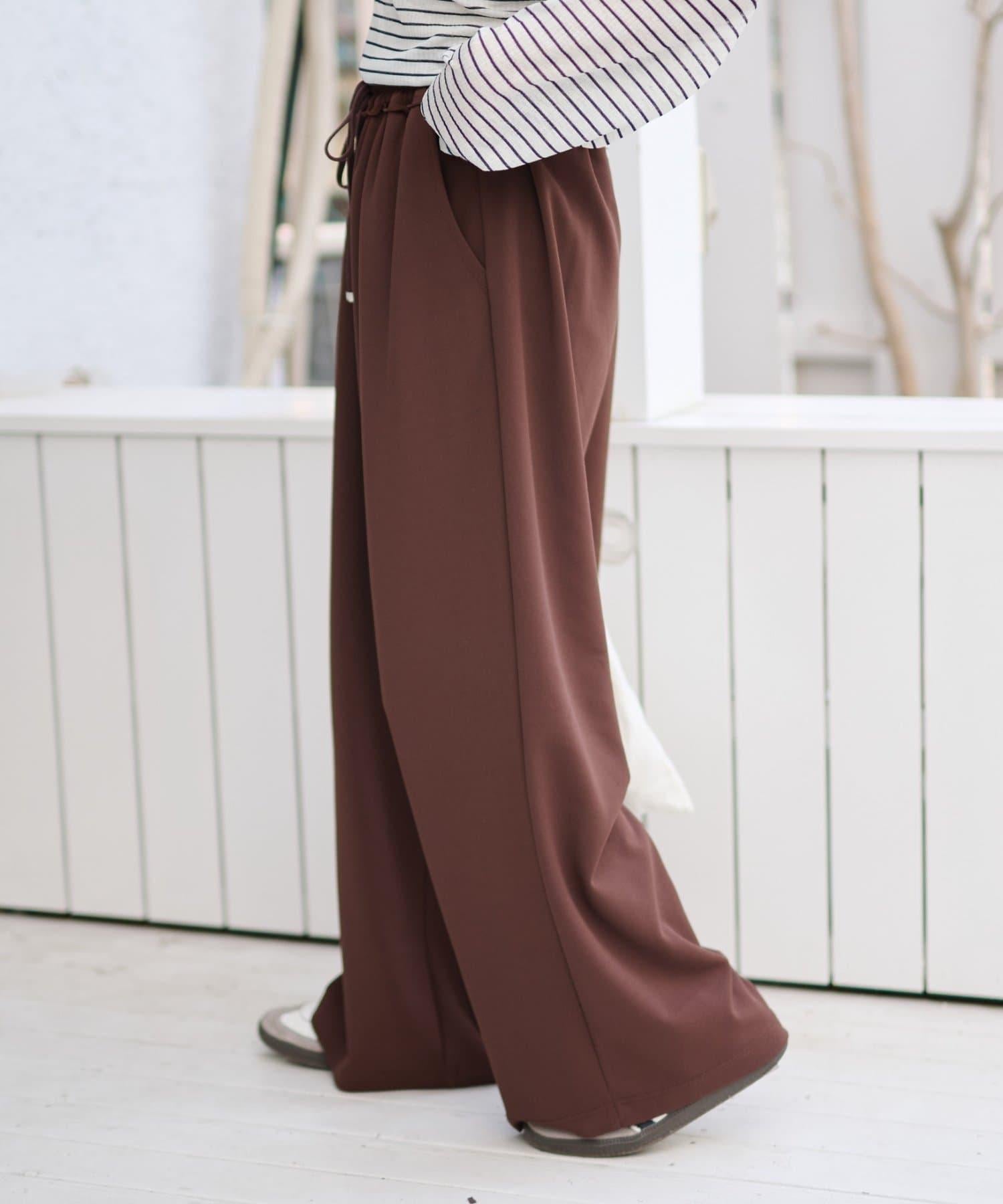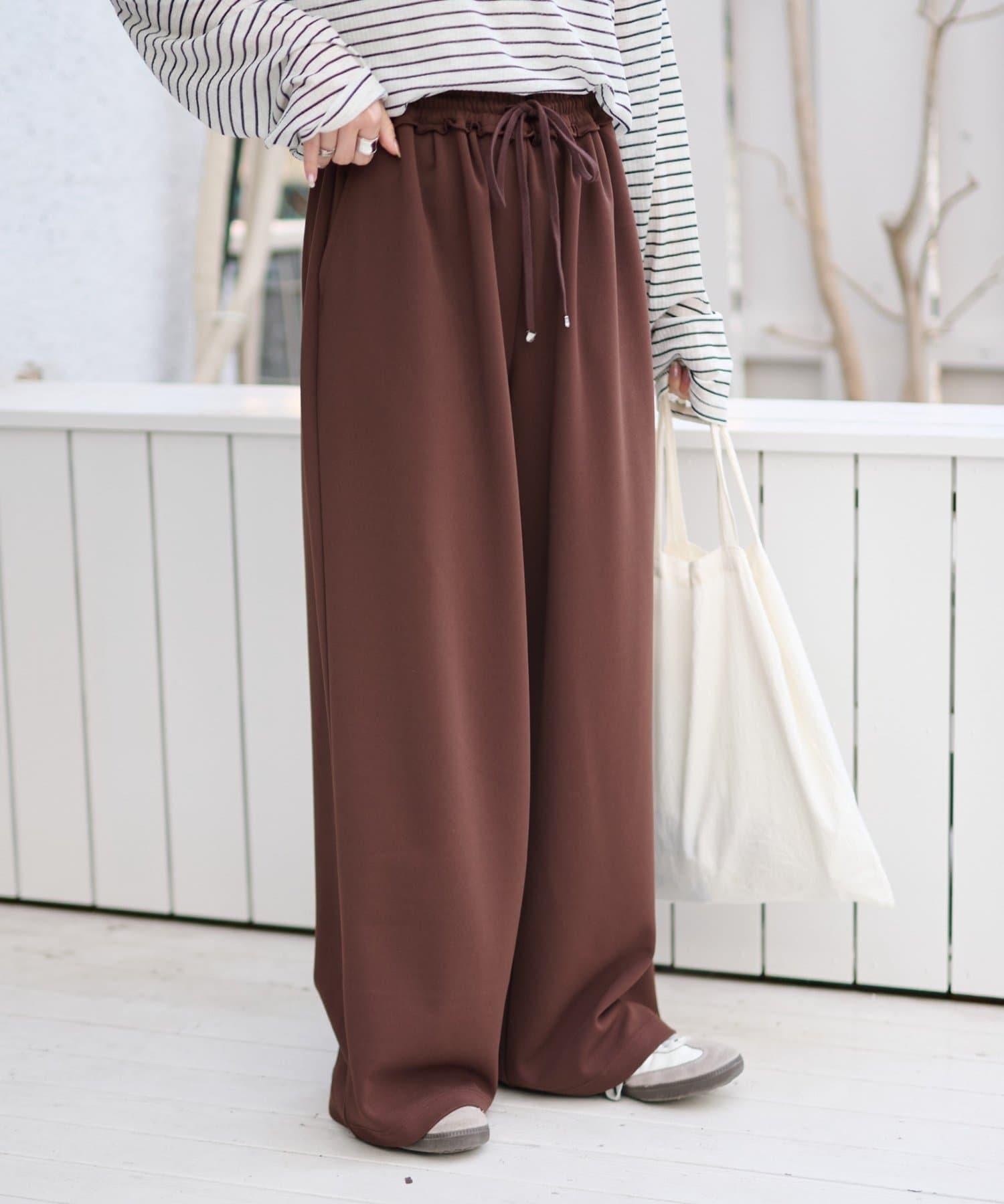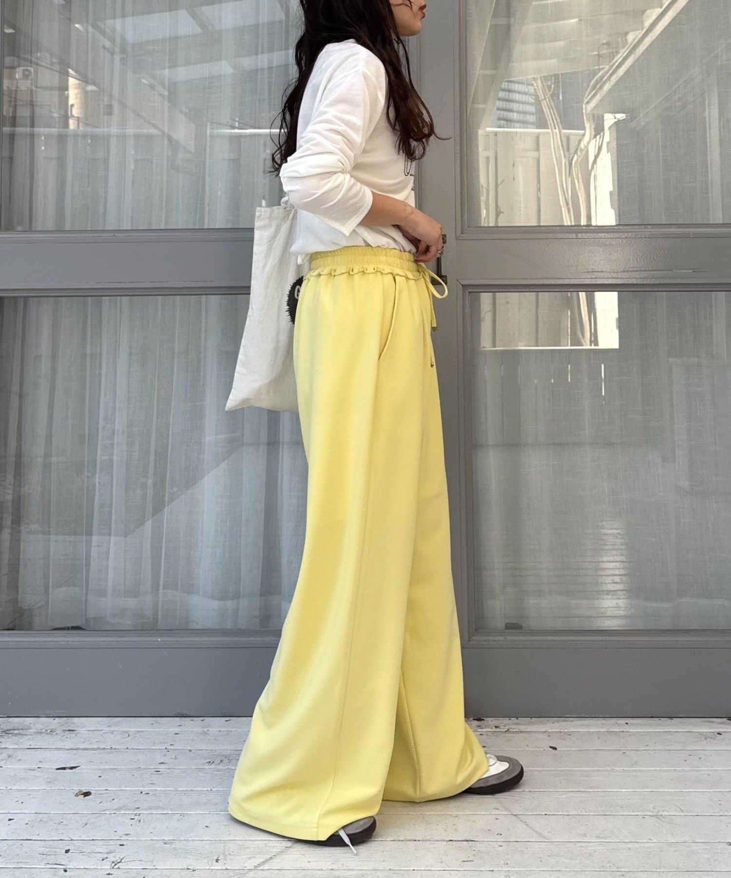 可通過繫帶調節的鬆緊腰身,寬大的細節設計可避免腿部線條的突顯。