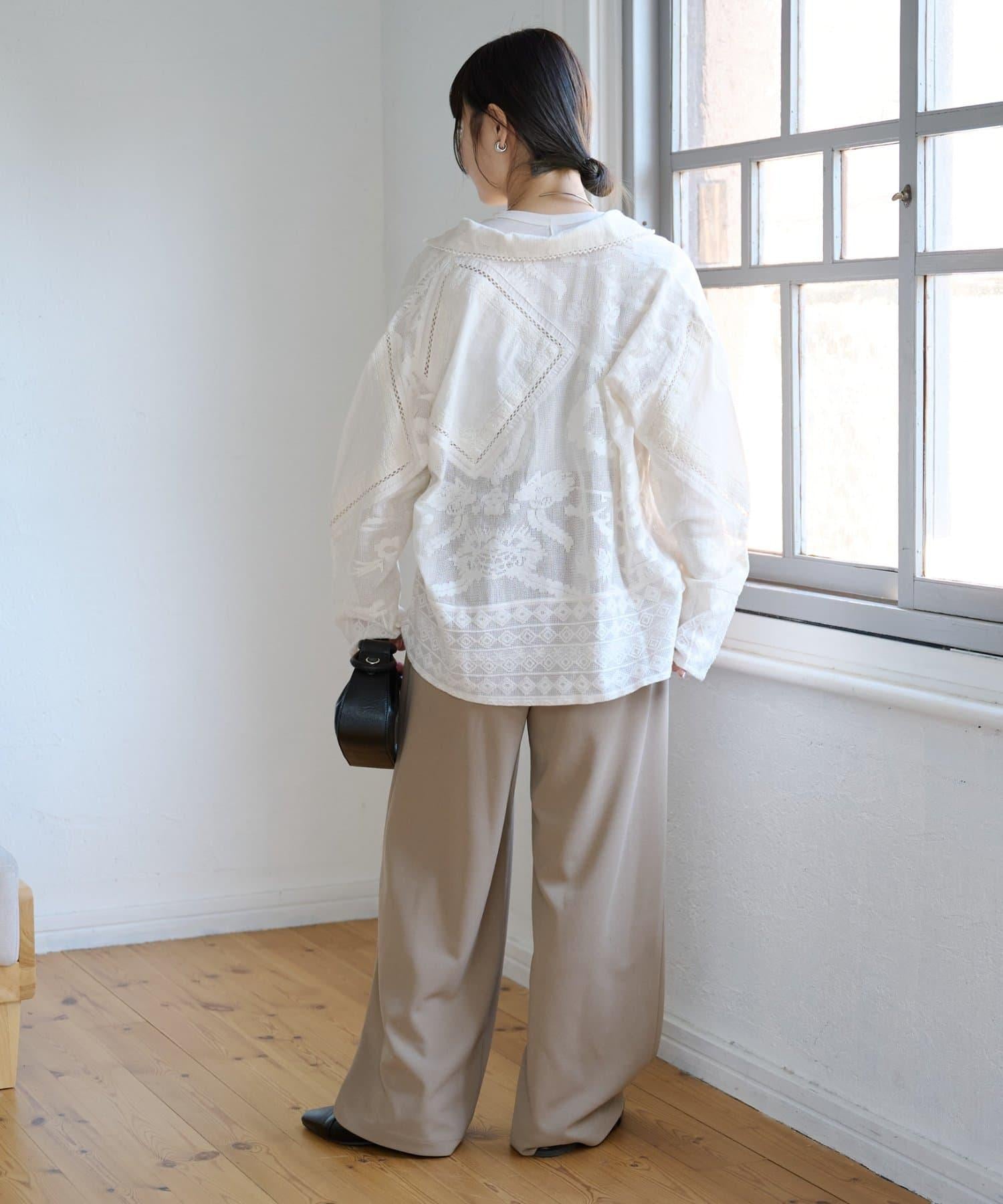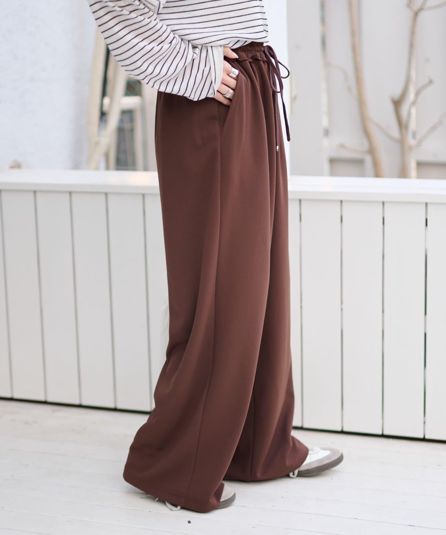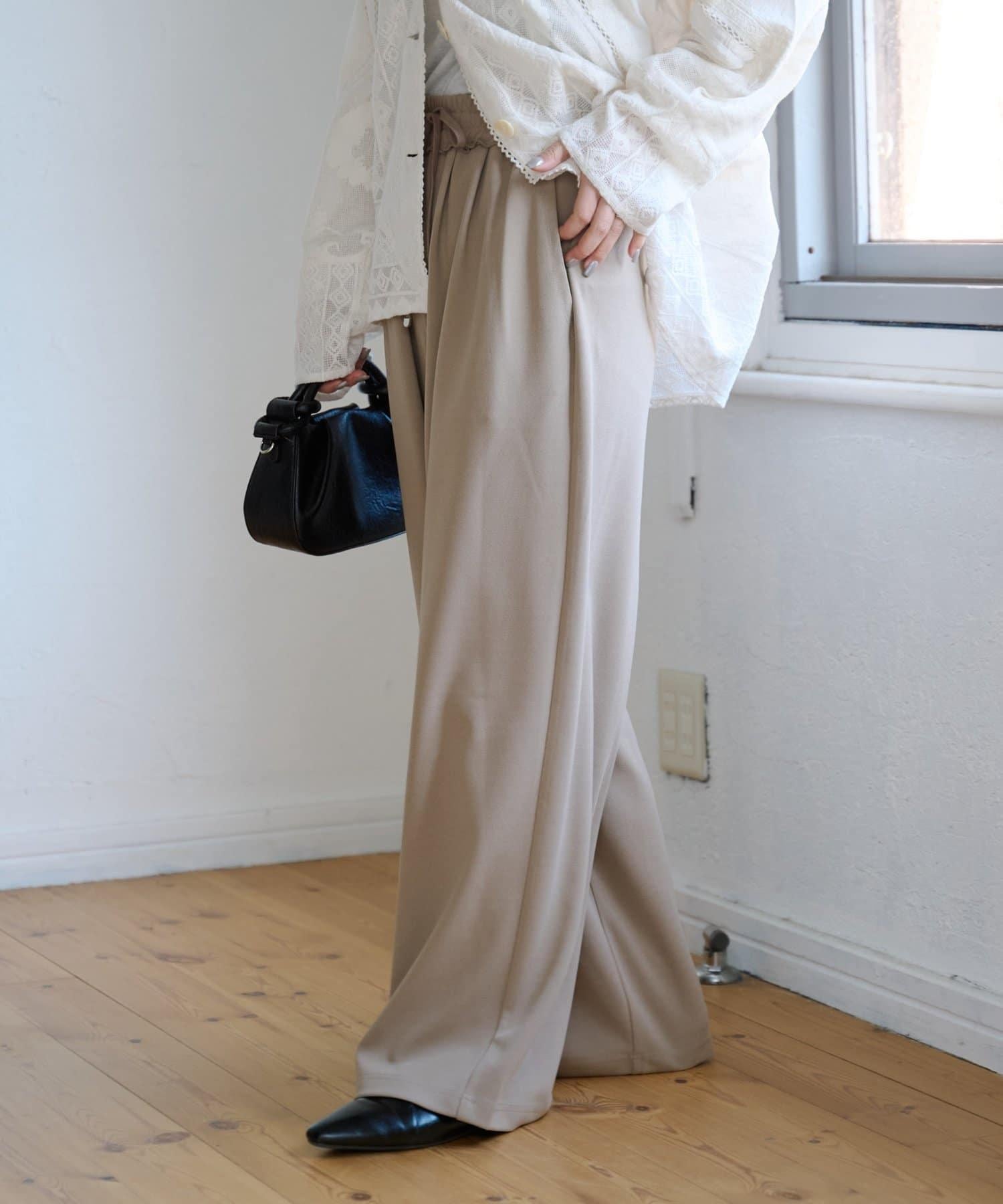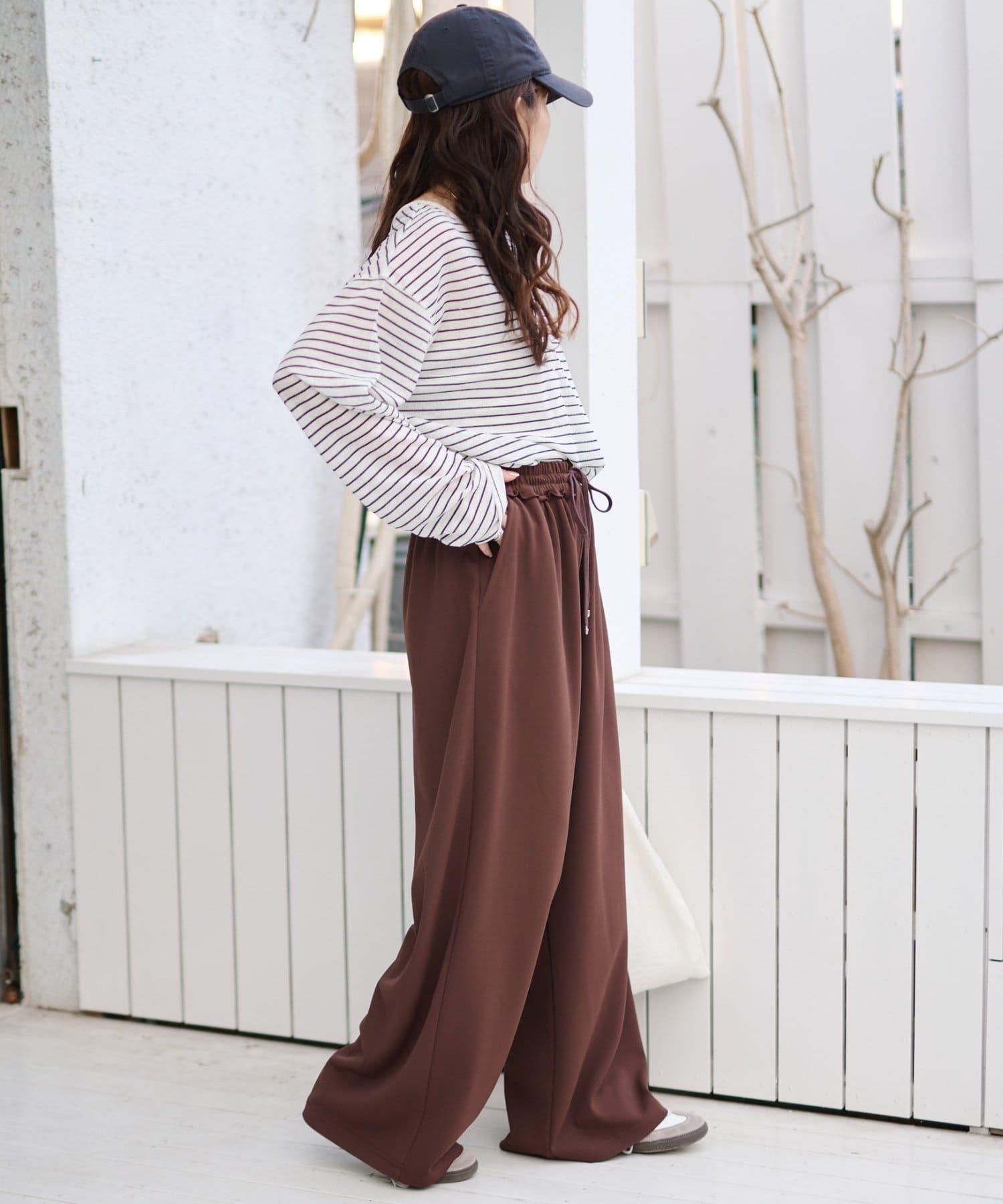 可通過繫帶調節的鬆緊腰身,寬大的細節設計可避免腿部線條的突顯。