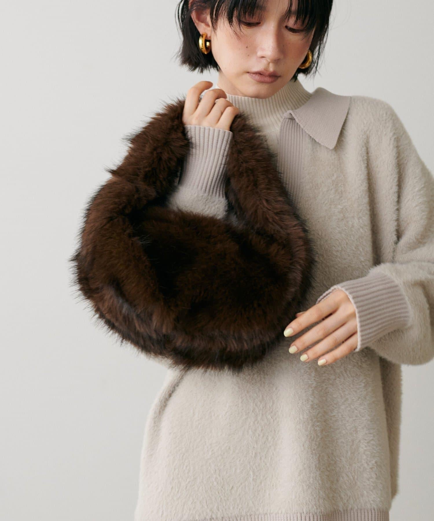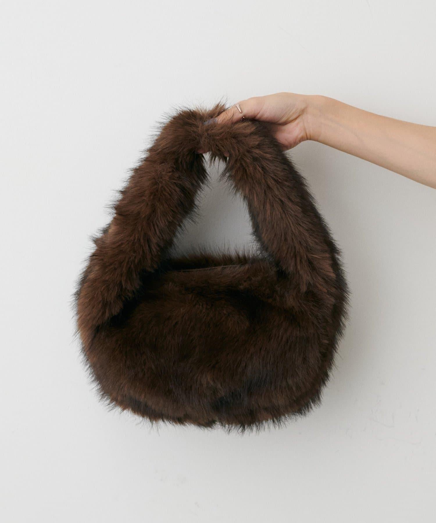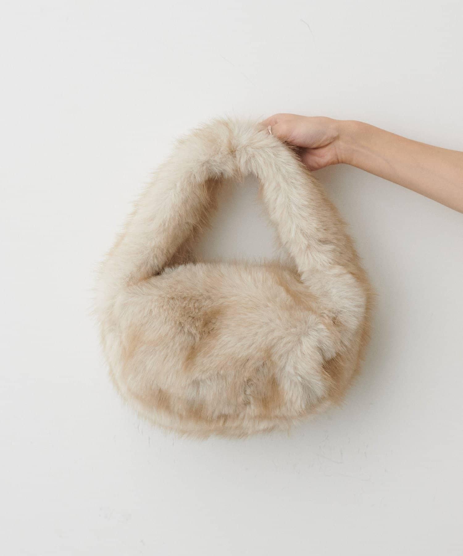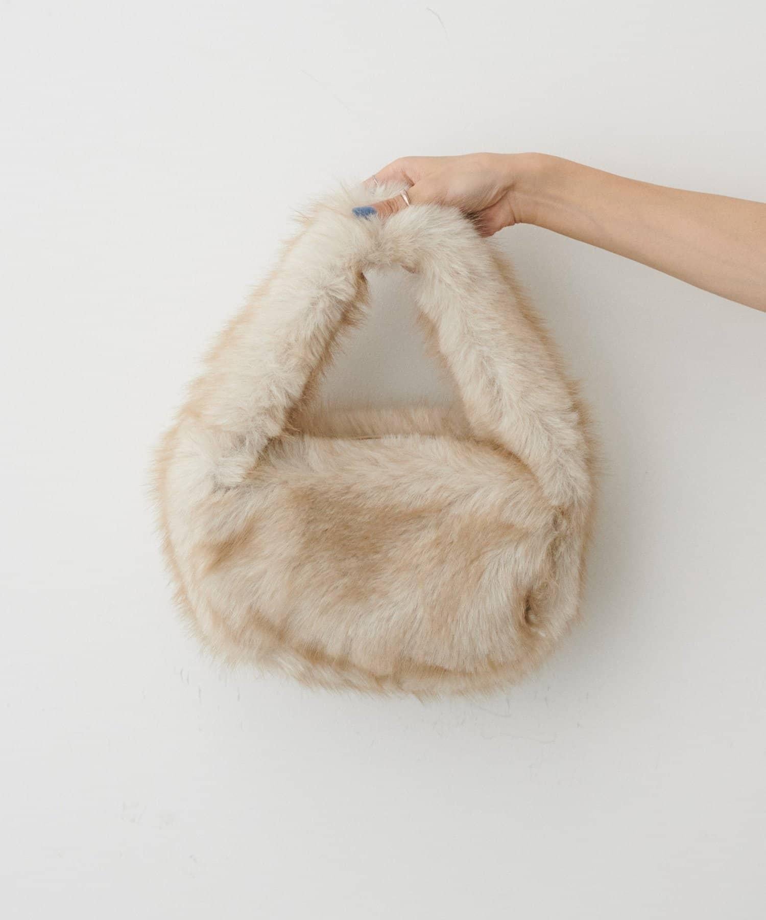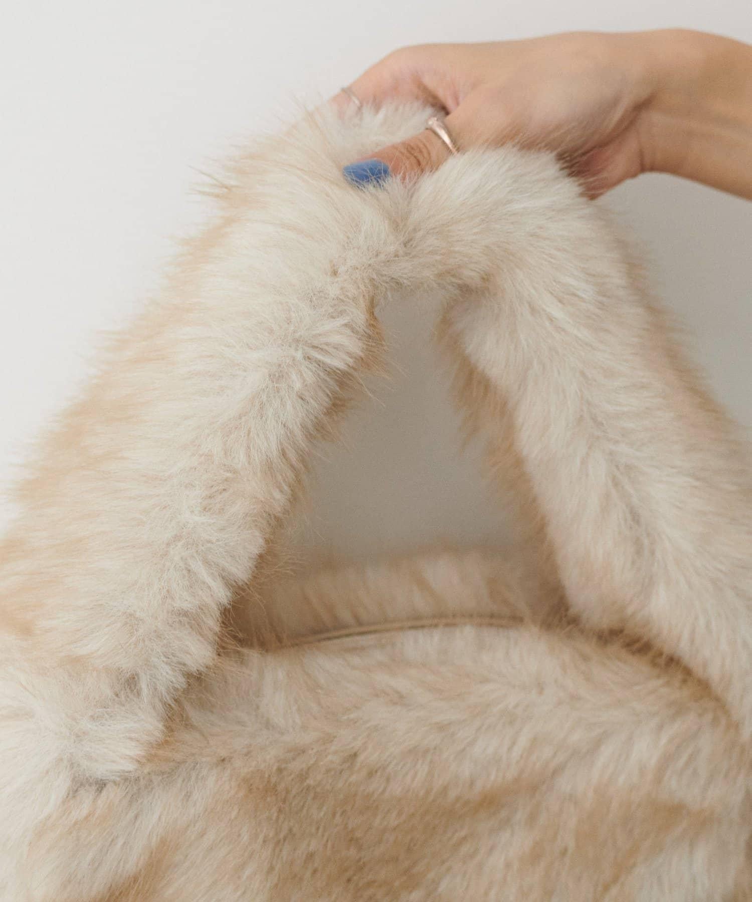 這款單手柄手提包採用蓬鬆的生態毛皮製成,充滿了季節氣息。