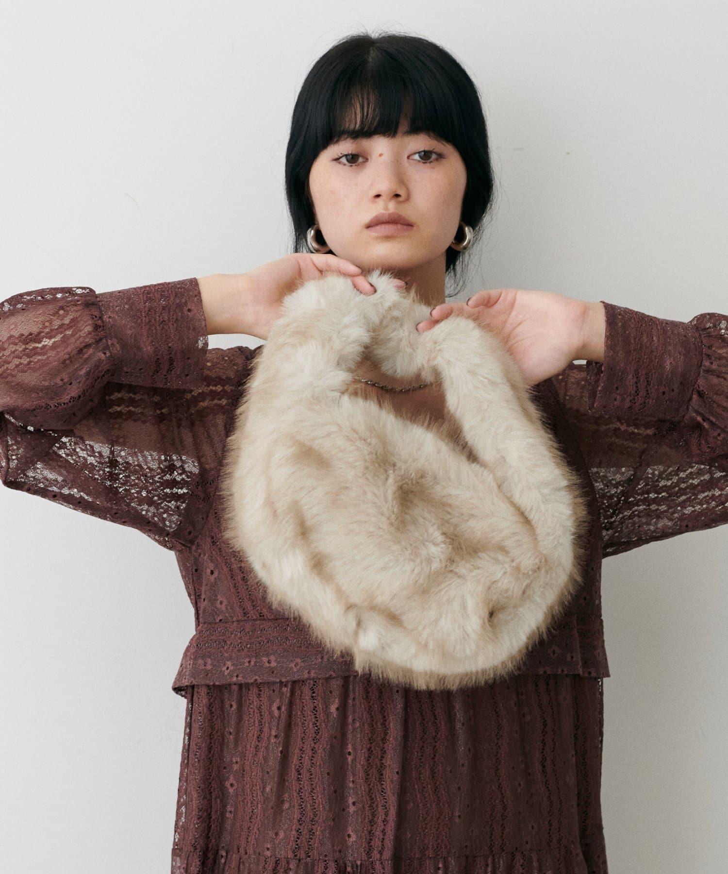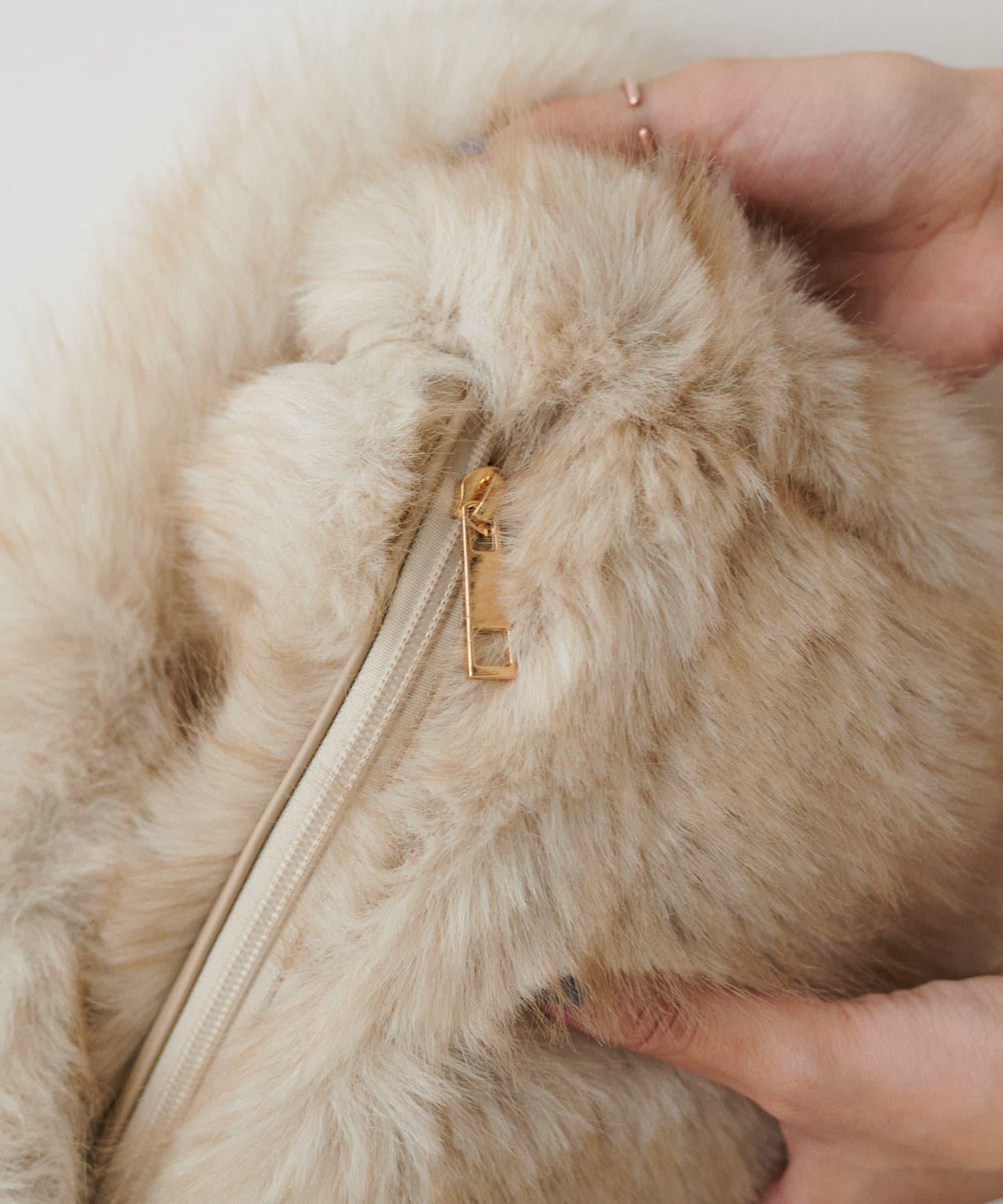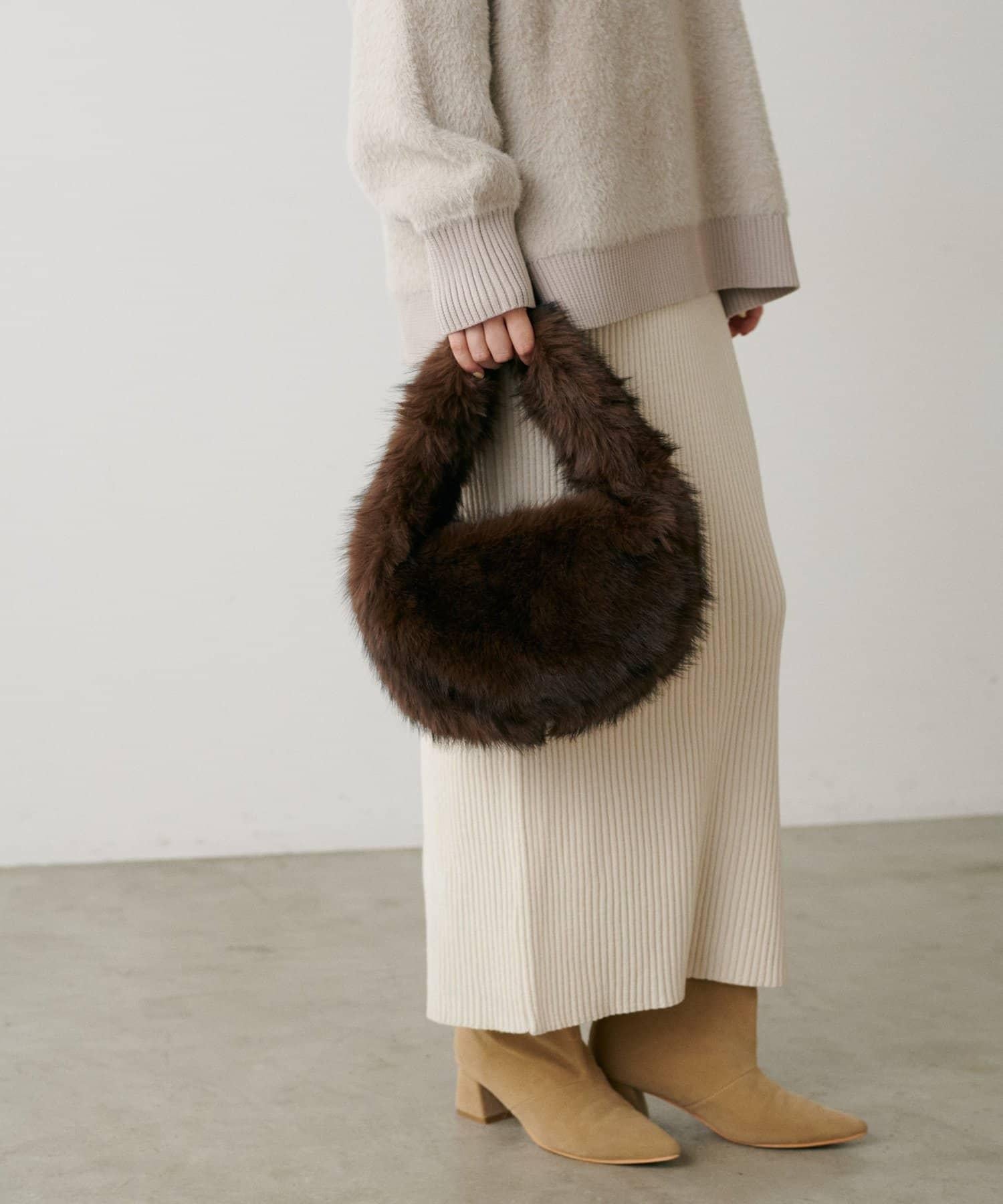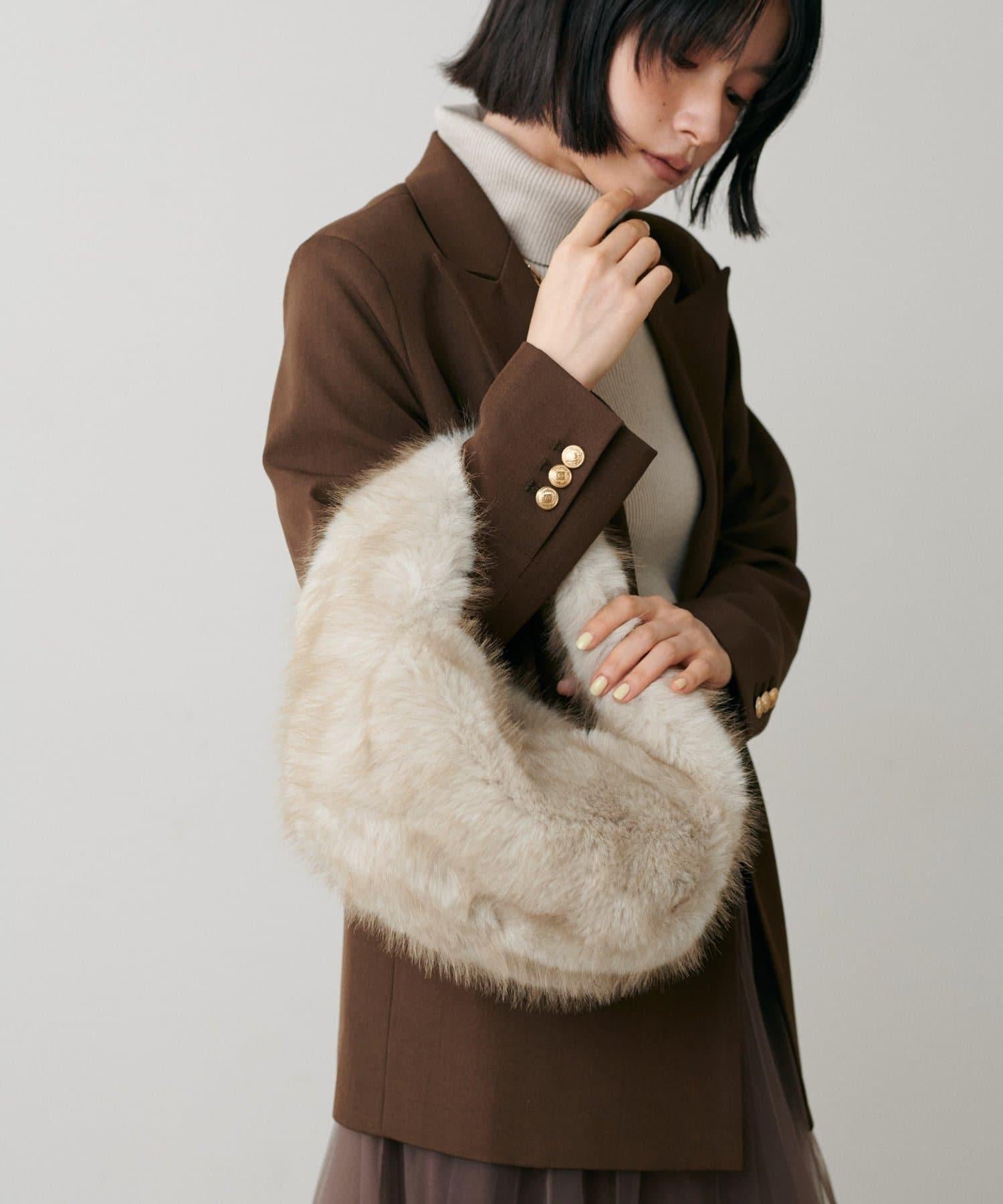 這款單手柄手提包採用蓬鬆的生態毛皮製成,充滿了季節氣息。