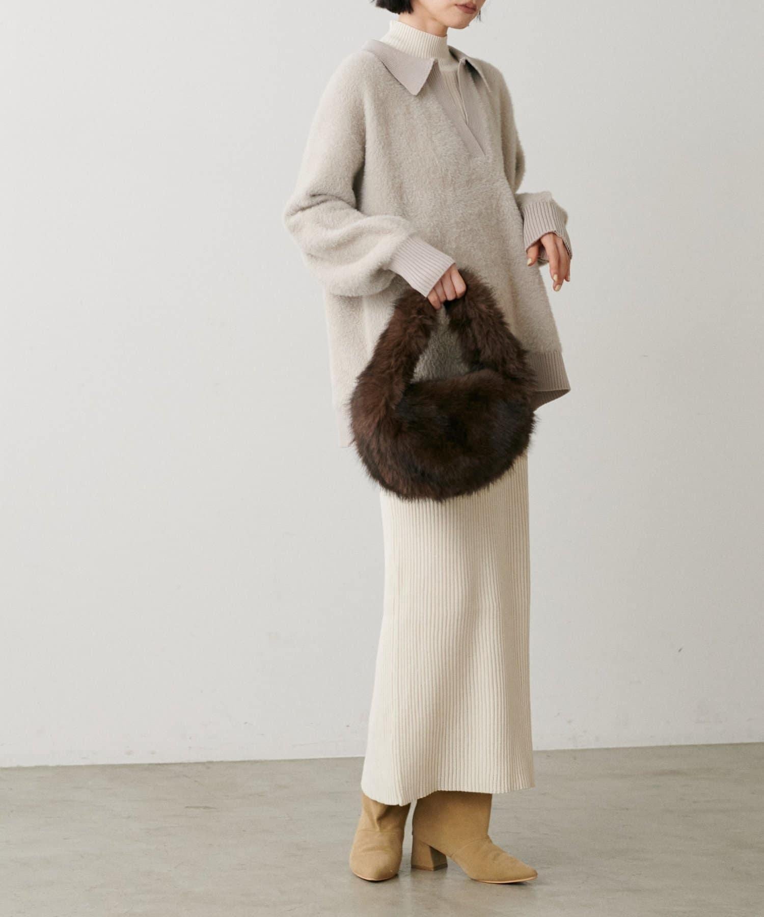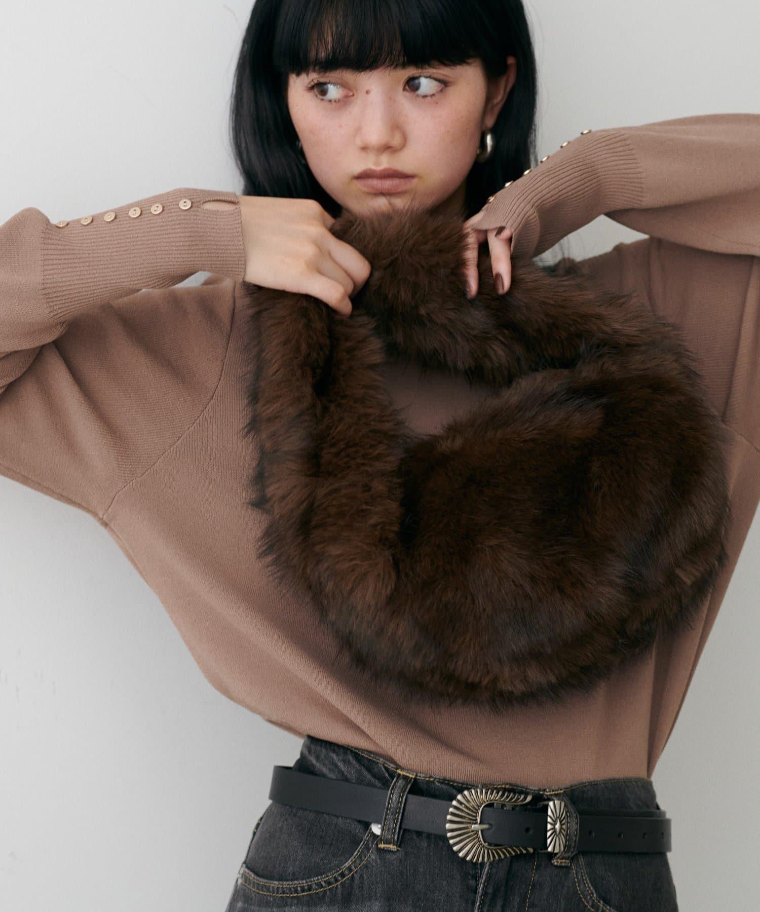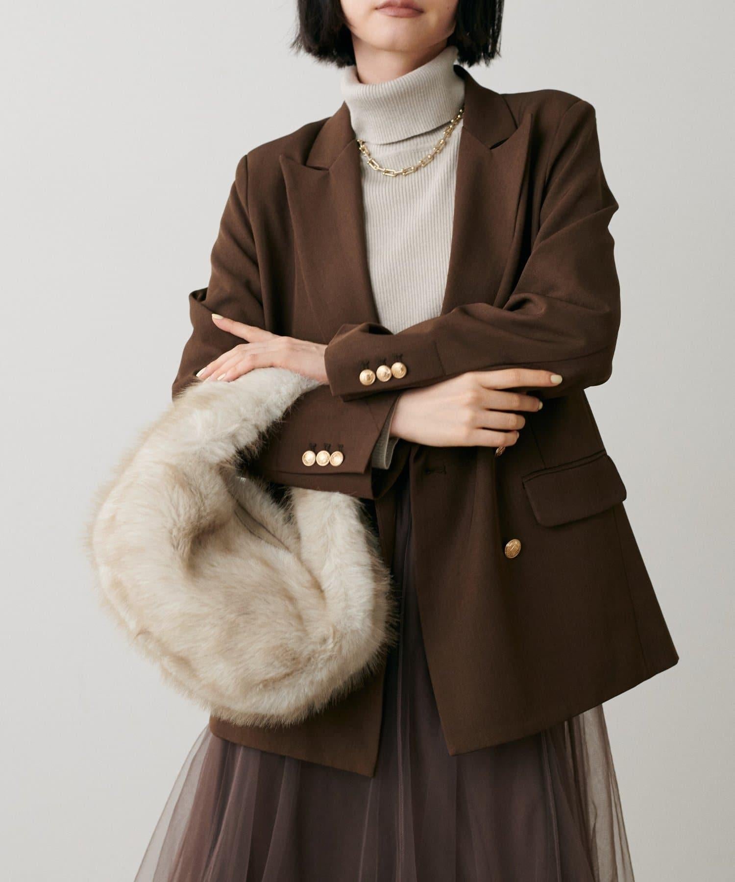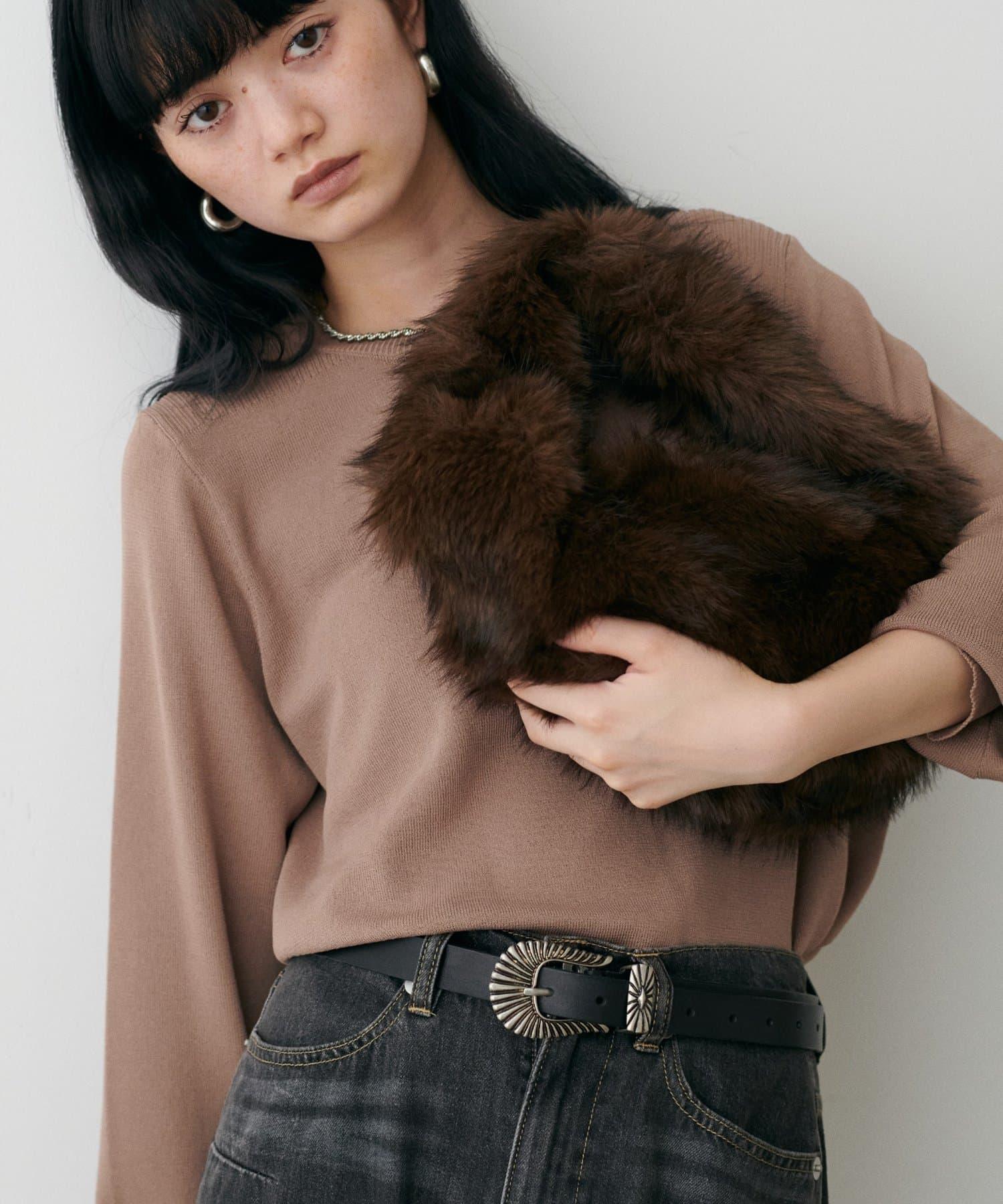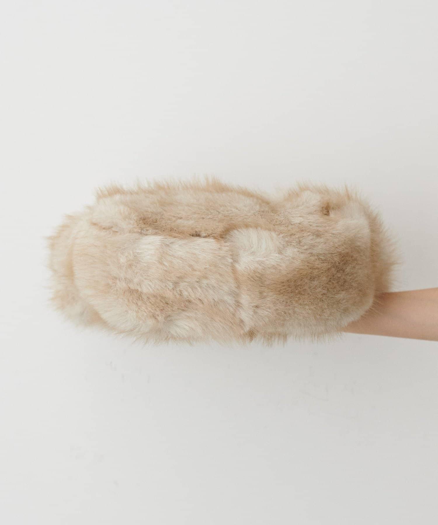 這款單手柄手提包採用蓬鬆的生態毛皮製成,充滿了季節氣息。
