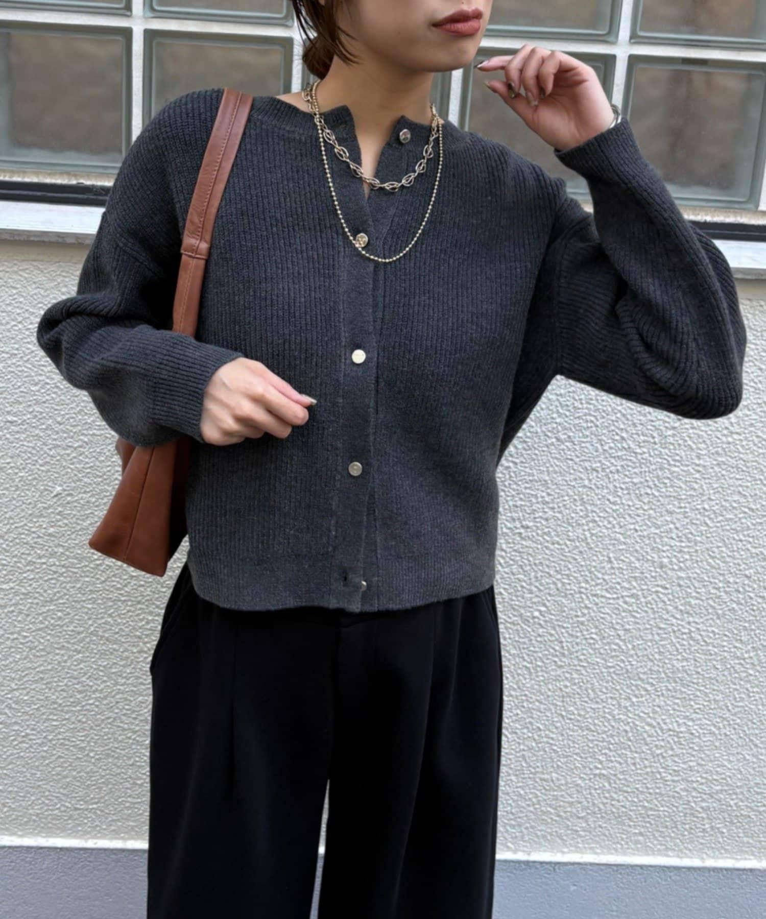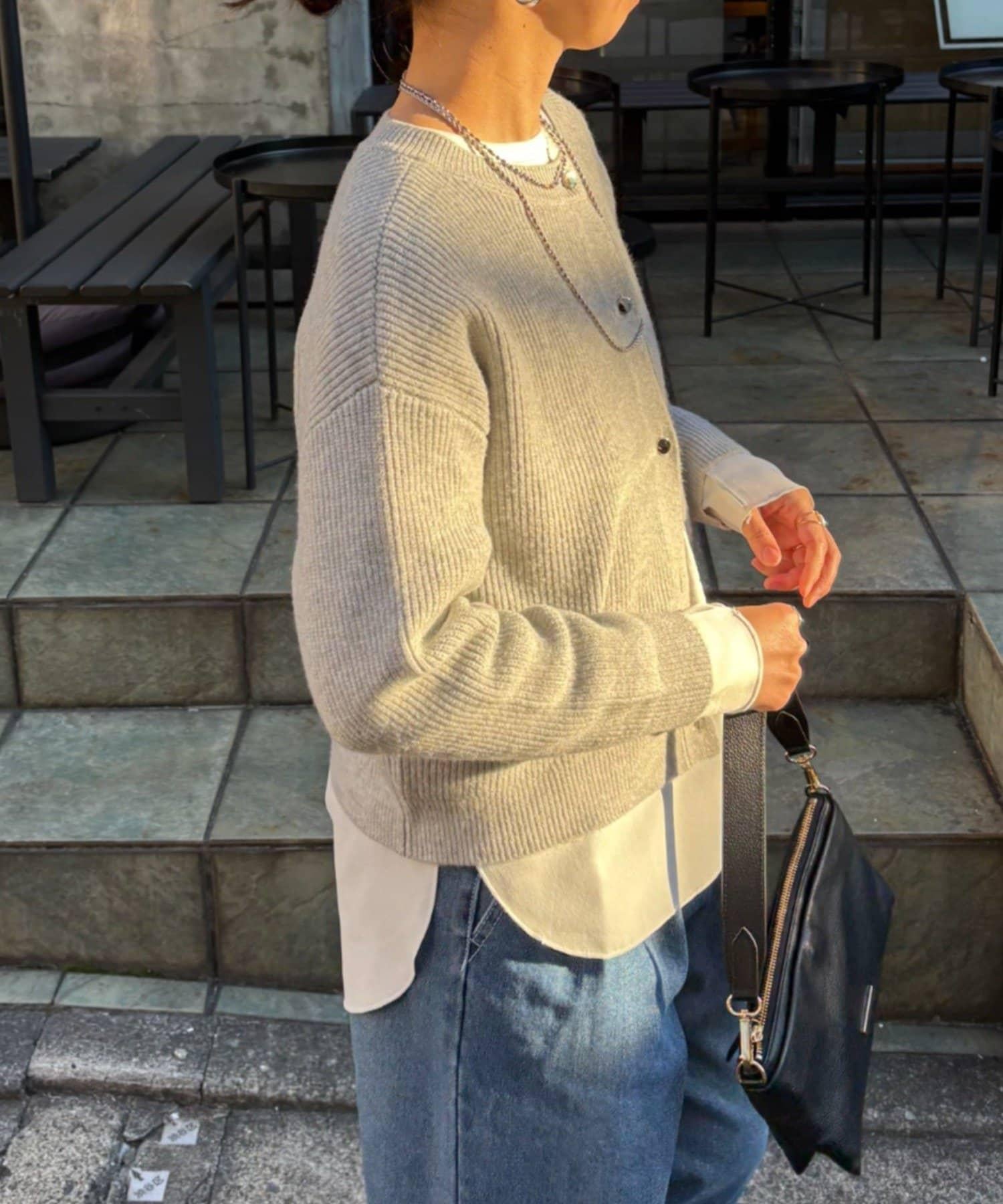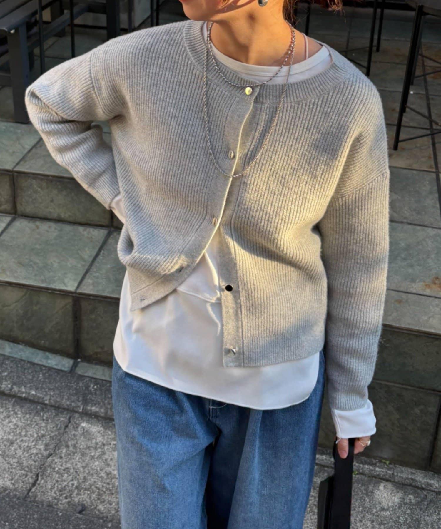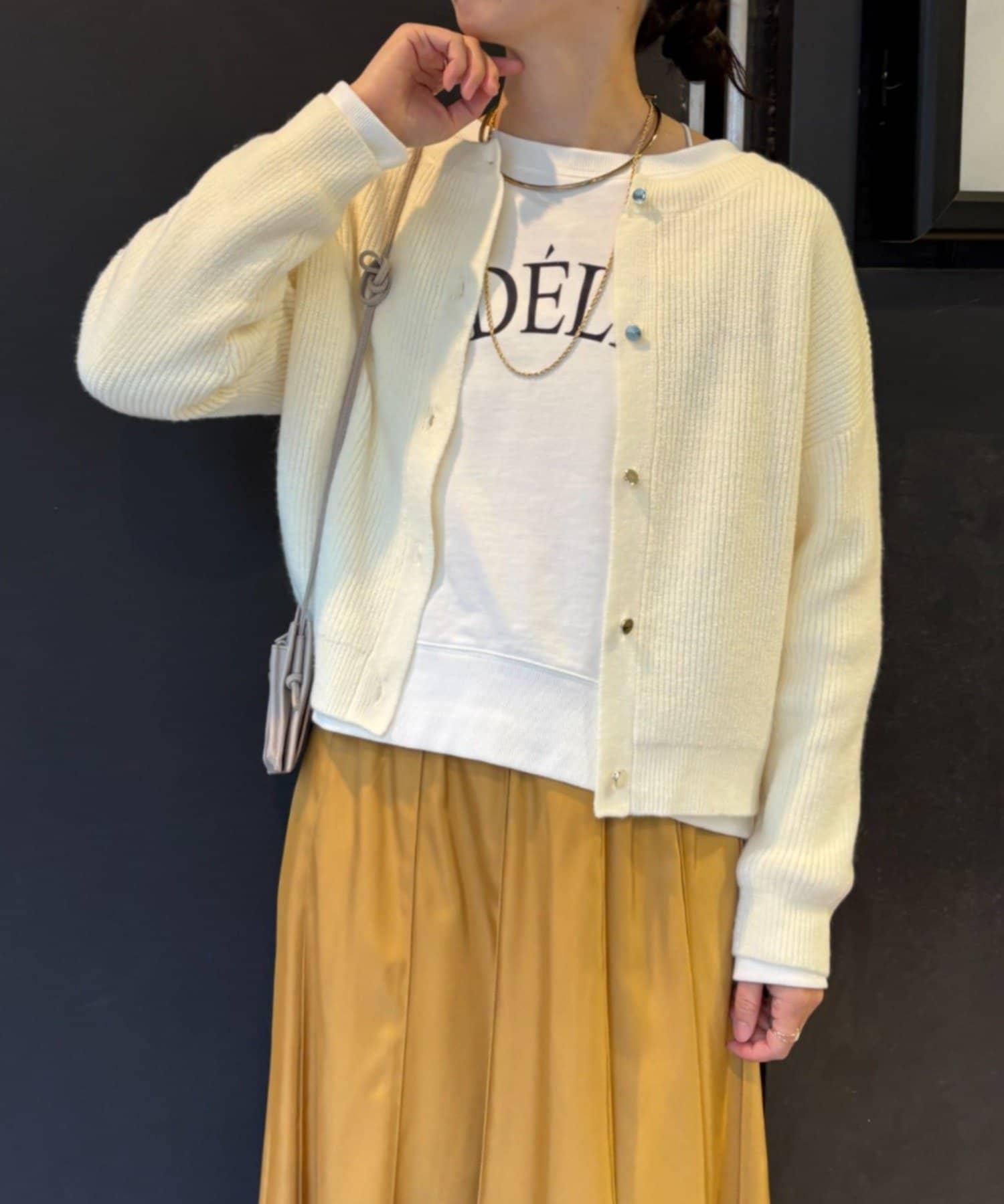 金色紐扣設計的開衫,盡顯優雅氣質。