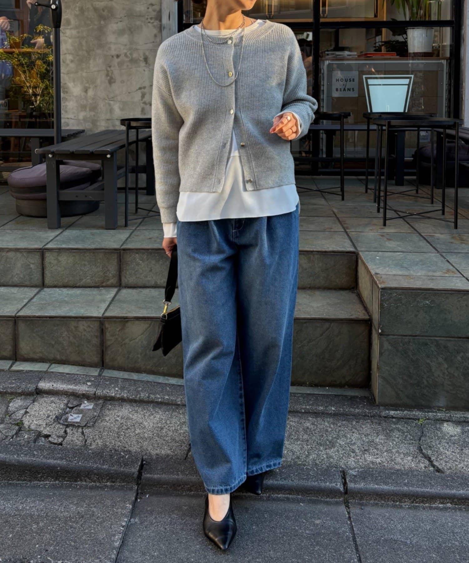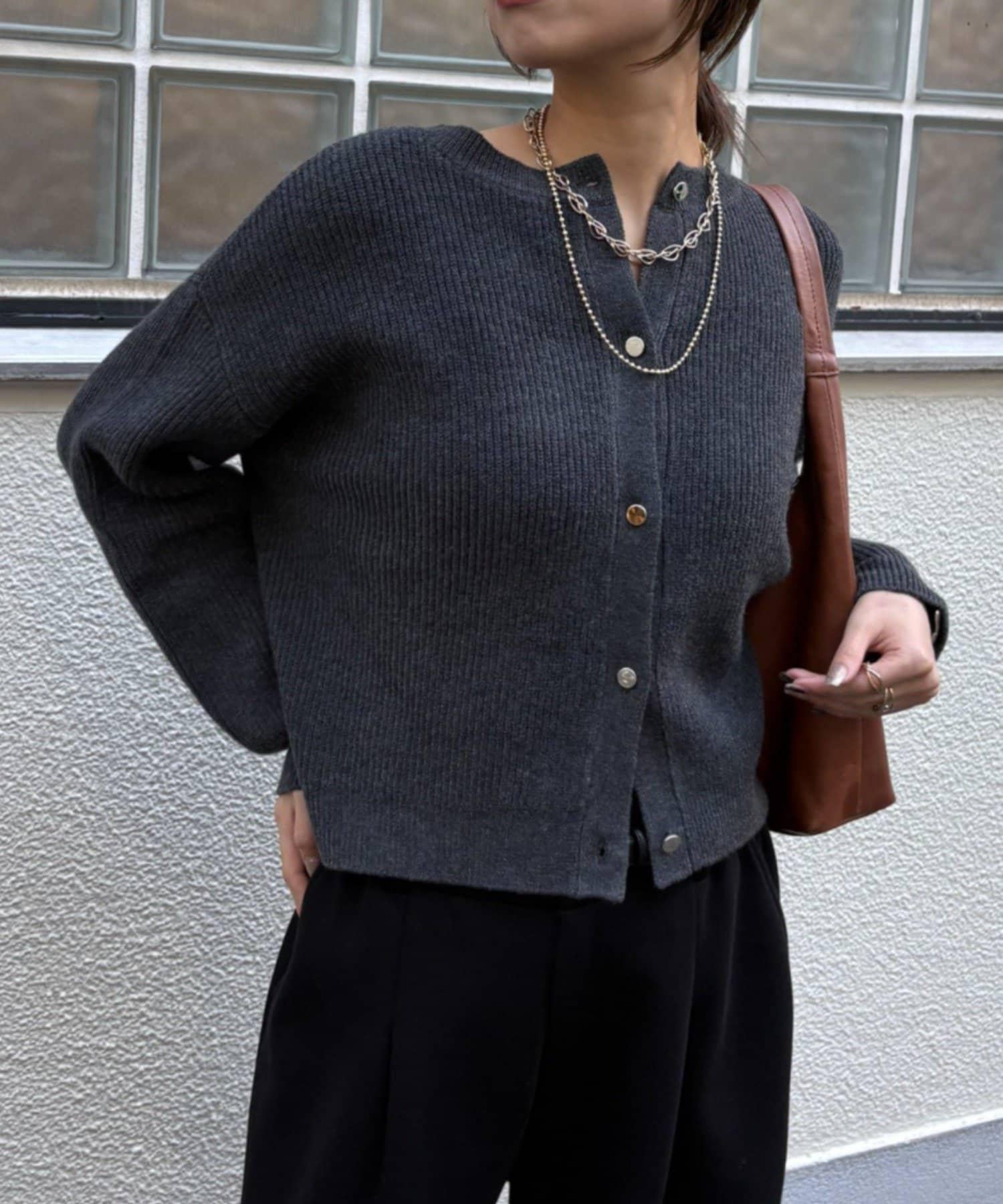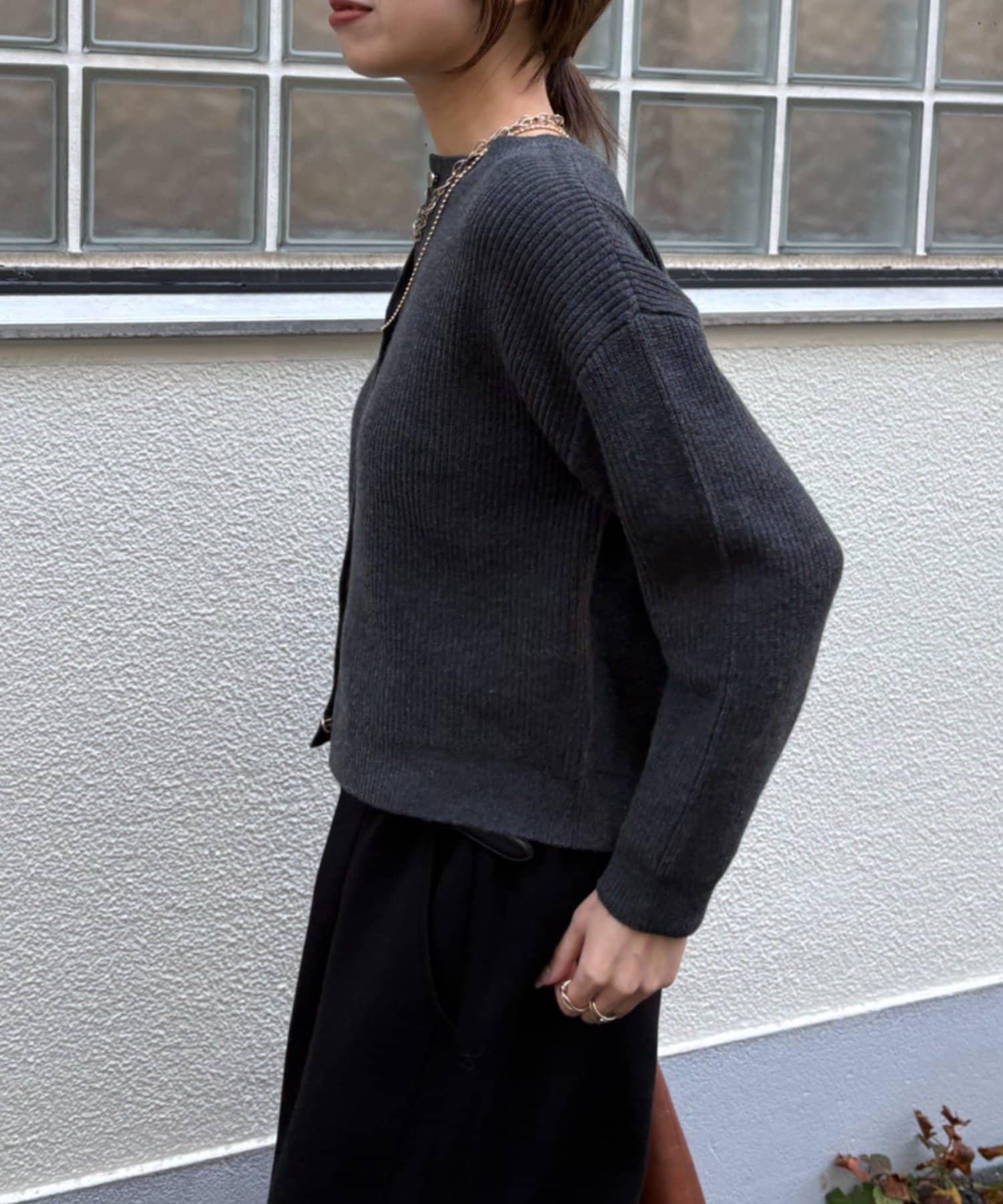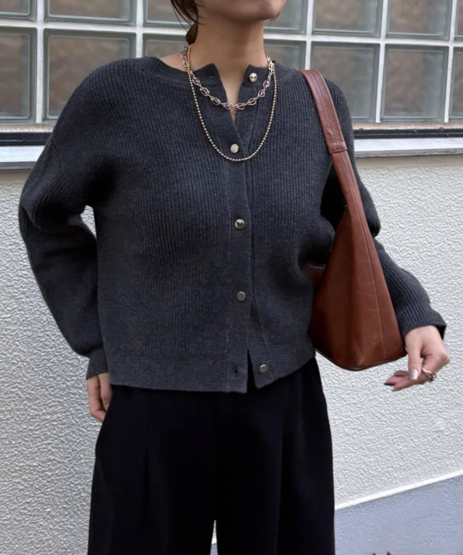金色紐扣設計的開衫,盡顯優雅氣質。