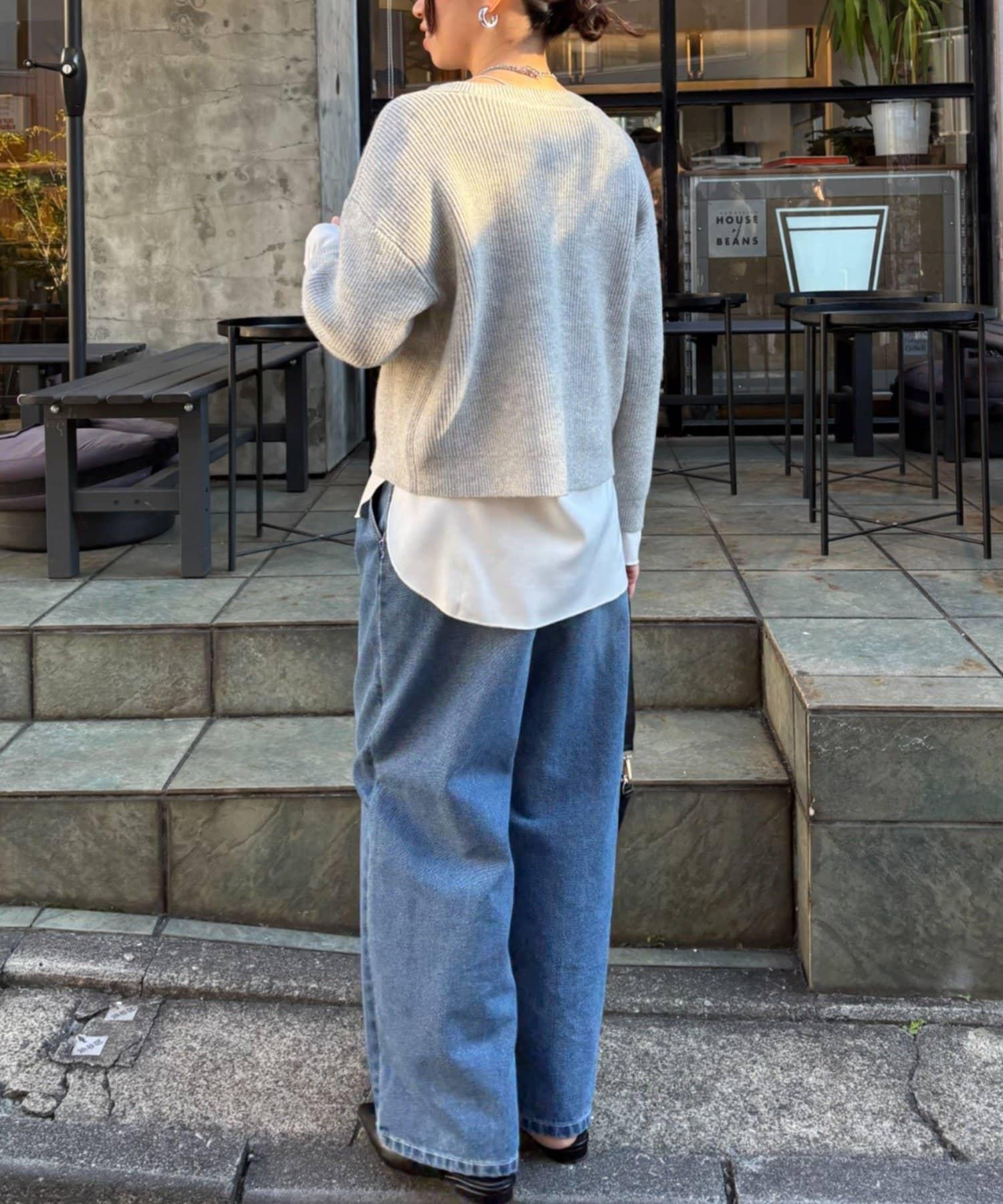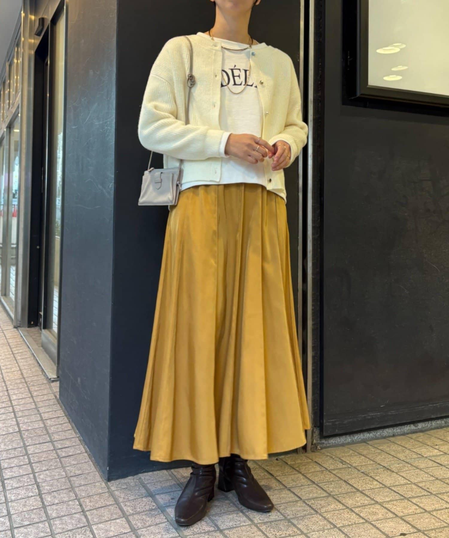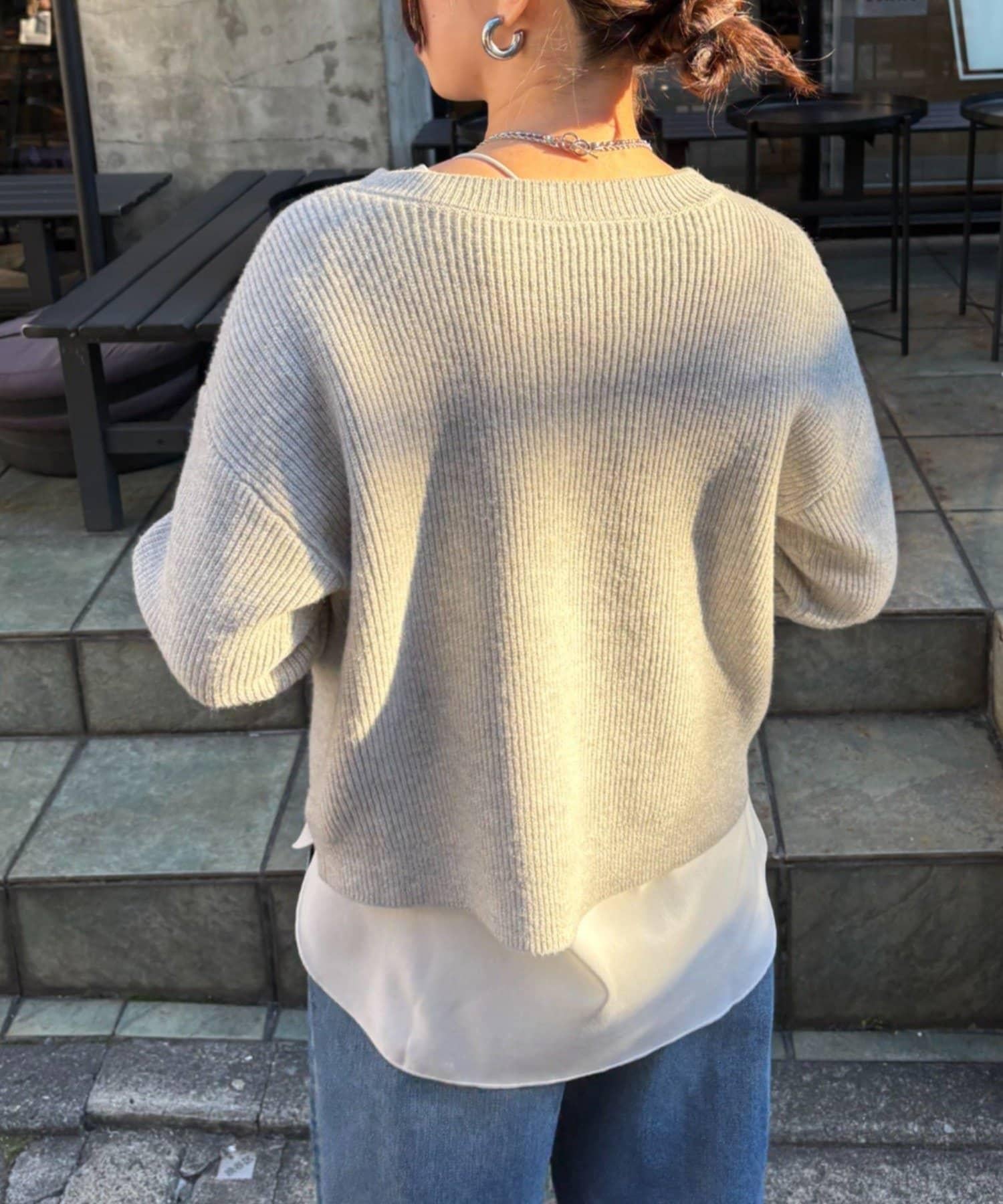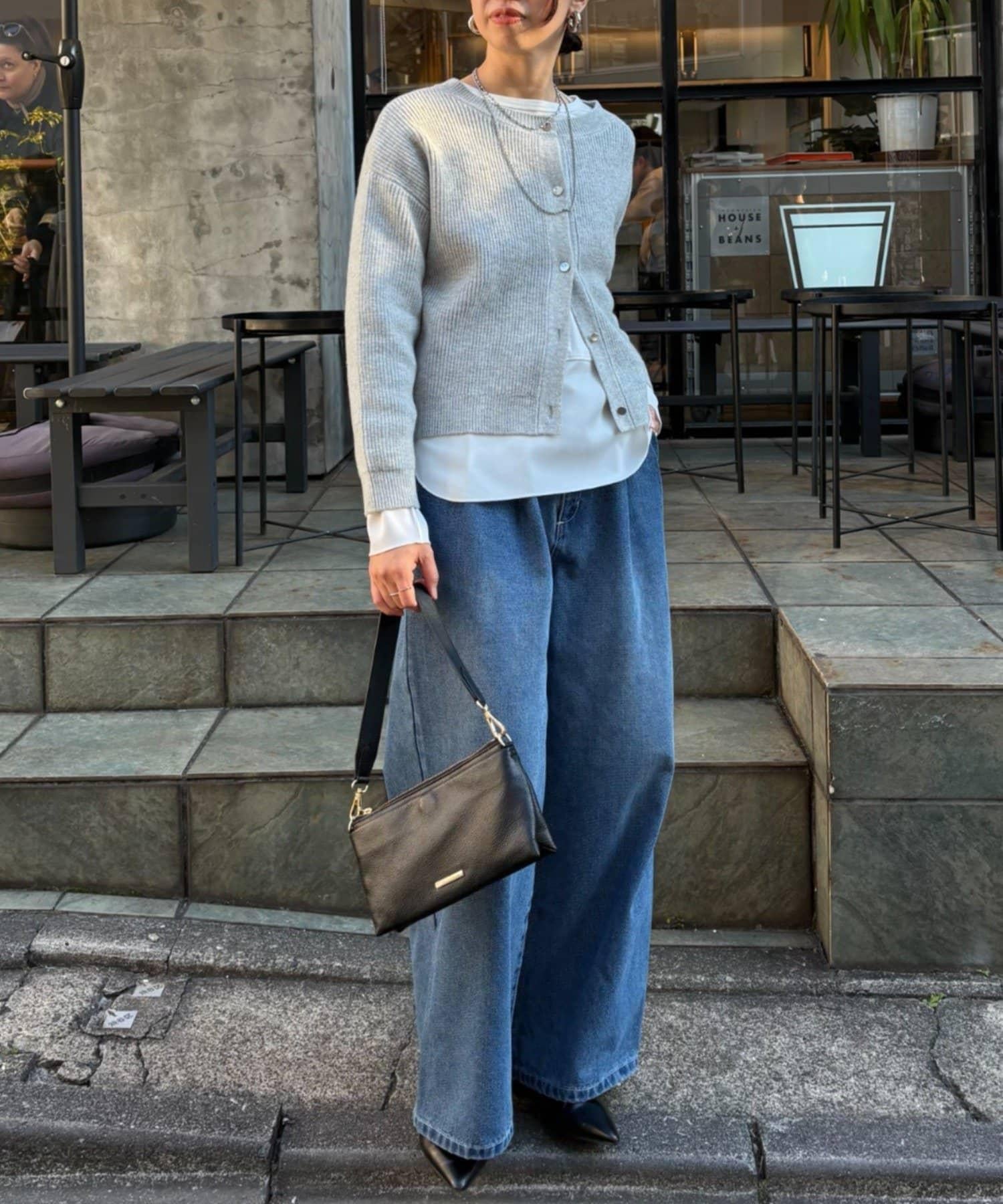 金色紐扣設計的開衫,盡顯優雅氣質。